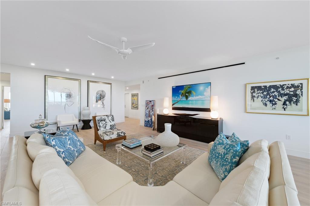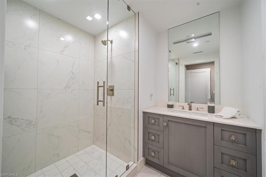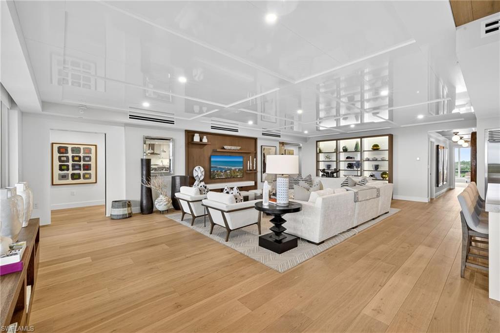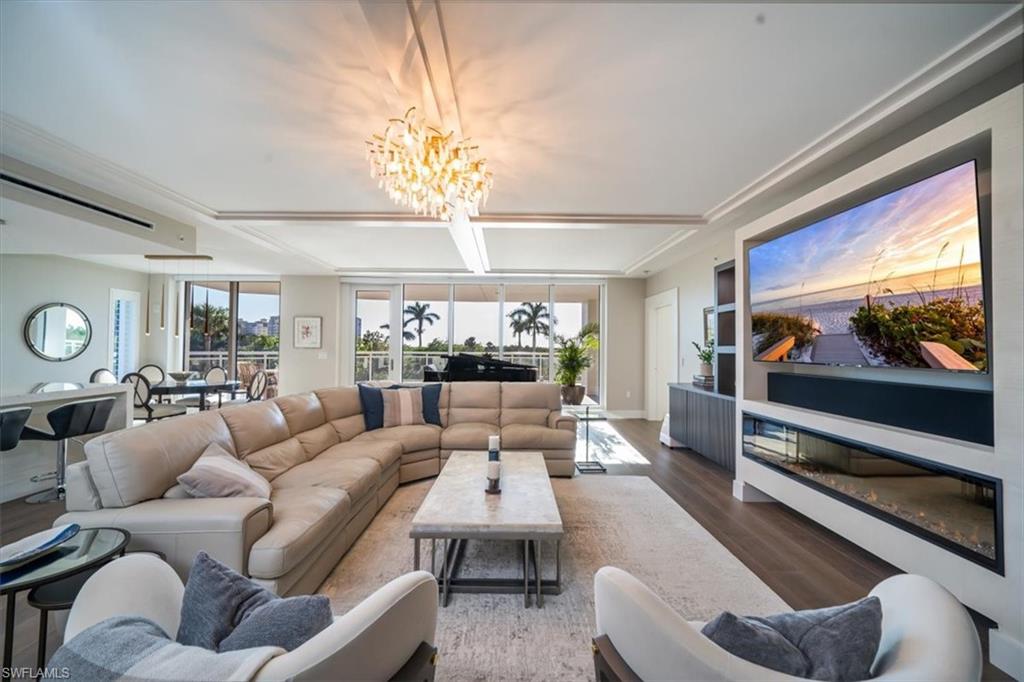 Welcome home to unit 302 in Tower 400, recently completed and beautifully finished, this Kalea Bay residence provides all the conveniences of living in a brand-new luxury condominium and a 5-star amenities center, a combination that has made Kalea Bay one of the most successful and desirable communities in Naples. This residence features a wall of sliding glass doors leading to a unique expansive extended terrace totaling 1,242 square feet including 523 square feet of covered outdoor living plus 719 square feet of open balcony area. The interior of the unit lives like a single-family home with 3,290 square feet of living space including 4 bedrooms and 4 full bathrooms including spectacular primary suite with a massive custom closet. Highlights include stunning wall decor throughout plus impressive built-in units in the great room and the media room including back-lit wall panels that can be dimmed for movies. The lighting fixtures are fabulous and eye catching as you enter the home and accentuate the finishes including wide plank oak wood floors, custom cabinetry and designer touches throughout the home. The open gourmet kitchen features a Wolf gas cooktop and wall ovens, Sub-Zero refrigerator and full height wine cooler and a butler’s pantry with ample storage. The building features a rooftop terrace with a pool and spectacular sweeping views, an open-air fitness center, BBQ grills and an open-air lounge all ideal spots to take in stunning sunsets. Tower 400 is located directly across from the Club at Kalea Bay and provides easy access to 80,000 square feet of exceptional modern amenities, including a wellness center with a state-of-the art gym, spin room, Pilates, spa services plus 3 resort style pools, 2 open-air poolside bars, fine and casual dining options, outdoor fire pits, a kids’ game room, 8 pickleball and 4 tennis courts, guest cottages and more. Kalea Bay Residents also have the option to join the annual Beach Card Program, based on availability, which grants access to the private Beach Club at Moraya Bay at Vanderbilt Beach for dining both indoor and outdoor as well as beach service including food, beverages, chairs and umbrellas.