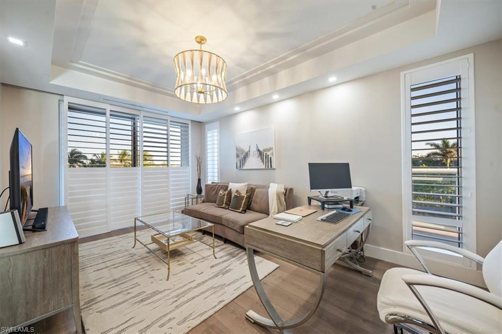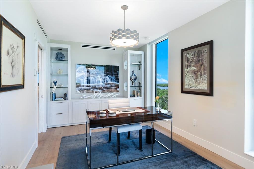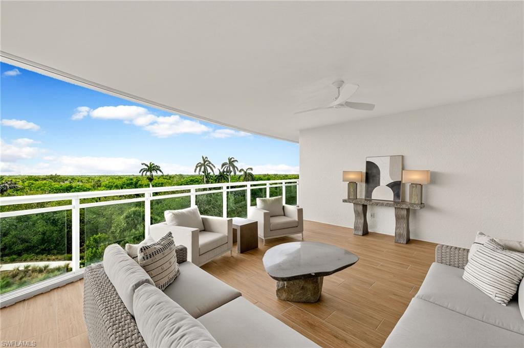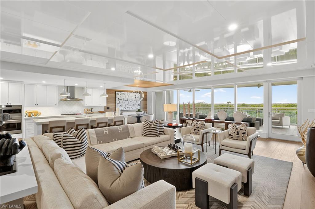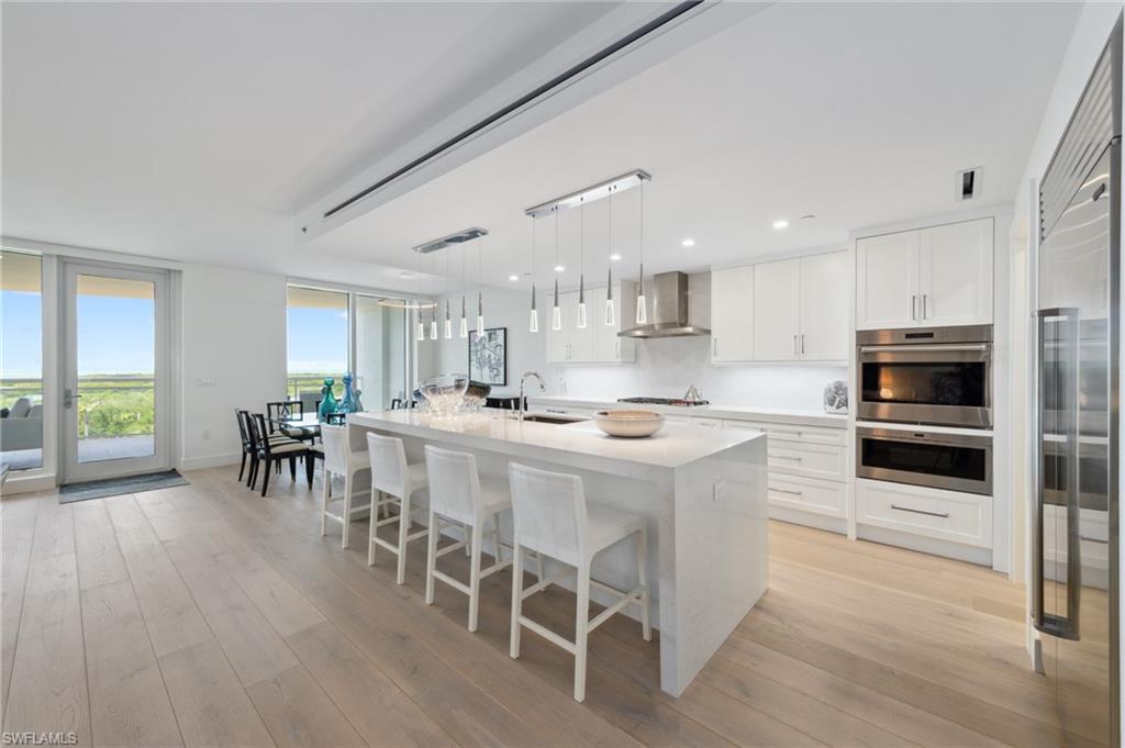Experience the ultimate in five-star resort living in this exquisitely designed and furnished residence. This exceptional home offers something special and only enjoyed by this level of ownership: 1,242 square feet of open terrace that essentially doubles your living space, creating a remarkable 4,532 total square feet of indoor-outdoor luxury. Go inside to discover four bedrooms, three full baths and one-half bath, thoughtfully arranged in a split floor plan that provides everyone with their own space. The great room flows seamlessly through floor-to-ceiling sliders that pocket when opened, framing those incredible sunset views over the mangroves and preserve beyond. Culinary-grade kitchen appointed for the serious gourmand with Wolf and Sub-Zero appliances, a steam oven, dual dishwashers, natural gas cooktop, and a butler's pantry that keeps entertaining effortless. Beautiful Italian Legno Bastone wood floors flow throughout, adding warmth to the sophisticated design. Primary suite is a private retreat where you can unwind after long days with its custom walk-in closet, separate shower and soaking tub. Completing this home are two additional en-suite bedrooms, plus a bedroom that is being used as an office but may easily serve as a den or guest bedroom, as it has a half bath located nearby. Living at Kalea Bay means access to resort-style amenities, including the rooftop pool, clubhouse, state-of-the-art wellness center, outdoor fire pits, adults-only pool, kids' wading pool, on-site dining, spa services, guest cottages, pickleball, tennis to name a few. Built in 2022, complete with impact windows, secure under building parking, and building generator system that keeps your refrigerator and butler's pantry outlet powered, offering peace of mind during outages. This is maintenance-free living at its finest, providing the space and privacy of a single-family home with all the provisions you could want. Don't miss this outstanding opportunity to embrace the extraordinary Naples lifestyle that you deserve.
