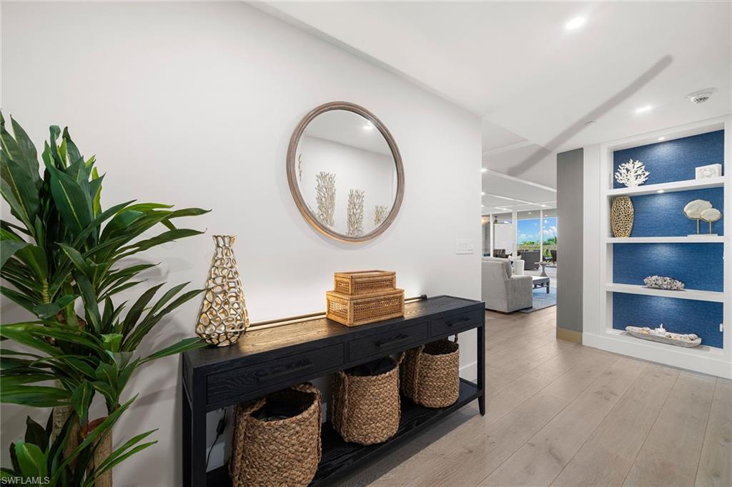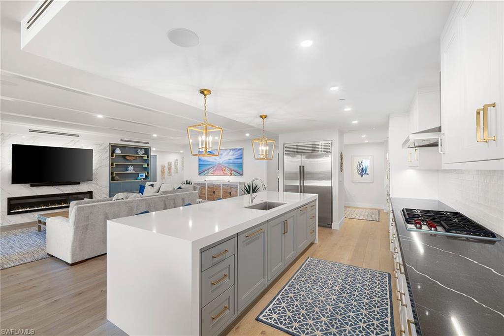 Experience elevated coastal living in this fully furnished, designer-appointed condominium in the prestigious Kalea Bay community of North Naples. This former award-winning model by W Designs showcases the pinnacle of luxurious craftsmanship and attention to detail, with every finish and furnishing carefully curated to perfection. From the moment you enter, you're greeted by rich wood flooring, dramatic custom built-ins, and designer furnishings that exude timeless elegance. The gourmet kitchen is outfitted with top-of-the-line Wolf and Sub-Zero appliances, including a Sub-Zero wine fridge, sleek quartz countertops, and refined cabinetry—an entertainer’s dream. The residence boasts a sprawling wraparound balcony offering panoramic views and seamless indoor-outdoor living, perfect for enjoying Florida’s breathtaking sunsets and coastal breezes. Every inch of this home reflects sophisticated design and functionality, making it truly one of a kind. Kalea Bay’s resort-style amenities redefine luxury, including a rooftop pool and sundeck, multiple sparkling pools, and a full-service clubhouse with formal and casual dining. Stay active with access to the state-of-the-art wellness center, tennis and pickleball courts, and private beach park. Additional amenities include fire pits, a dog park, and guest villas for visiting friends and family. Ideally located just minutes from upscale shopping, world-class dining, and championship golf courses, this exceptional property offers a rare opportunity to own in Naples' most sought-after waterfront community. Offered fully furnished and move-in ready—this is luxury living without compromise.