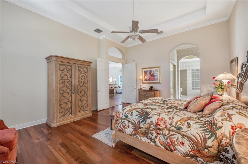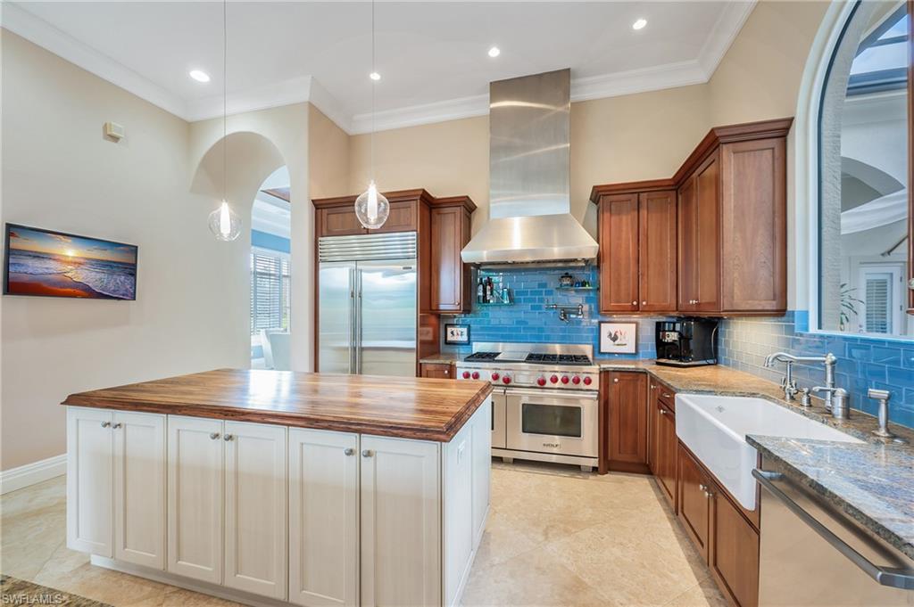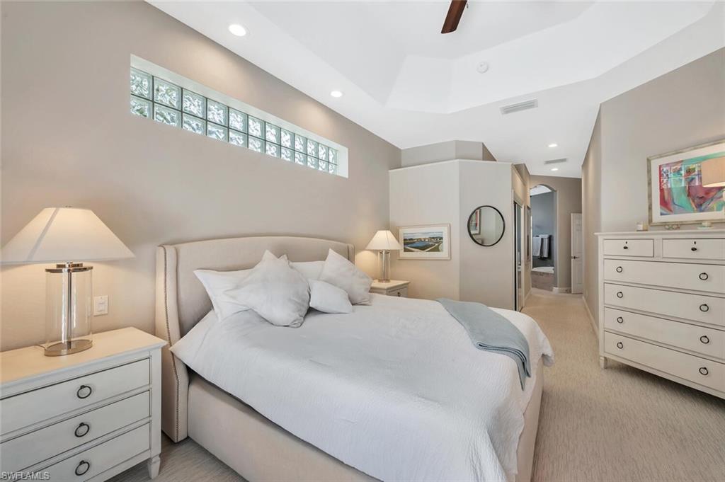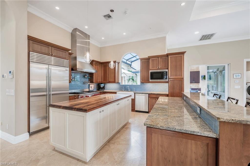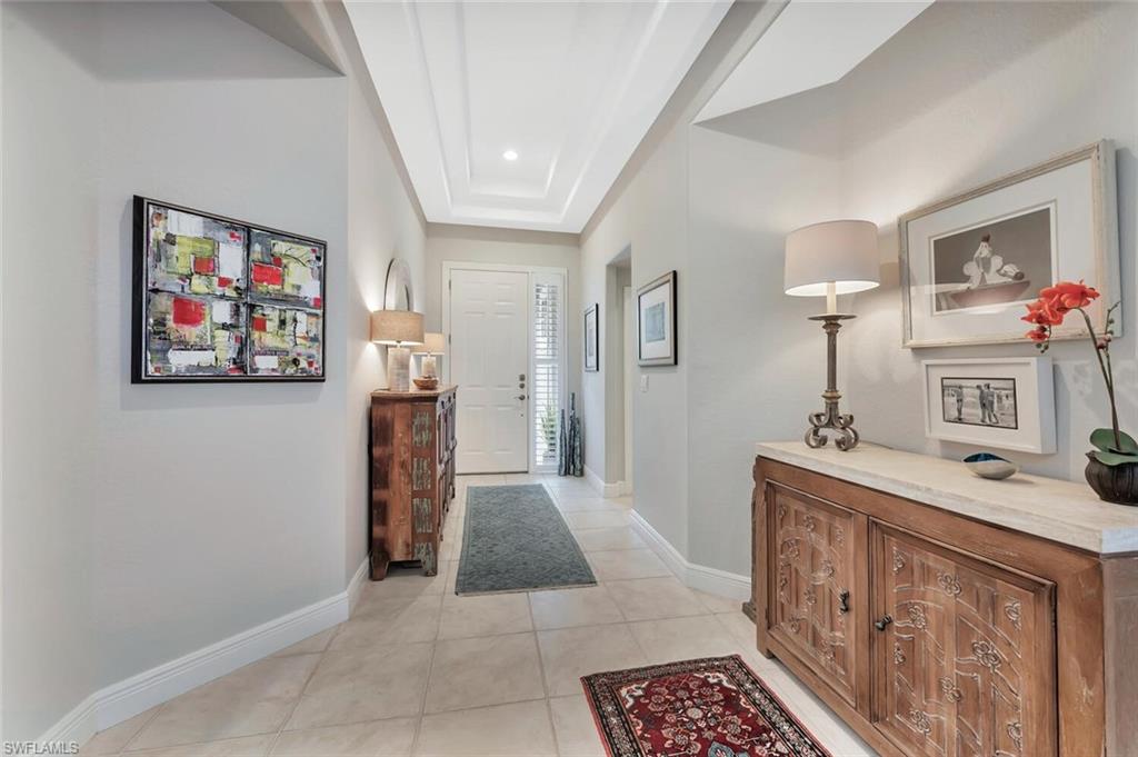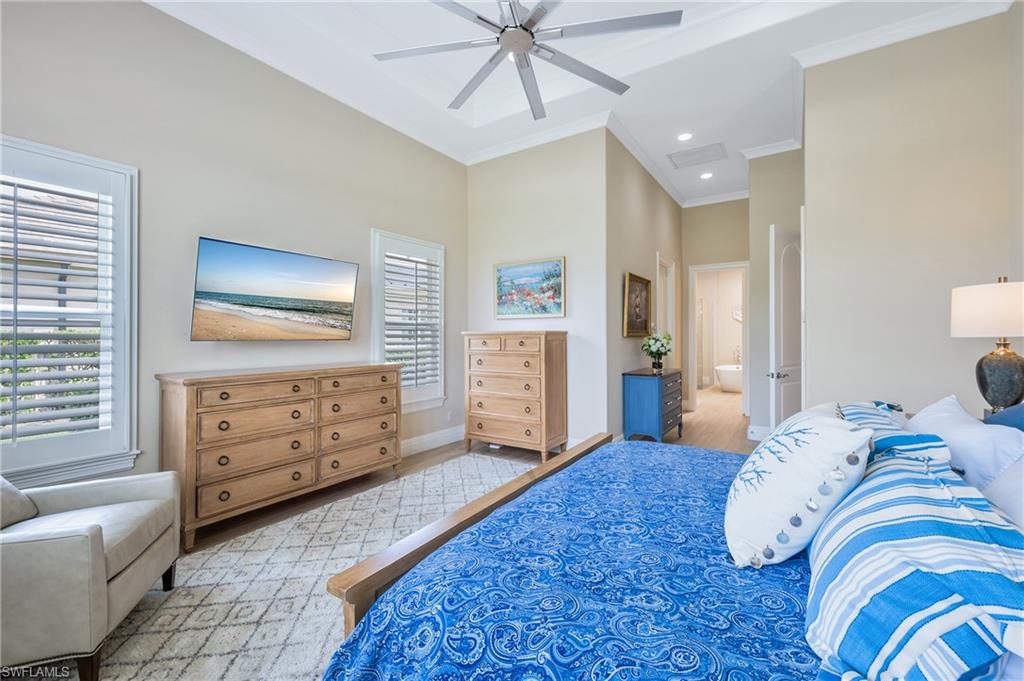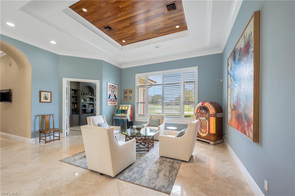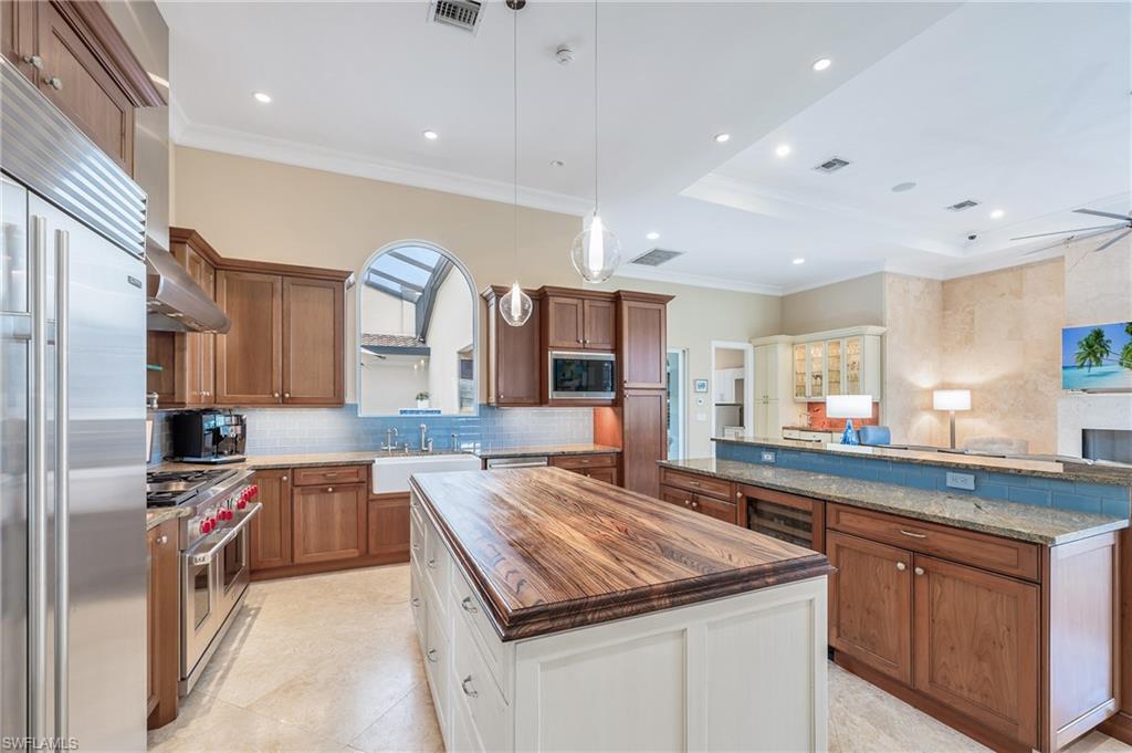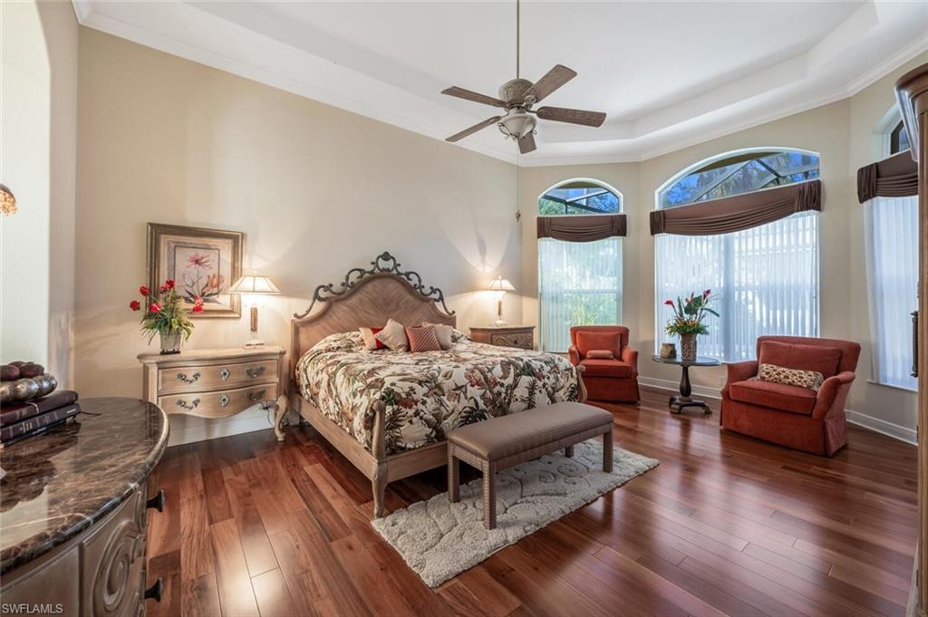Regal in design and grand in proportion, this residence exemplifies timeless architectural beauty and offers a remarkable foundation for personalization. Perfectly positioned on a prime lakefront lot, the circular brick-paver driveway, manicured landscaping, and stately façade set the stage for what awaits within—soaring ceilings, exquisite mosaic inlay tile details, and walls of glass that showcase breathtaking lake views and bathe the interiors in natural light. The grand foyer transitions seamlessly into the formal living room, where tray ceilings elevate the residence’s sense of scale and sophistication. The spacious kitchen is a dream layout to modernize, featuring a large island, wraparound breakfast bar, and abundant cabinetry. Just off the kitchen lies a bar area additional cabinetry, and a wine cooler—perfectly positioned within view of the formal dining room, making it ideal for entertaining guests or hosting grand fêtes. The kitchen offers an eat-in dining area attached to a large Great room provide inviting spaces for casual dining and relaxed gatherings, all overlooking the lanai and lake beyond. Corner pocketing sliders open to the screened lanai, where a sparkling pool is surrounded by both undercover lounging areas for shaded comfort and open-air spaces for sunbathing. The primary suite continues the theme of elegance, offering private lanai access, mosaic inlay tile accents, and a sprawling ensuite bath with a luxurious pass-through “car wash” shower, soaking tub, dual vanities, and makeup station. The guest rooms, too, are given the attention they deserve, including a guest suite with French doors and a walk-in closet, along with additional spacious bedrooms that ensure comfort and privacy for family and guests alike. Ideally located within Kensington Golf & Country Club, just minutes from Mercato, Waterside Shops, the Naples Philharmonic, and Gulf beaches, this home offers fantastic bones, timeless appeal, and enduring architectural character—a rare opportunity to refresh a classic or reinvent it for modern living.