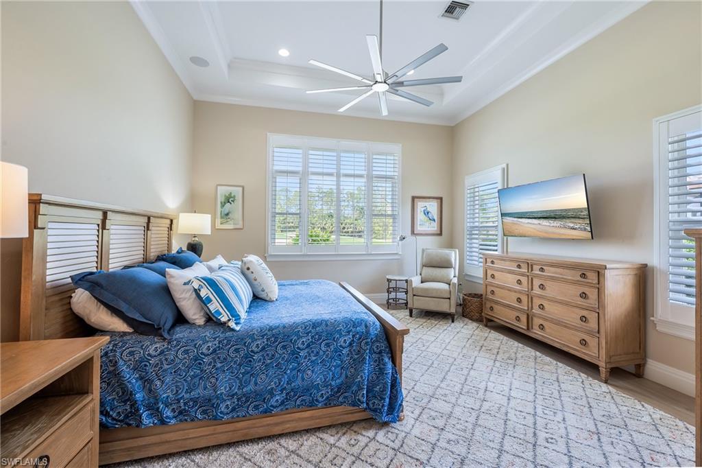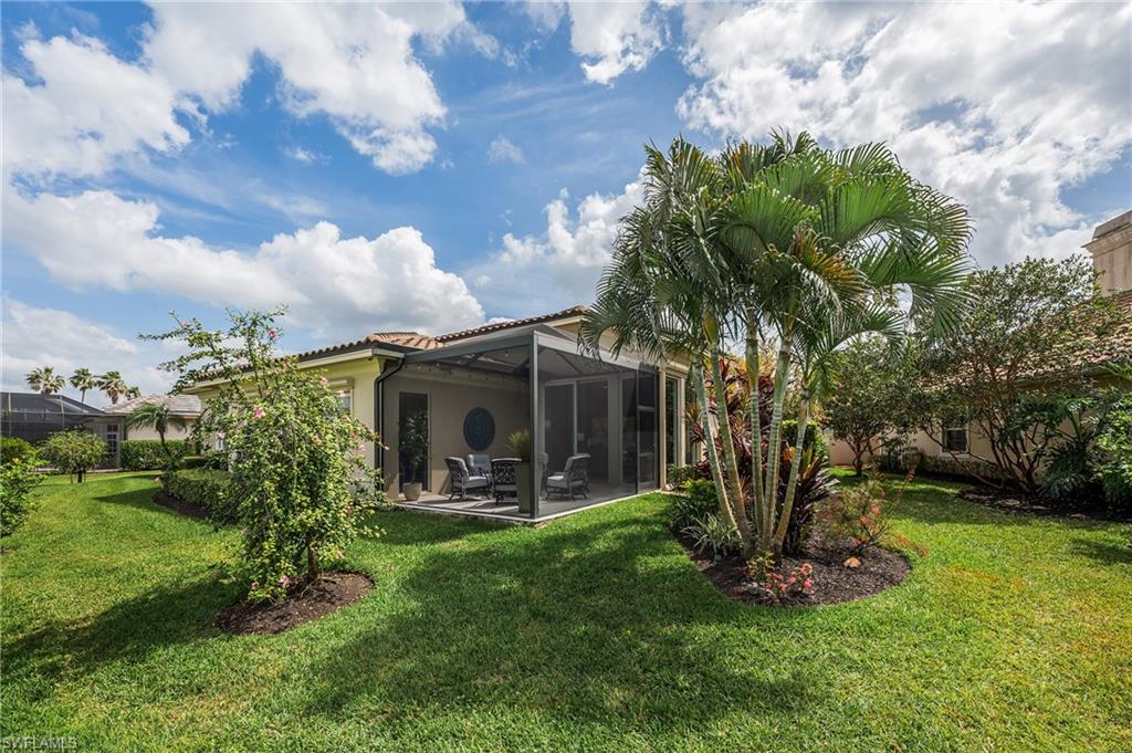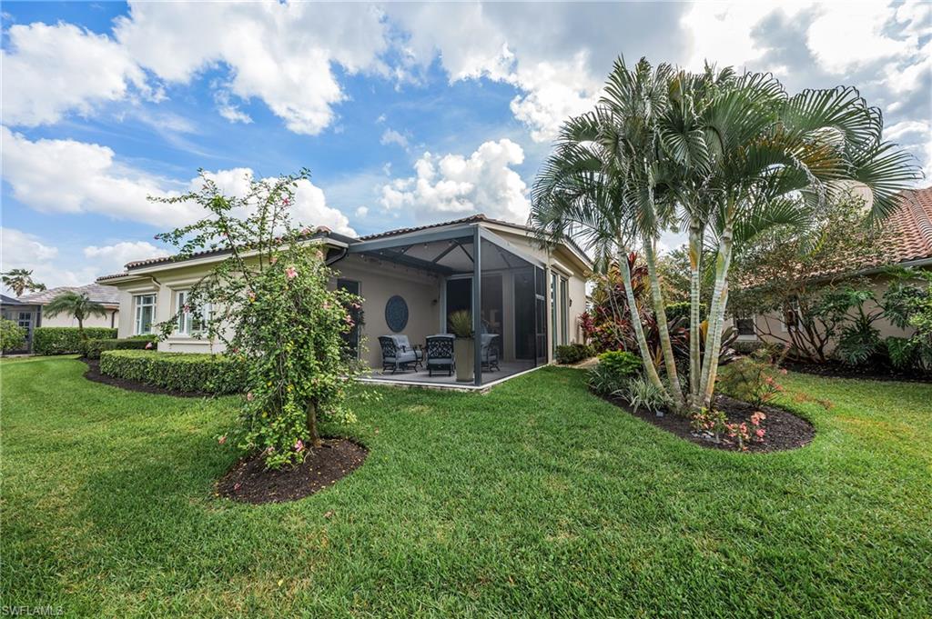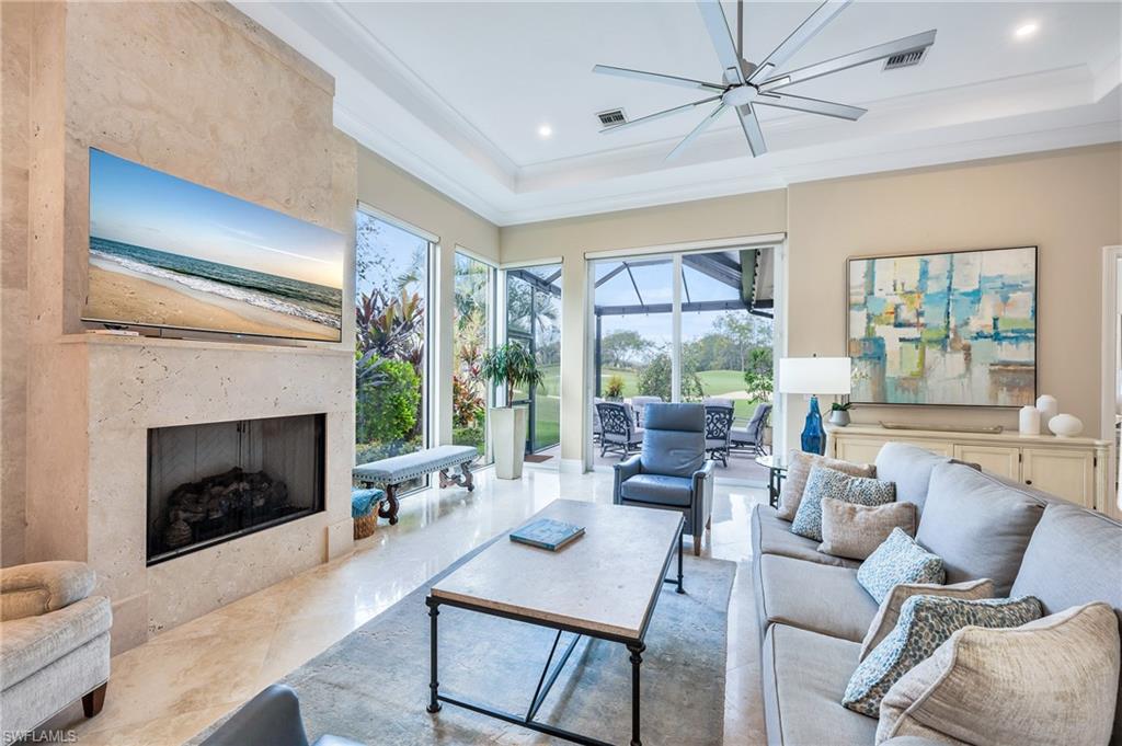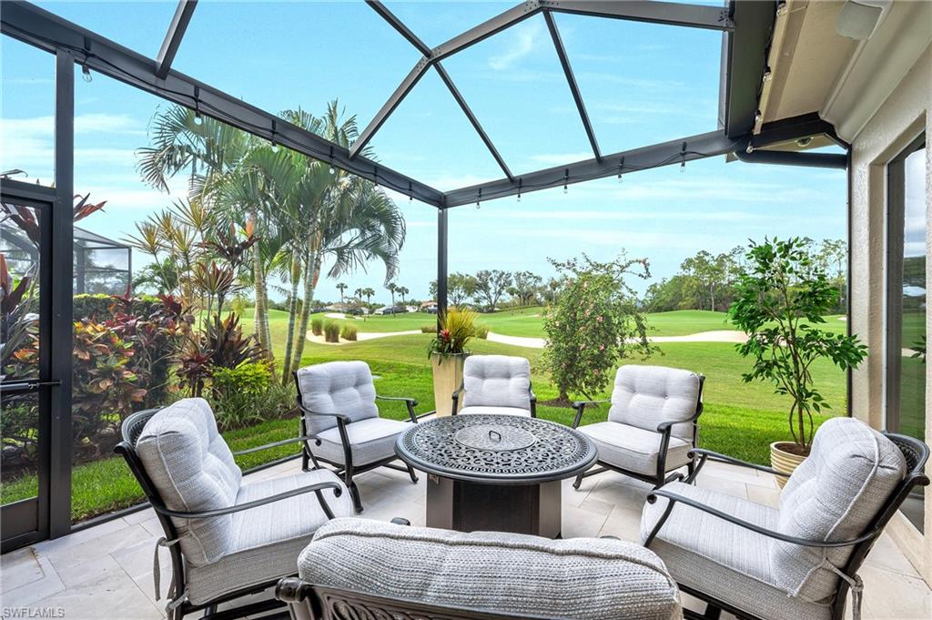 This move-in ready estate presents a rare opportunity to own a true masterpiece of interior artistry and resort-style living, offering an unrivaled blend of beauty, comfort, and flair. Perfectly poised on the golf course in the rarely available enclave of Knights Bridge at Kensington—where few homes have been available in the past few years—this residence has been thoughtfully curated to elevate everyday living into an art form. Inside, coffered ceilings, recessed lighting, and high-end designer touches set an impressive tone. Formal and informal living spaces blend seamlessly, featuring a family room with a decorative electric fireplace, a formal living and dining room, and a morning room ideal for casual gatherings. The timeless kitchen stands as a stunning centerpiece, adorned with premium finishes and high-end appliances ready to inspire culinary creations. The spacious primary suite offers a serene seating area, dual closets, and an elegant spa-like bath designed for pure indulgence. While the interiors captivate, it’s the outdoor living that truly defines the resort lifestyle. Step into the expanded Picture Window screened lanai and discover your own private retreat: a shimmering pool and spa, surrounded by lush tropical landscaping and triple pygmy palms. A brand-new outdoor kitchen, covered lounging areas, and inviting spaces for dining al fresco under the stars create an effortless extension of the indoors. With sweeping, unobstructed golf course views as your backdrop, every sunrise and sunset feels like a front-row event designed just for you. This extraordinary property also showcases an impressive list of recent upgrades, including a replaced garage door opener (2023), insulated garage attic (2023), installed office doors (2023), brand-new whole-house A/C systems and ductwork with a mini-split added for garage cooling (2023), Dishwasher replacement (2023) a new primary suite water heater and outdoor spigots (2024), upgraded pool equipment including; New Pool Heater to be installed , a new motor, filter, automatic pool filler, temperature sensors, tank body actuator, and pump relay (2024), a new irrigation controller (2024), vibrant tropical landscaping added in 2025, and a completely renovated outdoor kitchen with new cabinets, countertops, a Lynx grill, vent hood, sink, refrigerator, and TV (2025). Additional features include a whole-house generator, ensuring peace of mind year-round. This is more than a home—it’s a private resort, a tropical haven, and a masterclass in refined living, set within one of Kensington’s most sought-after enclaves.
