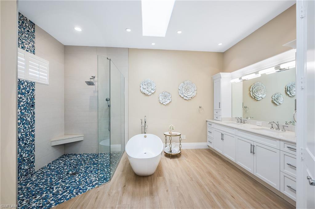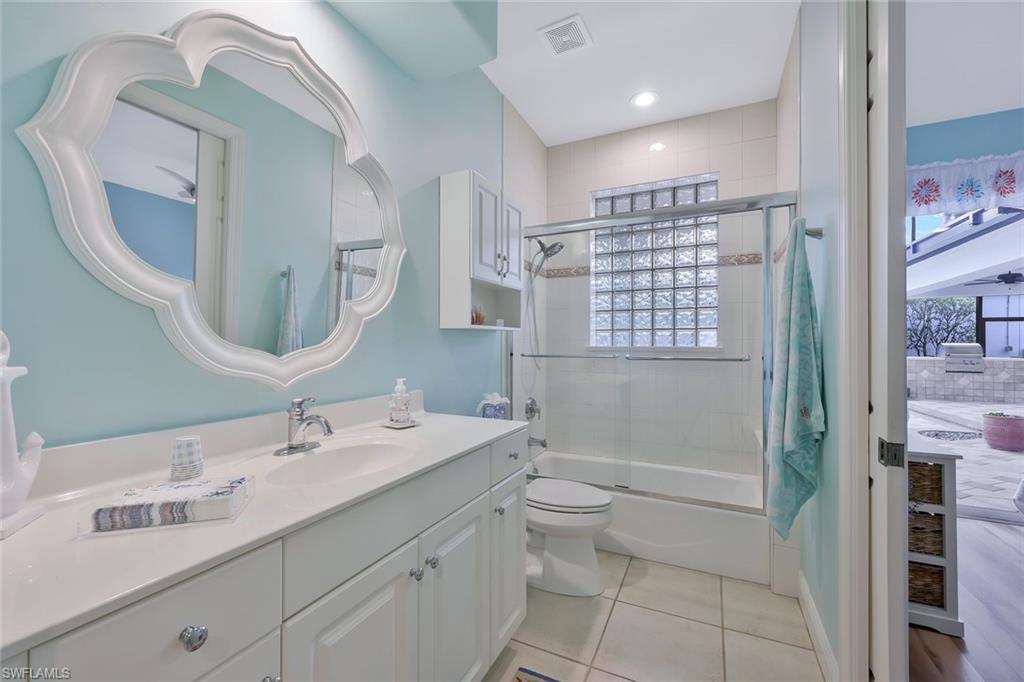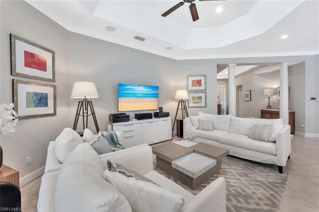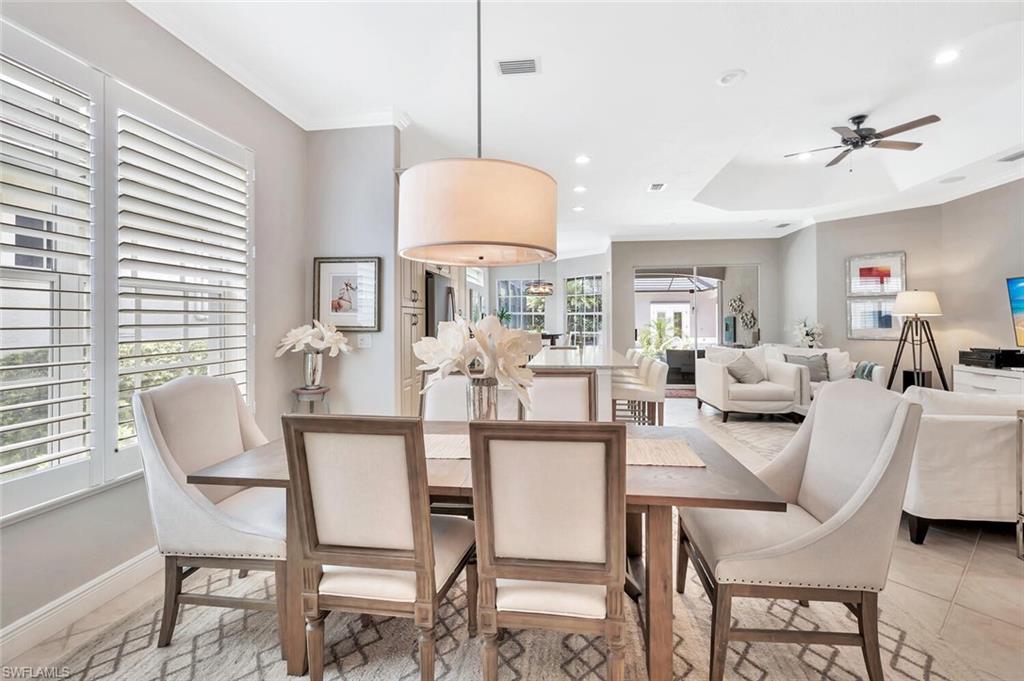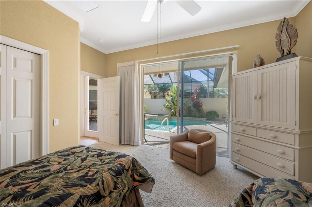 All the elements of a dream home come together in this light and airy Kensington retreat, where a timeless motif meets contemporary flair and a 2024 roof adds peace of mind. This 3-bed plus den, 3-bath residence boasts an open floor plan bathed in natural light and framed by tropical views, creating an inviting setting for both everyday living and entertaining. Multiple dining areas—indoors and out—make hosting effortless, while the layout flows seamlessly to the outdoors for true indoor–outdoor living. The spacious primary suite offers its own private entrance to the lanai, allowing you to slip outside for a morning swim or an evening under the stars. The ensuite bath provides a spa-like experience with elegant finishes and thoughtful design, making it the perfect place to unwind. A guest room and flexible den provide versatility for family, work, or hobbies, with the generously sized den offering potential for additional sleeping space. A rare guest cabana—complete with its own private entrance, living area, and full bath—offers ideal accommodations for visitors, extended family, or a private office. Outdoors, a large southern-exposure pool and sprawling screened lanai deliver the perfect blend of sun-soaked lounging and shaded comfort, all set against a lush tropical backdrop. This residence offers exceptional privacy and an unbeatable central Naples location—minutes from world-class shopping, dining, Artis–Naples, Sugden Theatre, and pristine Gulf beaches. Welcome to your private oasis in the heart of it all.