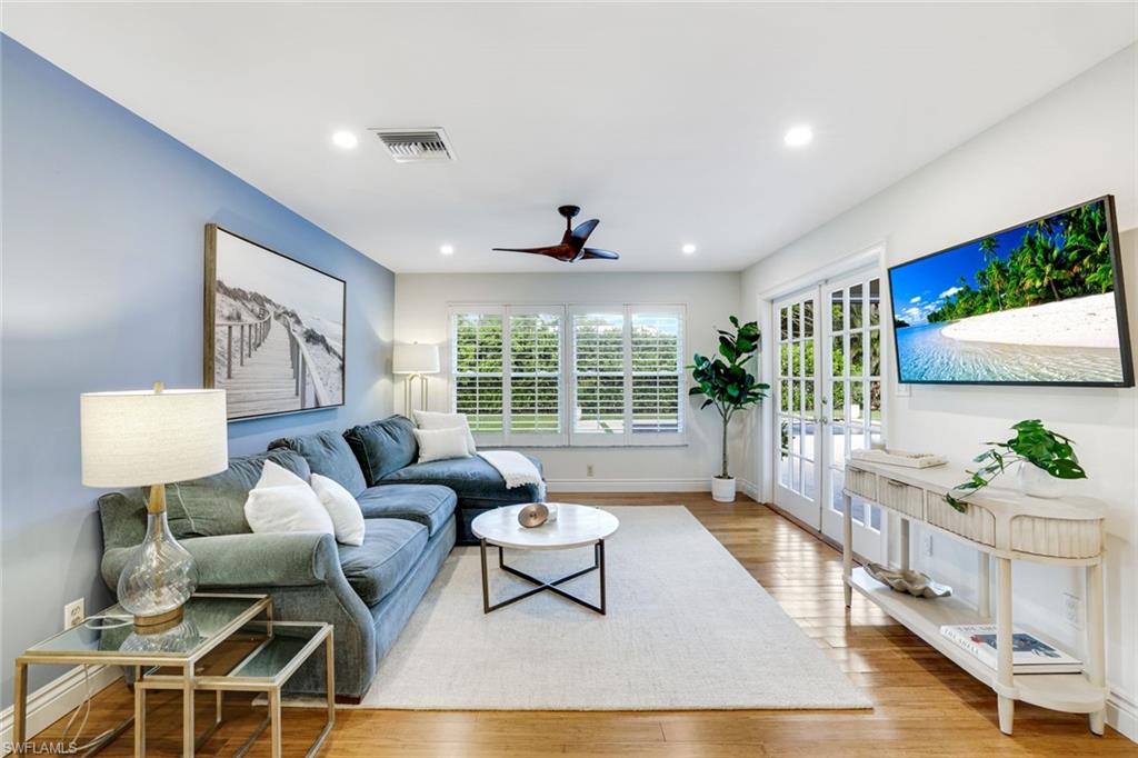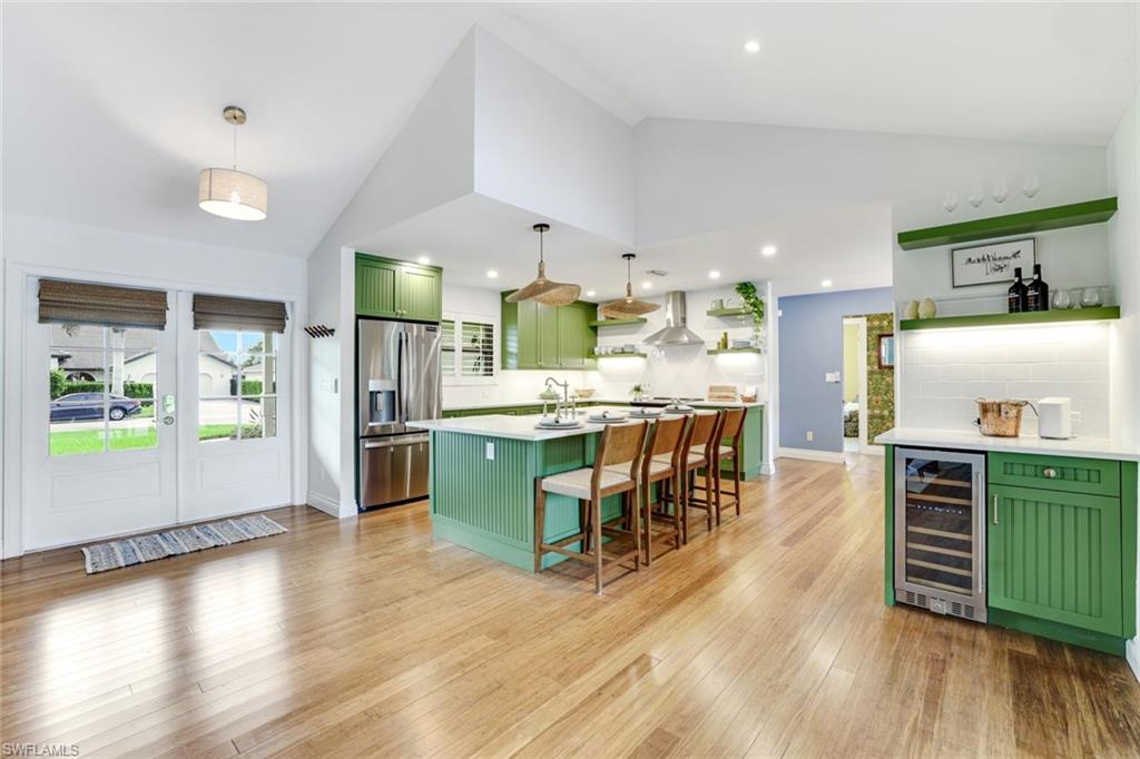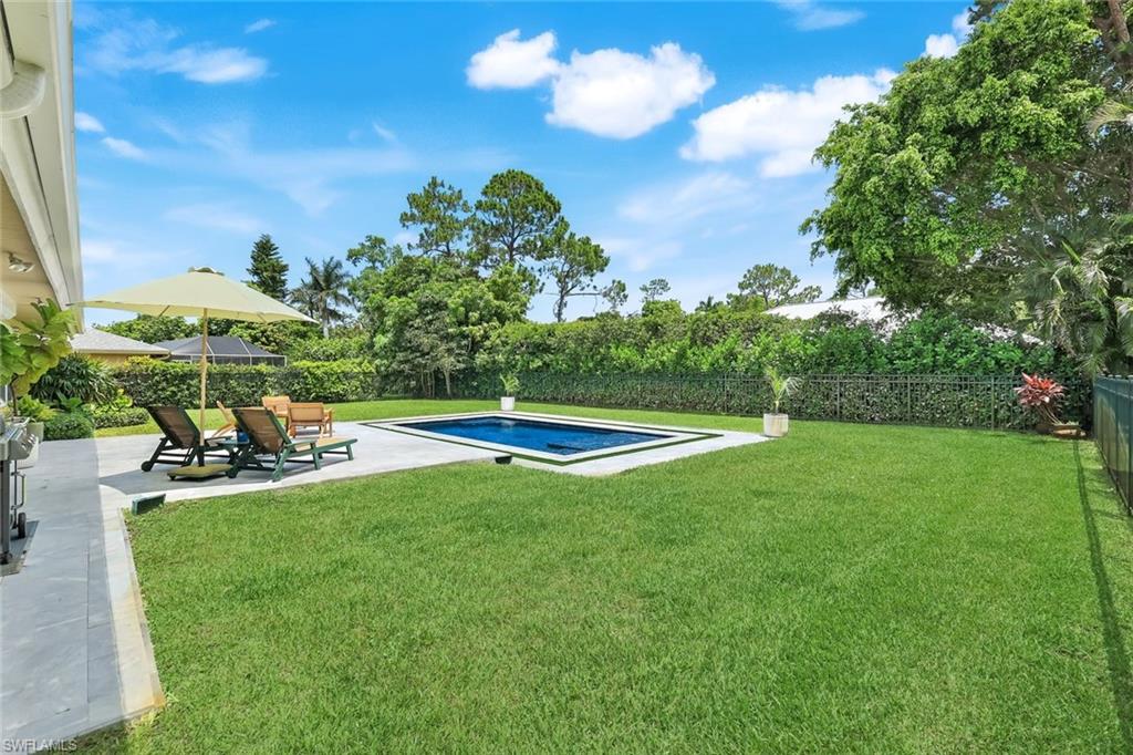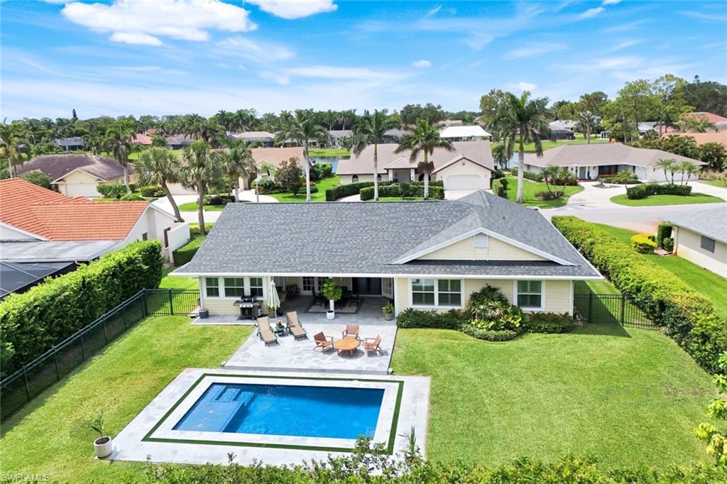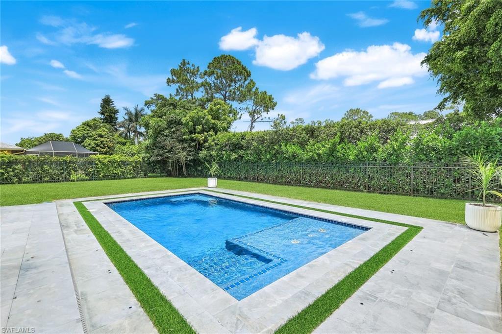 Over $300,000 has been invested in this home over the past four years, bringing it to the level today’s buyers expect and appreciate. Since 2021, nearly every major system has been improved: new roof (2025), new AC system (2021), a complete kitchen remodel with new custom cabinetry, stainless appliances and quartz counters, plus the addition of a dry bar with a wine fridge (2024), modern can lighting throughout the main living spaces (2024), and bamboo flooring throughout with the exception of the two guest bedrooms (2024). Outdoors, the expansive and open back yard now sports a 12-foot by 24-foot pool (2023) featuring a sun shelf, bench seating, LED lighting, and bubblers as well as a Pentair variable speed pump. The sandblast marble pool deck/patio and surrounding back yard are enclosed by a new five-foot-high aluminum fence with dual-swinging, self-lock gates (2022), perfect for the children and dogs to play and run around in protected freedom. Expansive yards like this are few and far between in Kings Lake. LeafFilter gutters (2023), hurricane-rated double front doors and a smart garage door (2024), new generator hookup (2023), and all impact-resistant windows, including an electric storm shutter on the lanai, give you peace of mind. The freshly painted interior treats you to soaring ceilings, plantation shutters, custom cabinetry in the laundry, and custom organizers in the master walk-in closet. Kings Lake is known for its proximity to downtown Naples, its low HOA fees, and its homes that each have their own look and style with plenty of land between neighbors. Its wide, winding streets with mature landscapes are ideal for walking and bicycling, plus the County greenway runs alongside the eastern border of the community. Quick access to the Publix shopping center with Starbucks, Italian and Mexican restaurants, cleaners, banks and more is available from within the community; there’s no need to go out to the main road. This fully upgraded home in one of Naples’ most established and accessible neighborhoods, checks every box.