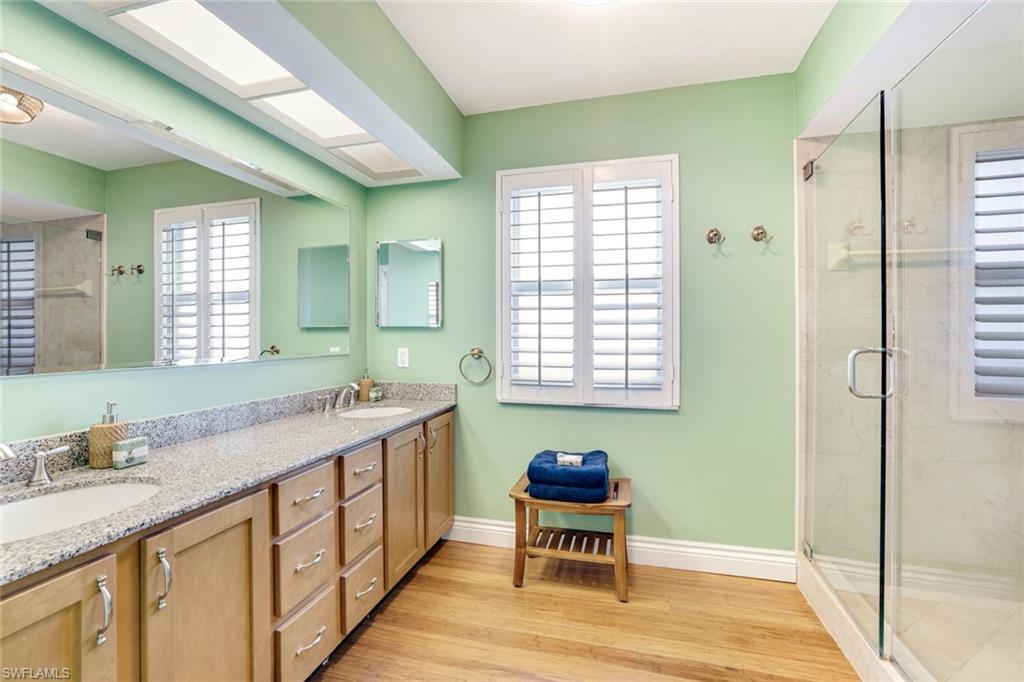 Designed for Florida Living by Local Architect David Poorman, this outstanding Home is Timeless! With an Outstanding Open Floor Plan, Generously Sized Rooms, Abundance of Windows, Clerestory Windows, Sliding Glass Doors, French Doors and Skylights allows Natural Light to fill the Home. Teragan Bamboo Flooring, 5-inch Baseboards, Solid Core Interior Doors. ALL EXTERIOR, DOORS SLIDING GLASS DOORS, GARAGE DOOR, FRONT DOOR, SIDE DOOR TO THE GARAGE & ALL WINDOWS INCLUDING THE CELRESTORY WINDOWS ARE HURRICANE IMPACT, Saltwater Pool with Resistance Swimming Spa Jets, Travertine Decking and Solar Heating. These are just a few of quality upgrades throughout the home. The floor plan flows around the amazing great room with its soaring twelve and half foot flat ceilings, lined on two sides by stack back walls of sliding glass doors and clerestory windows, opening up to a wraparound screened lanai overlooking the saltwater pool, lush private backyard and preserve area. Oversized kitchen opens to great room features custom wood cabinets with built-ins, 13-foot island with bar sink, quartz countertops, custom tile backsplash wonderful lighting, stainless steel appliances. Generous Sized Primary Bedroom Suite is very serene with soaring ceilings, French doors that open on to lanai. Spa Inspired Primary Bath Suite is filled with natural light from French Doors & Sky Lights, wood look tile flooring, custom lighting, mirrors, wood cabinets with travertine vanities, bidet, soaking tub with jets, walk in shower frameless enclosure, outside shower with privacy wall. Split Floor Plan allows for privacy of all residents the home has two other bedrooms along with good-sized guest bath. Home also has a wonderful home office which has two work areas with custom cabinetry. Not to be forgotten an oversized two car garage, with storage space. NEW TIMBERLINE SHINGLE ROOF HAS JUST BEEN COMPLETED!!! NEW SOLAR POOL HEATING PANELS HAVE BEEN INSTALLED!!! Located in Kings Lake in the sought-after Woodland's neighborhood of 45 custom homes; they enjoy their own private heated pool/clubhouse! Kings Lake is low density community with and abundance of green space, walking and jogging path, nature trail, tennis & pickle ball court. Low Fees, Pet Friendly. Minutes to Olde Naples & Marco Island for the Beaches Fine Dining, Shopping & Theatre! You will find a wonderful Florida Lifestyle with this home!
