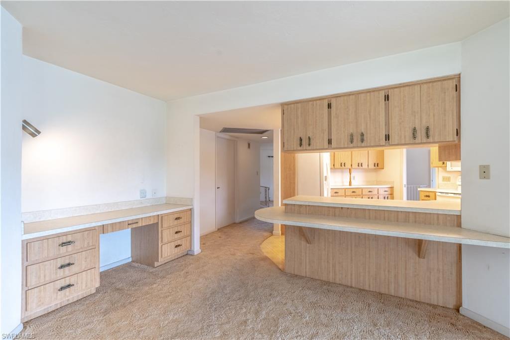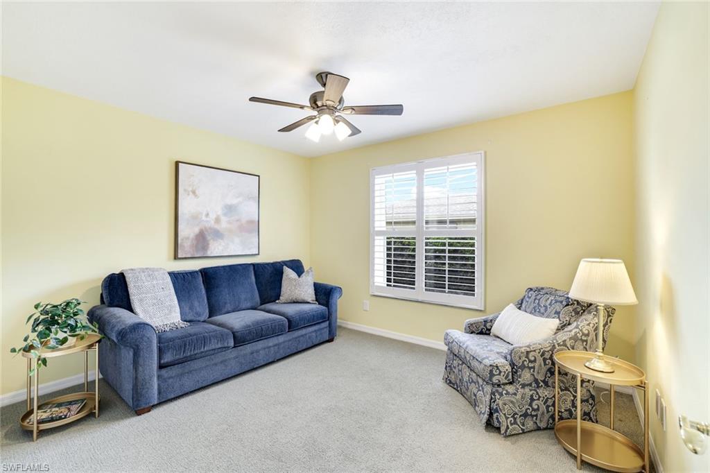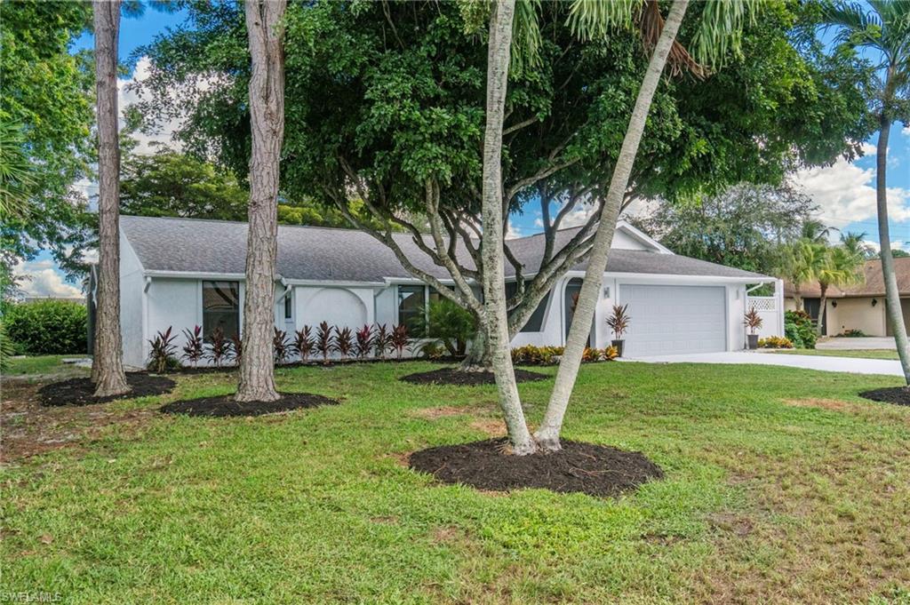 Tucked away on a quiet cul-de-sac in the desirable Kings Lake community, this well-maintained home offers 3 bedrooms plus a den, 2 bathrooms, and a peaceful, serene backyard with a screened lanai and pool. The pool features custom seating—perfect for lounging and enjoying the Southwest Florida sunshine in comfort. The backyard is spacious and private, ideal for quiet mornings or casual gatherings. Inside, the large and open kitchen includes crisp white cabinets, accent lighting, and plenty of storage, making it both functional and welcoming. Additional features include crown molding, chair railing, vaulted ceilings, custom doors, and built-in shelving throughout. The layout offers generously sized rooms and extra storage with custom closet systems. Large windows in the guest bedroom and den bring in great natural light. A new roof ( 2024 ), new water heater ( 2024 )and double-pane impact windows add durability and efficiency. An oversized 2-car garage with pull-down attic stairs provides even more storage space. Kings Lake is a peaceful community, featuring mature landscaping and a serene atmosphere. This community provides excellent amenities, including bike and jogging paths, a community pool, fitness center, and tennis courts. Enjoy the prime location, close to Downtown Naples and pristine white sand beaches.