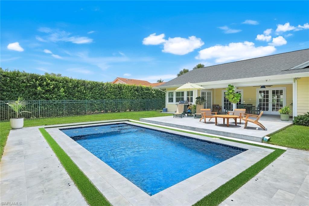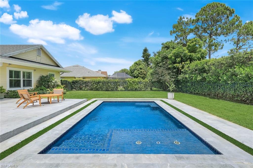 Exquisite luxury living awaits you. Nestled in Kings Lake, one of the most coveted neighborhoods in Naples, this stunning estate offers an unparalleled blend of elegance, comfort, and modern sophistication. Situated on an oversized lot, this home is fully remodeled with the utmost attention to detail and is truly ready to be enjoyed. Step into the grand entryway where the home is bathed in an abundance of natural light, thanks to expansive hurricane rated windows and sliding doors that offer breathtaking views of your private pool and surrounding landscape. The chef-inspired gourmet kitchen features slow-close, white shaker-style cabinetry and quartz countertops with matching quartz backsplash and brand-new stainless-steel appliances. The lavish spa-inspired bathrooms have floor to ceiling tile and new plumbing. With over 2,200 square feet of living space, the home boasts 2 spacious king-sized bedrooms and one queen-size overlooking the pool. The open concept living and dining areas are perfect for entertaining, featuring spaces that seamlessly connect the indoors to the beautiful outdoor oasis. Enjoy your own private resort with a sparkling underground pool, expansive patio, and spacious yard, ideal for relaxing or hosting intimate gatherings. Located just 3.7 miles from 5th Ave, a reputable world-class dining, shopping, and cultural attraction. Discover a life of elegance and luxury—schedule your private showing today!