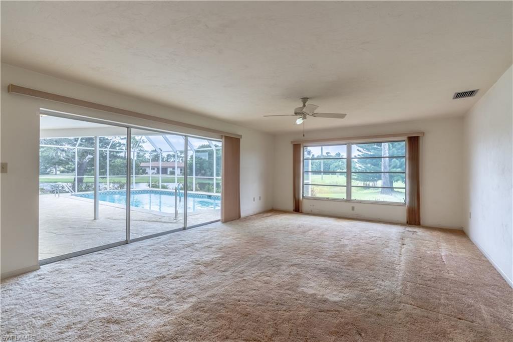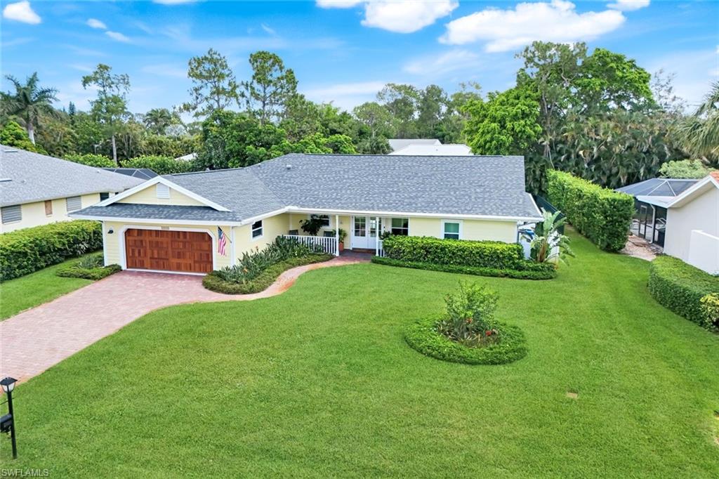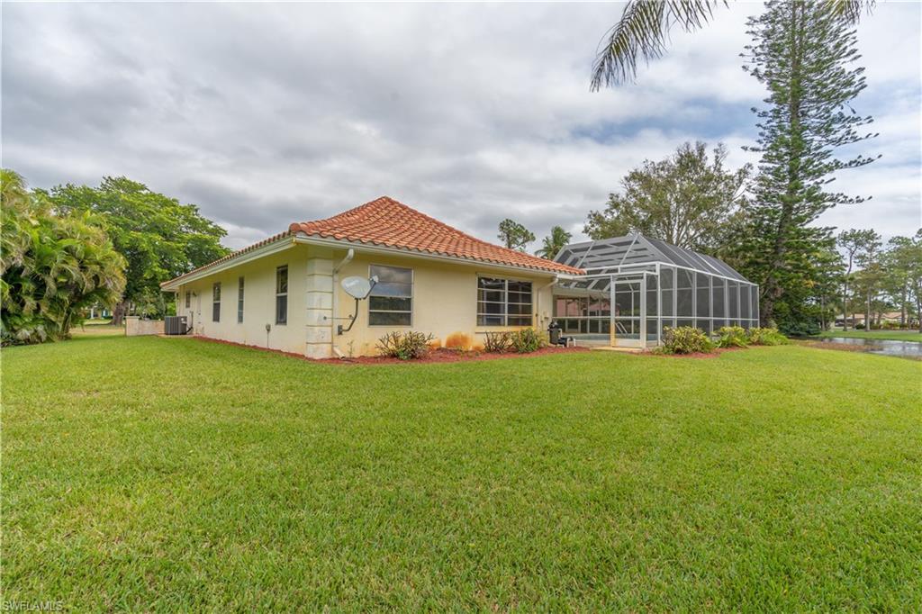 Welcome to 2353 Abbey Ct, a spacious single family pool home located on a quiet cul-de-sac with no through traffic in the highly sought-after Kings Lake community of Naples. This 3-bedroom, 2-bath single-family home offers an expansive 2,300 square feet of living space with an oversized two car garage situated on a generous .44-acre pie-shaped lot. The thoughtful layout includes large rooms and bedrooms throughout, providing a solid foundation for those looking to renovate or customize their dream home. Enjoy tranquil lake views and a southwest-facing backyard that captures beautiful natural light and picture-perfect sunset skies. The screened-in pool area offers a peaceful setting for outdoor living and entertaining, with plenty of space to reimagine your ideal Naples retreat. With good bones and a desirable floor plan, this home is ideal for homeowners seeking a fixer-upper or investors ready to renovate and add value. The 2024 installed AC system provides a great start to any changes a new owner may wish to make. The Hot Water Heater was Replaced in 2021. The Lanai Fla Roof replaced single ply flat in 2022. The low Kings Lake HOA fees of $ 434.00 a year make this neighborhood even more attractive, offering access to tennis and pickleball courts, walking paths, and beautifully maintained surroundings—all just minutes from Downtown Naples, beaches, and shopping. Don’t miss this rare chance to own a large-lot pool home with incredible potential in one of Naples’ most established and peaceful communities.