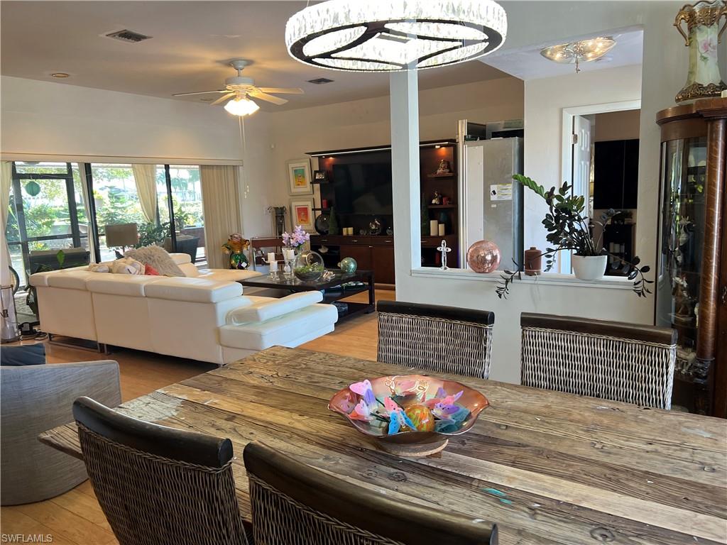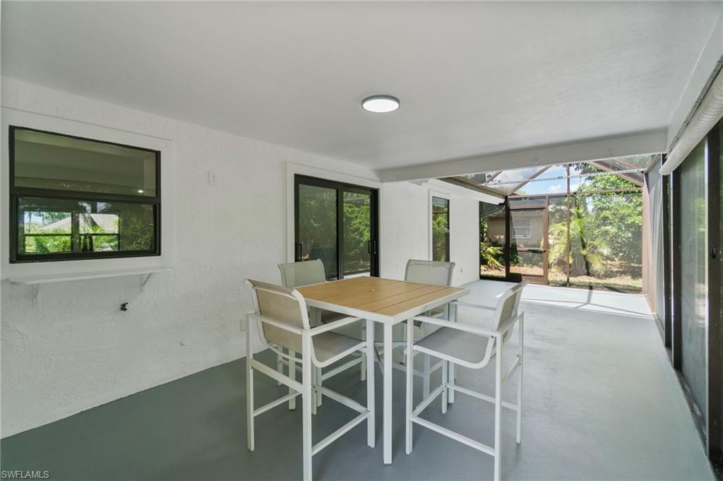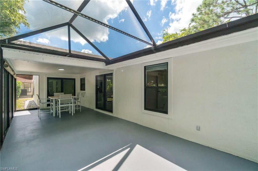 Beautifully updated pool home in the coveted community of Kings Lake. This 3-bedroom, 2.5-bath residence offers nearly 2,500 sq ft of living space with multiple living areas, soaring vaulted ceilings, and a bright, open layout. The upgraded kitchen features new countertops (2025) and a convenient pass-through window to the pool area. Recent improvements include upgraded electric, two new HVAC units, new washer and dryer, new refrigerator, and fresh paint (all 2023). The home also features solar panels, a cozy fireplace, hurricane shutters, and abundant natural light from multiple skylights. The landscaping has been refreshed with new plantings and numerous fruit trees throughout the yard. Enjoy the large screened lanai with pool and a private backyard backing to the walking trail—no rear neighbors! Kings Lake offers scenic walking paths and a prime Naples location just minutes to downtown and the beach. Ideal for full-time or seasonal living.