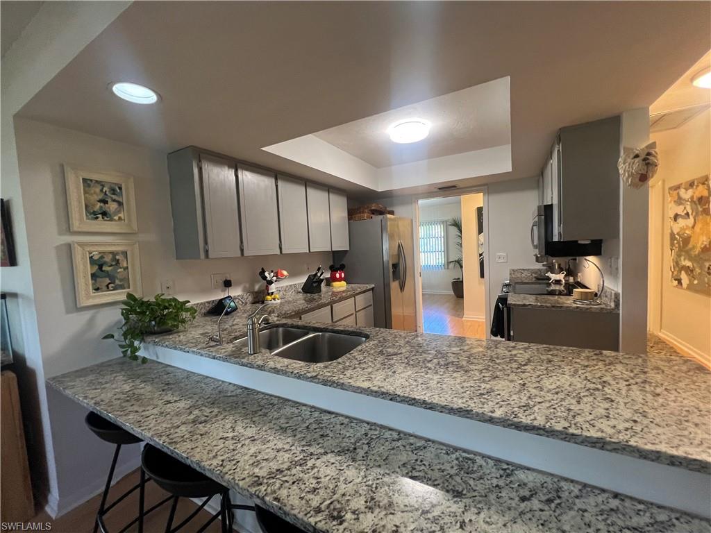 JUST REDUCED $ 5,000-- A CHEF'S DREAM KITCHEN. MOTIVATED SELLER - BRING ALL OFFERS----A MUST SEE !!!Welcome to 2237 Kings Lake Blvd. This impeccably renovated and reimagined 3 bedroom + den, 2 bath home in the desirable Kings Lake community is a true masterpiece of modern design and functionality. Roof ( 2006--we have a 4 point Inspection that show remaining life is 6 years ). We have a wind mitigation all uploaded in supplements. Hot Water Heater -2015, Washer & Dryer - NEW .From the moment you step inside passed the tiled entryway waterfall, you'll be captivated by the open-concept layout created by removing walls around the kitchen to seamlessly blend the kitchen and living areas into a spacious, inviting haven. Complete Irrigation system and new Sod laid along with mulch and roof soft-washed. The kitchen has been completely transformed to professional chef-level standards, boasting brand-new cabinetry, stunning countertops, and an extended island with ample counter space for both cooking and entertaining. 2 A/C Units for cooling pleasure also High-end GE Café series appliances ( Dishwasher, Refrigerator ), including a gas stove/oven powered by an outdoor 80-gallon gas tank (one of the few Kings Lake homes with gas), make this a culinary enthusiast’s dream. To preserve the open aesthetic, an upgraded recessed vent hood above the stove ensures an unobstructed view of this remarkable space while cooking and entertaining family and friends. The home's interior shines with new framing around windows and doors and luxurious vinyl plank flooring throughout, exuding style and durability. Both bathrooms have been meticulously modernized— the primary bathroom features elegant floor-to-wall tiling, a sleek door-less shower, and a new vanity with dual sinks, while the secondary bathroom delights with character-filled purple patterned tiles, a new vanity, and upgraded fixtures. Additional features include a two-car garage with epoxy-finished garage floor, a new water heater, new Washer & Dryer and fresh paint inside and out, all contributing to the property’s turnkey appeal. The home is situated on a large .25 acre lot with a huge backyard, plenty of room to add a large pool or lanai. Located in the tranquil Kings Lake neighborhood non-gated with low association fees of $434/year, this home offers a family-friendly Florida lifestyle. The neighborhood features tennis and pickleball courts as well as access to scenic walking paths around the lake and a short drive to the vibrant downtown Naples scene. Residents enjoy close proximity to renowned dining, boutique shopping, pristine beaches, and the best of what Naples has to offer. Kings Lake has a flexible rental policy with a 30 day minimum and up to 12 rentals per year. Great for Investors ! Welcome Home to Kings Lake !