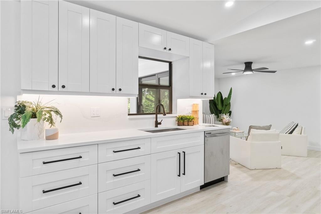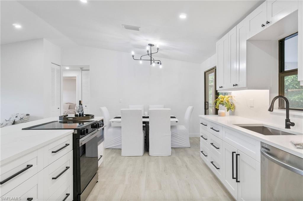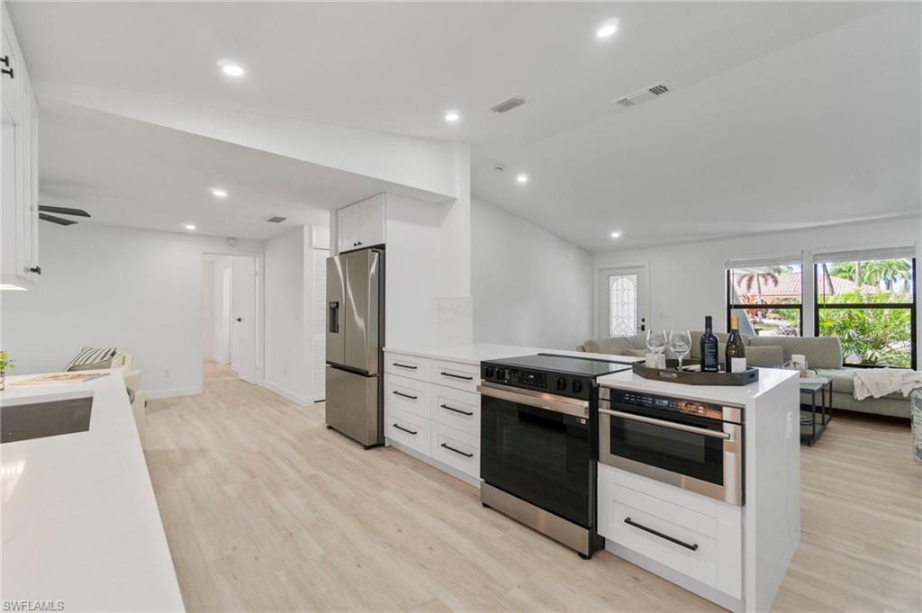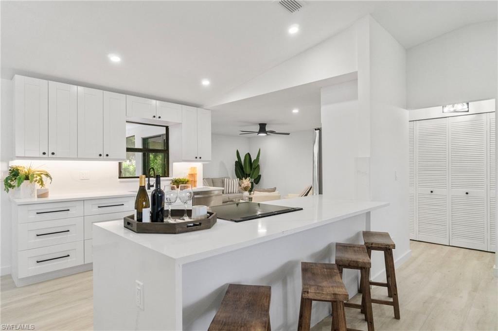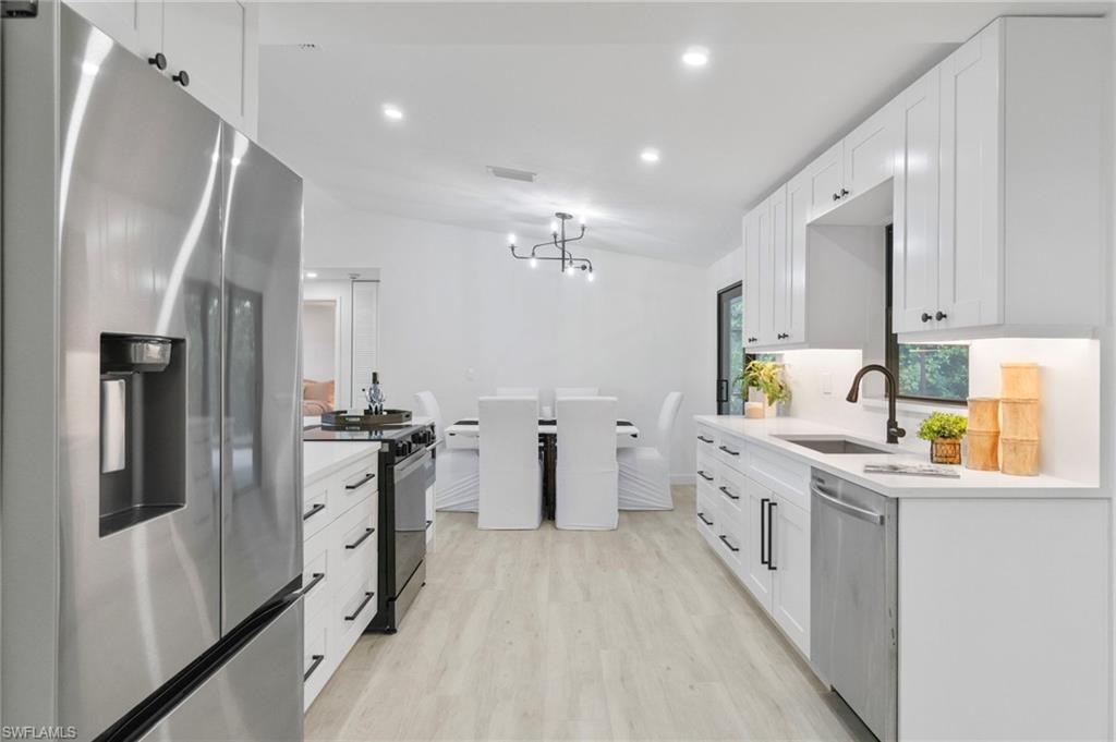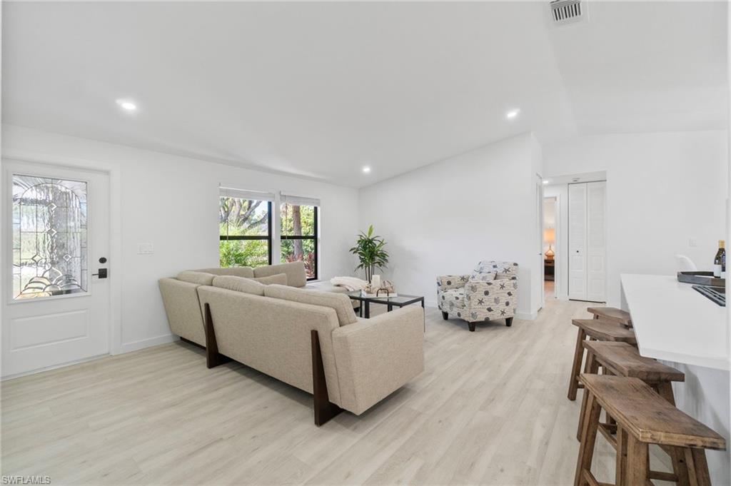 Exquisite luxury living awaits you. Nestled in Kings Lake, this stunning home offers an unparalleled blend of elegance, comfort, and modern sophistication. This home is fully remodeled (all permitted and closed through Collier County) with the utmost attention to detail and is truly ready to be enjoyed. The chef-inspired gourmet kitchen features slow-close, white shaker-style cabinetry and quartz countertops with matching quartz backsplash and brand-new stainless-steel appliances. The bathrooms have floor to ceiling tile, custom niches, new vanities, toilets, and glass enclosures. There is ample space for a future pool. The community has walking and biking paths, a community lake with one-mile sidewalk surrounding and tennis/pickleball. Located less than four miles from 5th Ave and the Naples Beaches! Low fees (HOA is $434/year) and the home is located near everyday conveniences such as Publix, CVS, Walgreens, dining, shopping, beaches, etc.