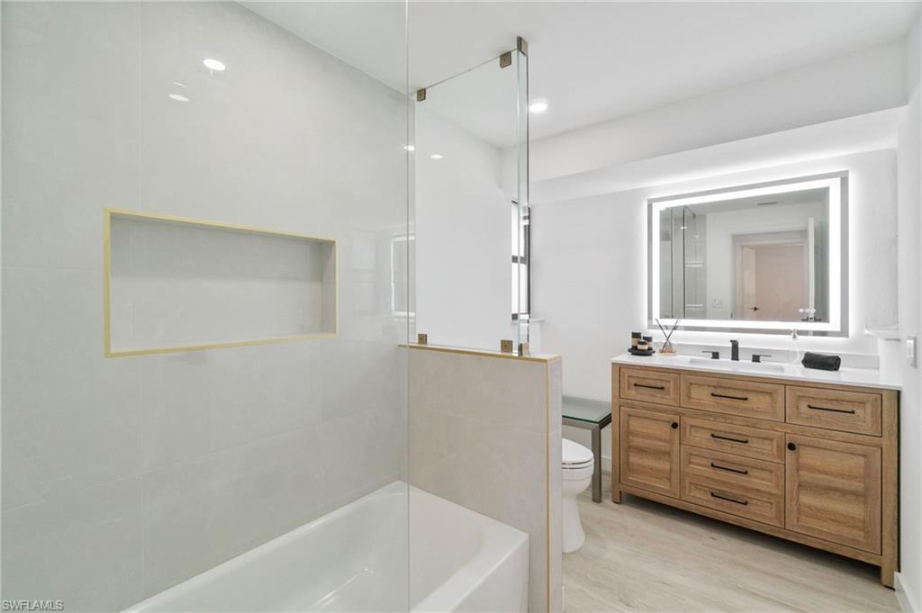 Discover effortless Florida living in this beautifully updated 3-bedroom, 2.5-bath pool home situated on an oversized 1/3-acre lot in the picturesque community of Kings Lake. Offering both privacy and exceptional proximity to downtown Naples, this home features recent renovations that align perfectly with today’s design trends—inside and out. You’ll love the newly remodeled kitchen, complete with stainless steel appliances, quartz countertops, two pantries, and a bright, open layout overlooking both the living room and the screened lanai. The spacious primary suite is a serene retreat with a stunning, newly updated bathroom featuring a free-standing soaking tub, custom tile work, and a glass-enclosed shower. A convenient pool bath adds function and ease for indoor–outdoor living. With more than 2,300 square feet of living space, this home offers plenty of room to relax or entertain. Large sliding glass doors open to the expansive screened lanai—with an impressive 26' x 16' covered area—perfect for al fresco dining, lounging, or enjoying sunsets by your private pool. Florida’s warm climate makes year-round swimming and outdoor living a natural part of daily life. Additional highlights include a newer roof (2013), newer HVAC system (2015), and an oversized 22' x 24' garage. The Kings Lake HOA fee is just over $400 annually, and the community is pet-friendly with fences allowed upon approval. Kings Lake is known for its lush landscapes, tranquil lakes, and scenic walking and biking paths surrounded by native Florida foliage. Residents enjoy nearby pickleball and tennis, as well as the convenience of the Publix Neighborhood Center right within the community. All of this is located just three miles from Olde Naples, where world-class dining, charming shops, and beautiful Gulf beaches await.
