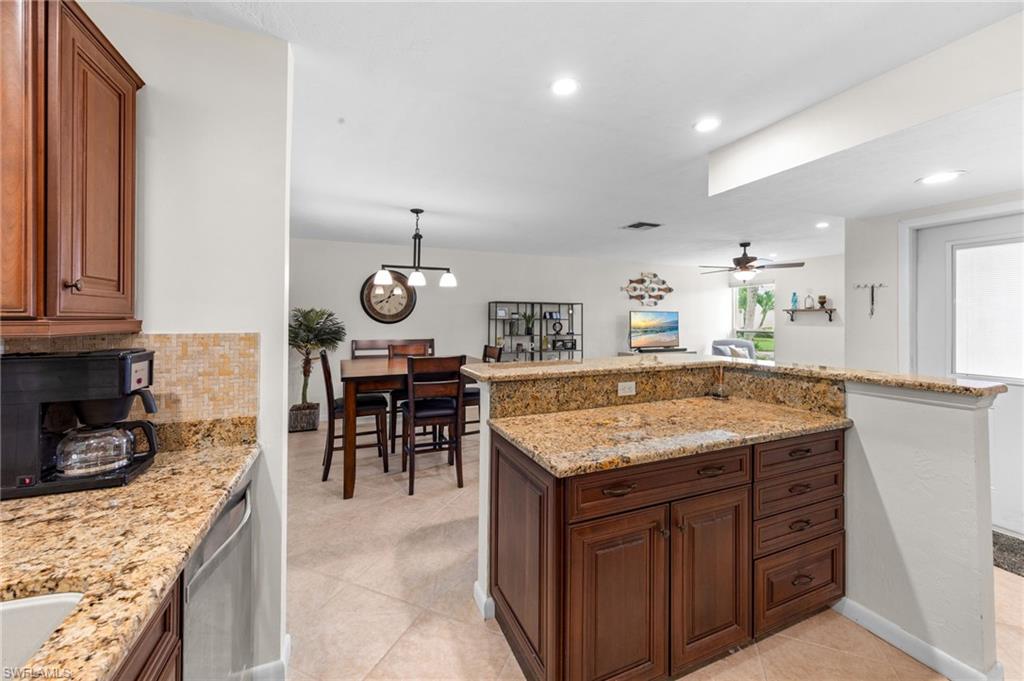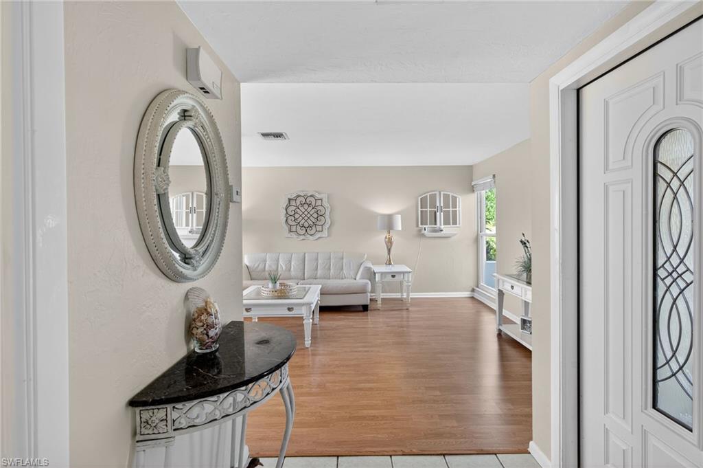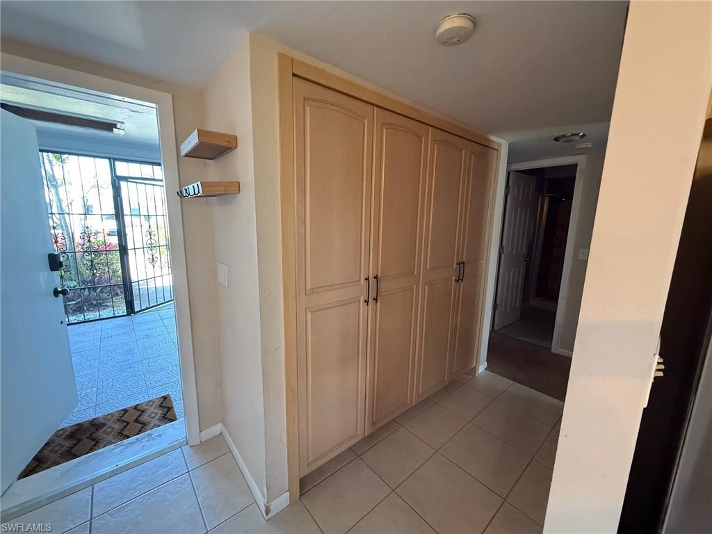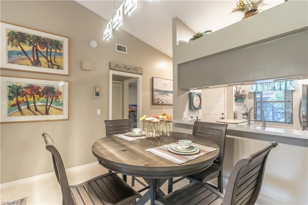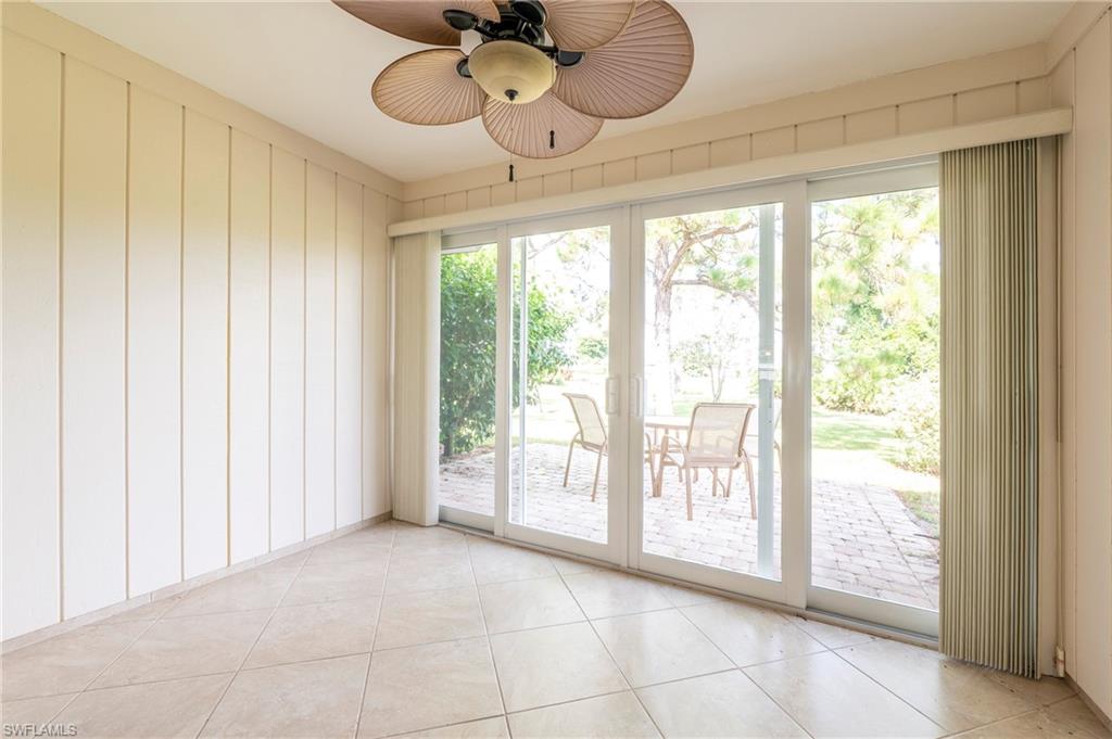 Experience the best Naples has to offer in this private 2 bed/2 bath attached villa less than 5 miles from the beach! If pickleball is more your thing you'll love the fact that this property is less than 1.5 miles to the home of the US Open Pickleball Championships at the East Naples Community Park. The Lakewood Community recently went fiber optic which means your low HOA dues also cover high speed fiber optic internet access. Along with its terrific location and low monthly dues this unit has an attached garage and many thoughtful upgrades; new exterior lights, custom designer blinds, canned lighting and dimmer switches in the kitchen and living room to name a few. Regardless of how your days are spent the privacy of the Florida room at sunset is a great way to spend an evening. Step outside the Florida room and you'll find it's a perfect spot for a grill and/or easy way to take your small pet outside. Membership at the Lakewood Country Club Golf Course is optional.