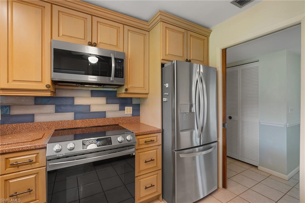 A must see Beautiful 1 story villa style condo in Naples in Boca Ciega Manor Centrally Located non-gated community with low association fees. No pets are allowed in Boca Ciega Manor, be at peace without loud barking coming from your neighbors dogs! Comes with your own deeded covered parking spot with storage unit, just steps off the front of the Condo. 2 Bedroom and 2 Bath with a gorgeous Southern Exposure with a Beautiful Lake view with Lush Landscaping and well maintained yard. A Grill is allowed in the back of your property. The Pocket door for the guest room allows for a private guest suite. Primary Master bedroom suite the Bathrooms have Granite counter Tops and Dual updated vanity and shower with a new Toilet too. Guest bathroom has Granite updated Counter Tops also with a new vanity and updated tub. Beautiful Diagonal Tile throughout the home and flows beautifully as it extends to the Lanai to the Florida room. The roofs were replaced with gutters in 2022. A paver deck can be added to the rear up to 10 FEET and the width of the Condo. Brand new $ 10,000 remodeled Kitchen with Quartz Counter Tops and Stainless Steel Appliances with beautiful stylish back splash the Bubble wall to accent the kitchen decor. New A/C- 2018, New Hot Water Heater-2025, updated plumbing, Freshly painted throughout Condo. Front Lanai is HUGE and screened in with privacy for your morning coffee or a beverage of choice in the evening. 100 Feet from the Condo is the community Pool, Sauna, Hot Tub to relax or socialize with the neighbors on any given day. Very quiet community and well kept Yard care. Just minutes to 5th Ave and the world class Beaches Naples has to offer. Great Restaurants and high-end shops just 10 minutes away. Welcome Home !