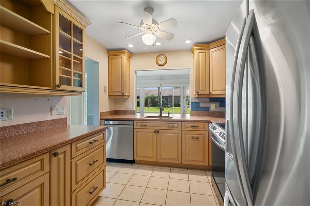 Charming 2-Bed, 2-Bath Villa in Lakewood – A Hidden Gem in Naples! Welcome to your slice of paradise in the sought-after Lakewood community! This ground-floor villa offers the ultimate in privacy—no neighbors above—and comes with covered parking and extra storage for all your Florida lifestyle essentials. Step inside to discover diagonally laid tile floors throughout—no carpet anywhere! The spacious layout flows seamlessly into an enclosed lanai with impact-rated sliding doors, leading to an extended patio where you’ll soak in serene lake views and lush tropical landscaping. Enjoy peace of mind with impact windows and a 2018 roof, plus a host of recent upgrades: Range, dishwasher & water heater (2019), Microwave (2022), HVAC system (2017), and Brand-new reverse osmosis water system (2025), new plumbing fixtures in guest bath and kitchen (2025), Master Shower is handicap accessible. Boca Ciega Village is a low-density, pet-friendly community with low fees and a sparkling pool steps away. You're only minutes from Naples’ world-famous beaches, scenic parks, pickleball courts, public golf, and a vibrant mix of dining, shopping, and entertainment. With rental restrictions in place—no rentals allowed until 3 years of ownership—your investment is protected, making this villa ideal for a primary residence or vacation retreat. Move-in ready and waiting for you! Don’t miss out on this rare opportunity to own a peaceful, well-maintained home in one of Naples’ most charming communities.