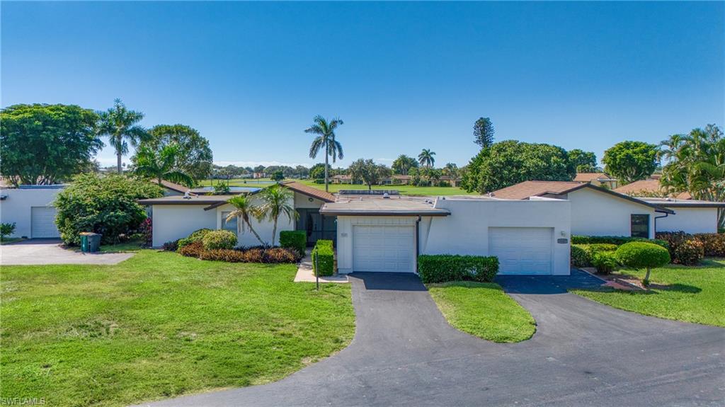 Rarely Available Lakewood Villas III – 2-Bedroom, 2-Bathroom Villa with Golf Course Views! Discover this freshly painted 2-bedroom, 2-bathroom attached villa with a 1-car garage, ideally located in the quiet, low-traffic area of Boca Ciega Circle within the established Lakewood community. This charming home boasts a desirable Southwest exposure, offering views of the golf course and mature trees—creating a serene setting that perfectly blends comfort, convenience, and outdoor enjoyment. Designed for relaxed living, the comfortable floor plan features a spacious and airy living room, ideal for gatherings and unwinding. The centrally located kitchen is highlighted by a picturesque window with convenient pass-through to the lanai. The primary suite offers an en-suite bath and ample closet space, while the guest bedroom and second bath provide versatility—perfect for visitors, family, or a home office, both suites outfitted with new carpeting. Step outside to the screened lanai, an inviting space where you can enjoy year-round outdoor living while soaking in the tranquil golf course views. The attached garage provides secure parking, extra storage, and a laundry area for added convenience. This home presents an exciting opportunity for the new owner to enjoy as is or reimagine into your custom retreat. With low HOA fees, this property offers an exceptional value in a prime location just minutes from downtown Naples, Sugden Park and the Bayshore Arts District. Don’t miss this incredible opportunity—schedule your showing today!