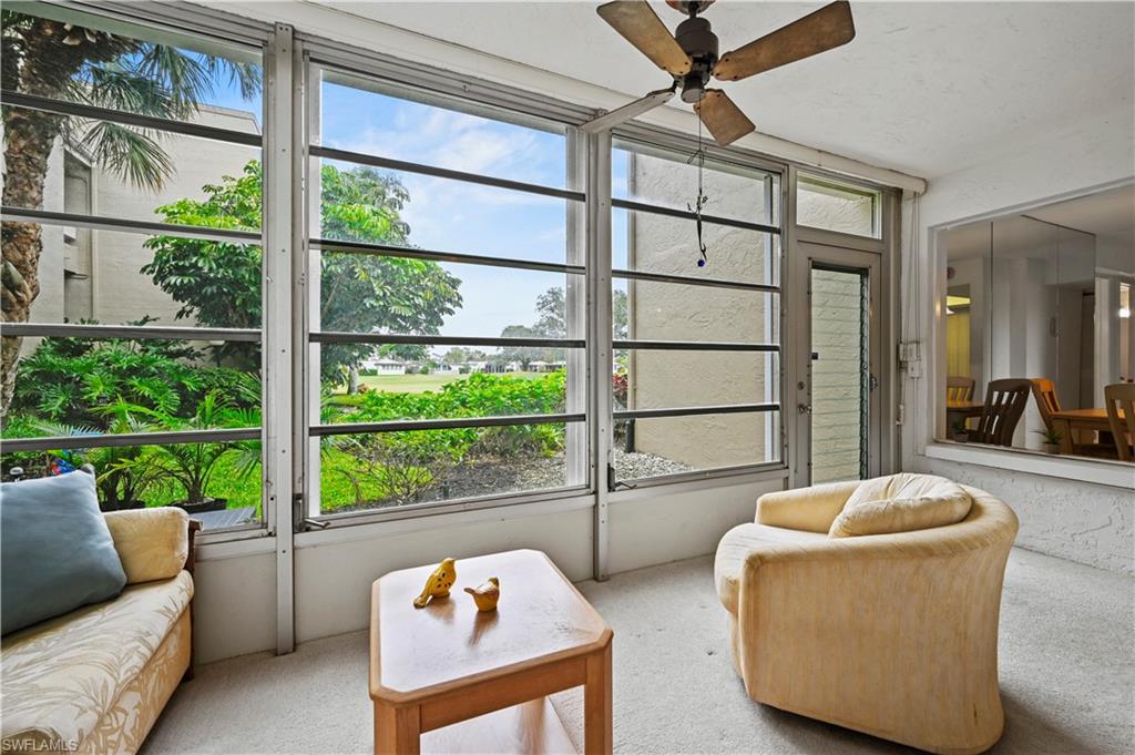 Gorgeous 2-bedroom and 2-bathroom condo in the perfect Naples Location, close to everything you could need! The unit is located on the first floor of the building on a corner and offers a beautiful screened lanai overlooking the 6th hole on this par 60 golf public golf course with an impeccable 18-hole course, built to USGA specifications with four fresh water lakes and abundant wildlife, you can walk or ride and play in 3.5 hours or less! The living room is large and comfortable with plenty of space for lounging. The dining area provides a comfortable amount of space for you to enjoy lovely dinners! Two spacious bedrooms and bathrooms and plenty of storage space inside and additional outside complete this near perfect home! Just steps away from the pool and spa with a beautiful view of the golf course. Lakewood condo has been recently updated with a new roof replaced in 2017. The condo also runs a tankless water heater 6 months old and A/C was replaced in 2017. A short walk to shopping, dining and parks such as Sugden park, East Naples Community Park for Pickleball and Baker Park and less than 5 miles drive to Naples Beaches, attractions, downtown Naples high-end shopping, and 5th avenue dining.