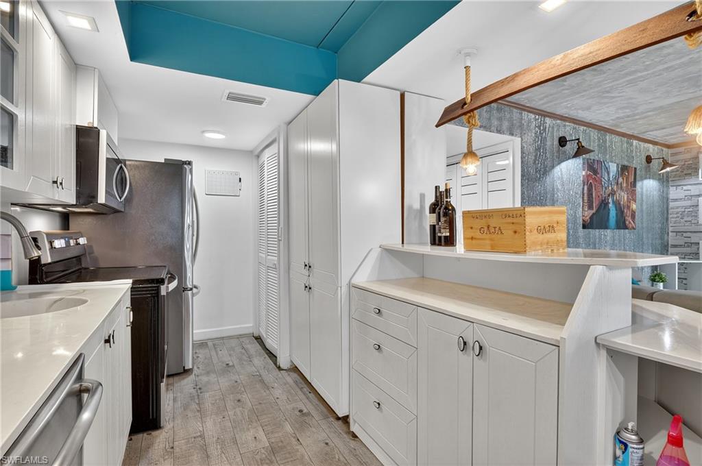 Style, Comfort, Convenience - You get all three!! When you purchase this 2-bedroom, 2-bathroom Condo centrally located to everything a resident may need. It offers the ideal blend of being well priced with modern coastal living in our beautiful beach town, and you can call it home. Step out onto your private balcony and enjoy the tranquil Florida breeze, or relax by the inviting community pool. The property is located just 3.3 miles from downtown Naples and the beautiful Gulf beaches, yet nestled in your private quiet community. A lot of perks are packed into this unit, built in work space, custom decorative shelving, remodeled bathrooms, movement sensor light fixtures, indoor laundtry, modern cabinetry and so much more. Whether you're searching for a seasonal getaway, full-time residence, or income-producing investment, this property is a smart and versatile choice in one of Florida’s most desirable locations.