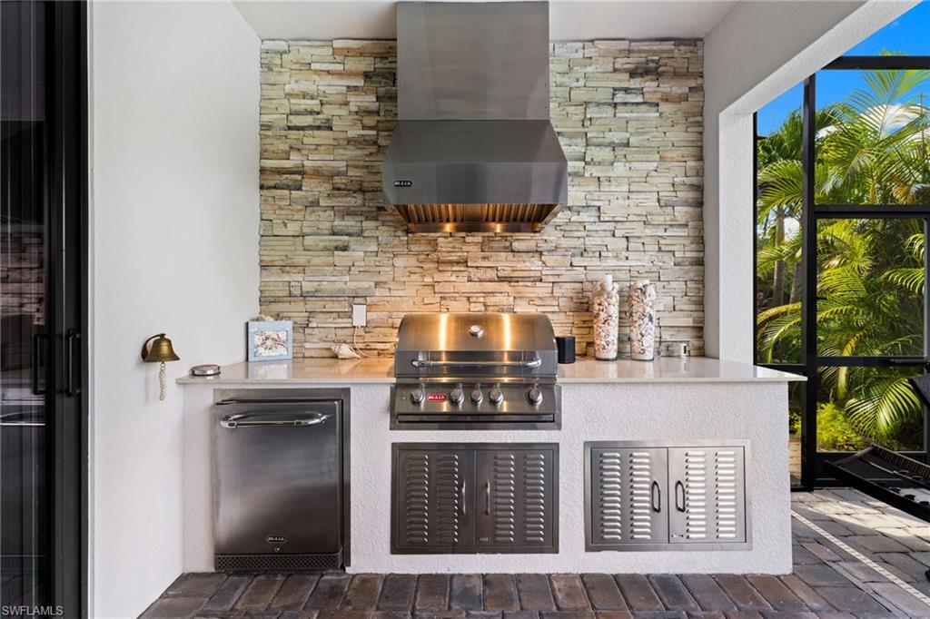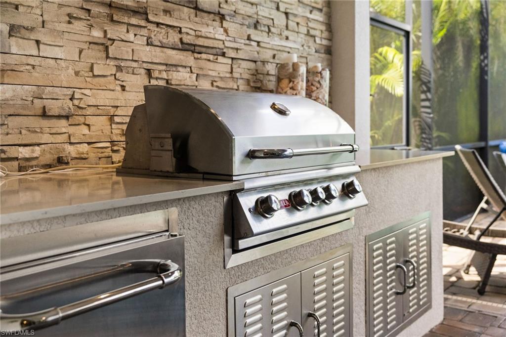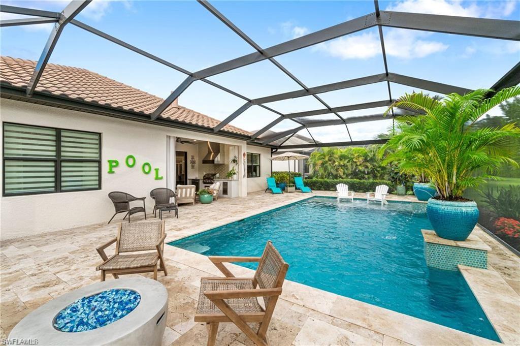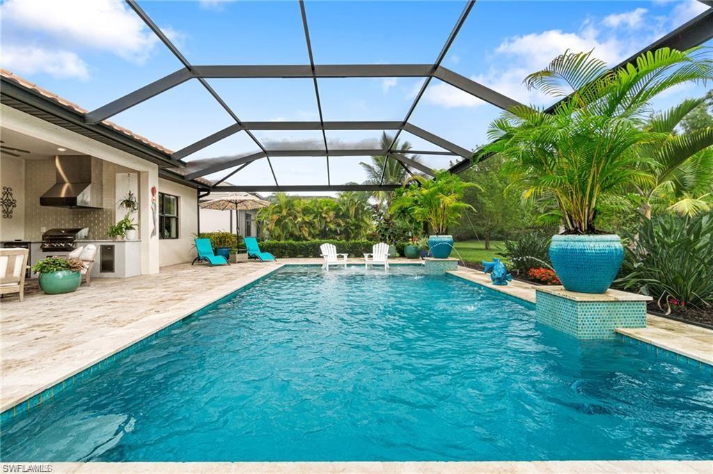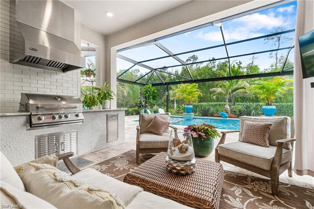 One story (Summerville model) home loaded with upgrades. This 3 bed, 3 bath plus den home has many desirable features including gourmet style kitchen with GAS range, expanded lanai, outdoor kitchen, outdoor lighting, coffered ceilings, crown molding, impact resistant windows and doors, 3 car garage with finished epoxy floor, tankless water heater, custom backsplash and much more!!! There's also Impact resistant sliders from the Master suite and triple-sliders from main living area to pool. Smart Home technology includes Amazon Nest, Ring and wireless upgrades. All rooms have blinds and drapes and all bedrooms have upgraded ceiling fans. Lamorada has low HOA fees and has a luxury 13,000 square foot clubhouse with a poolside bar with food and beverage service. Other amenities include a pool with lap lanes, spa, fitness center, movie theater, culinary arts studio, tennis, pickleball and bocce. Lamorada is located a short distance from the future development of "The Pointe" at Founders Square, adding several new shopping, entertainment and dinning options to this already fabulous Naples location.