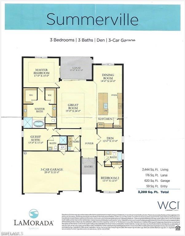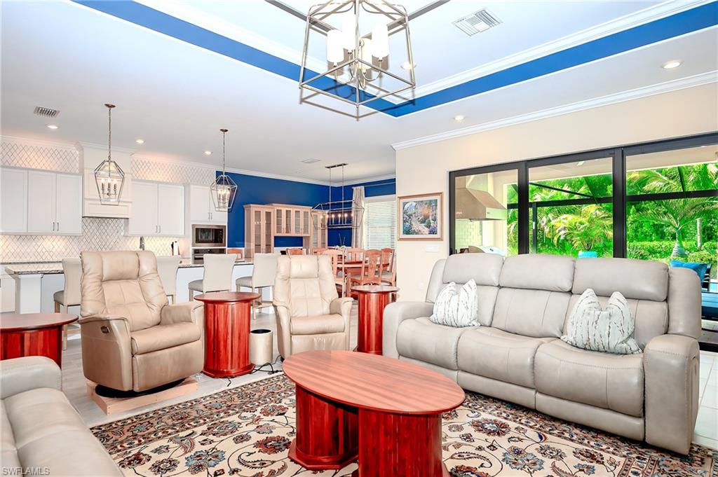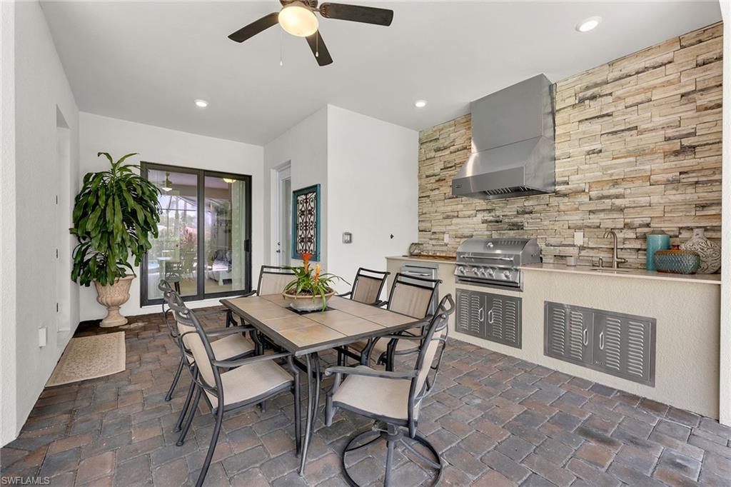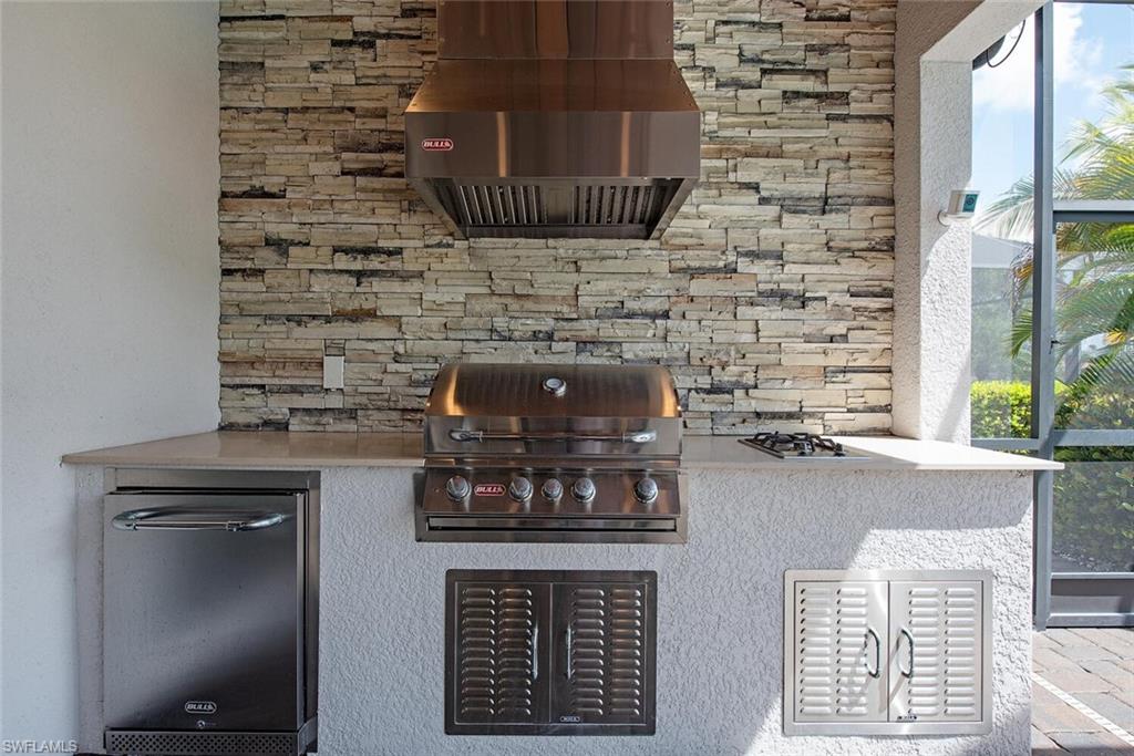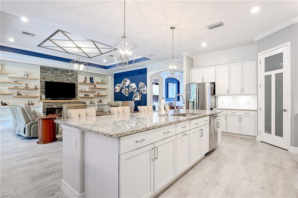 One story (Summerville model) home loaded with upgrades. This 3 bed, 3 bath plus den home has many desirable features including gourmet style kitchen with GAS range, expanded lanai, outdoor kitchen, outdoor lighting, coffered ceilings, crown molding, impact resistant windows and doors, 3 car garage with finished epoxy floor, tankless water heater, custom backsplash and much more!!! There's also Impact resistant sliders from the Master suite and triple-sliders from main living area to pool. Smart Home technology includes Amazon Nest, Ring and wireless upgrades. All rooms have blinds and drapes and all bedrooms have upgraded ceiling fans. Lamorada has low HOA fees and has a luxury 13,000 square foot clubhouse with a poolside bar with food and beverage service. Other amenities include a pool with lap lanes, spa, fitness center, movie theater, culinary arts studio, tennis, pickleball and bocce. Lamorada is located a short distance from the future development of "The Pointe" at Founders Square, adding several new shopping, entertainment and dinning options to this already fabulous Naples location.