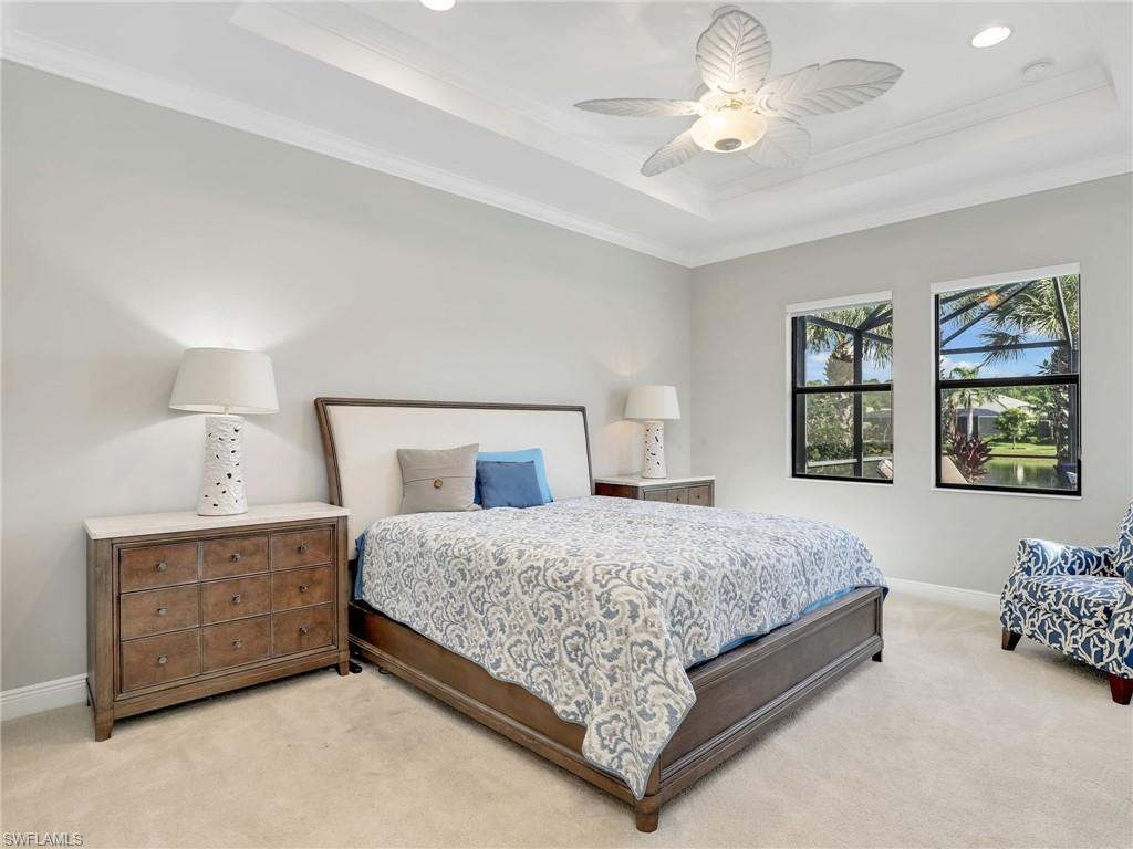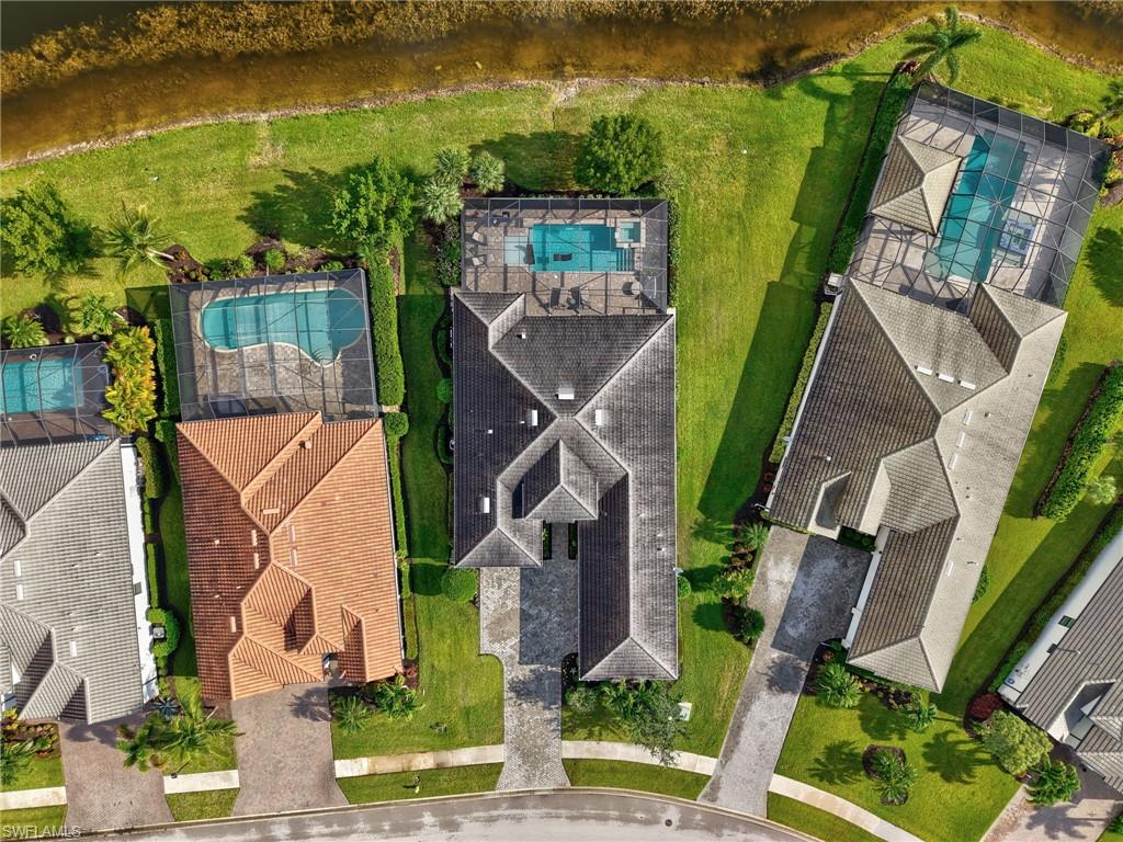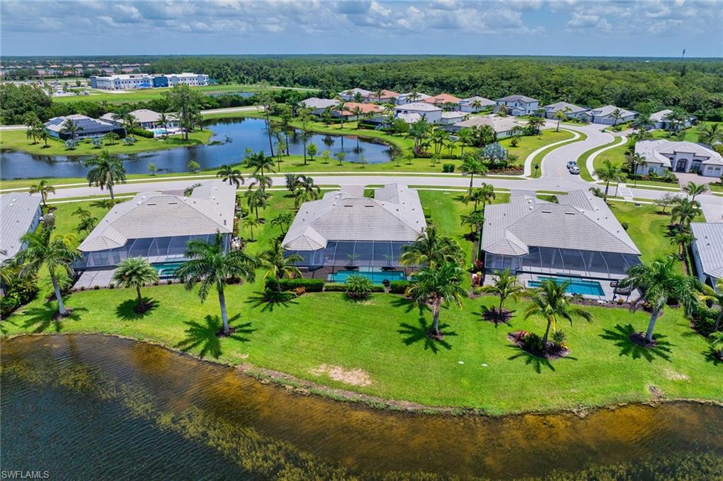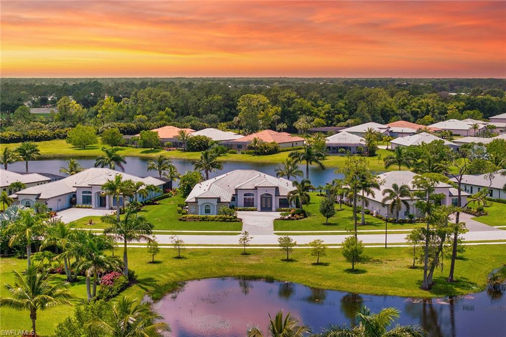 A once-in-a-lifetime opportunity to own a piece of paradise in one of the sought-after coastal communities in the world. Quietly tucked along one of the most beautiful and desirable streets in North Naples' LaMorada gated community, arrives a meticulously cared for single-story custom estate home featuring jaw-dropping panoramic lake views, nearly one-half-acre of lushly landscaped grounds and coveted rear southwest exposure for picturesque sunsets all year long. Available for only the second time ever, this beautiful home boasts four spacious bedrooms, three full baths, an outdoor entertainment oasis featuring a custom heated saltwater pool and spa, and one of the largest lots in any gated community in the city of Naples. Other features of this newer construction masterpiece include a chef’s kitchen with natural gas cooking, guest en suites for absolute privacy, hurricane impact windows and doors throughout, storm smart shutters, a new generator, large volume ceilings, an oversized brick paver entry driveway with three-car garage and offered fully furnished/turnkey for total simplicity and immediate enjoyment. Within walking or biking distance to Founder’s Square, numerous golf courses and endless fine dining, shopping and entertainment opportunities, LaMorada offers an unmatched experience of community living with endless socializing opportunities and low HOA fees. Residents of LaMorada also enjoy access to an expansive and engaging clubhouse, tennis courts, pickleball courts, a state-of-the-art fitness center, private theatre room and more. 116x221x70x202.