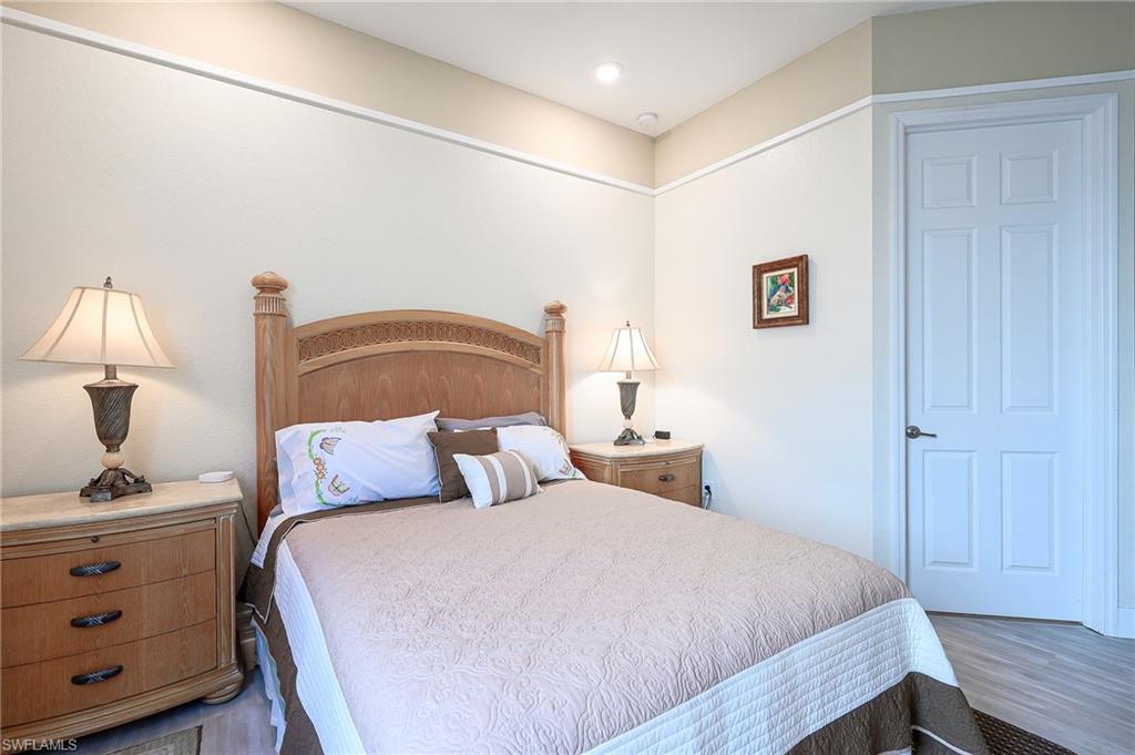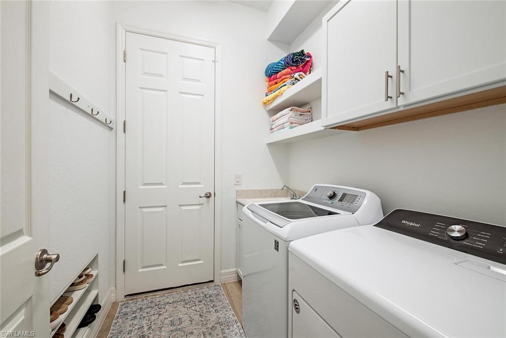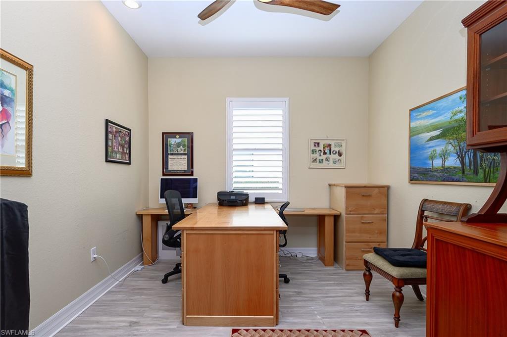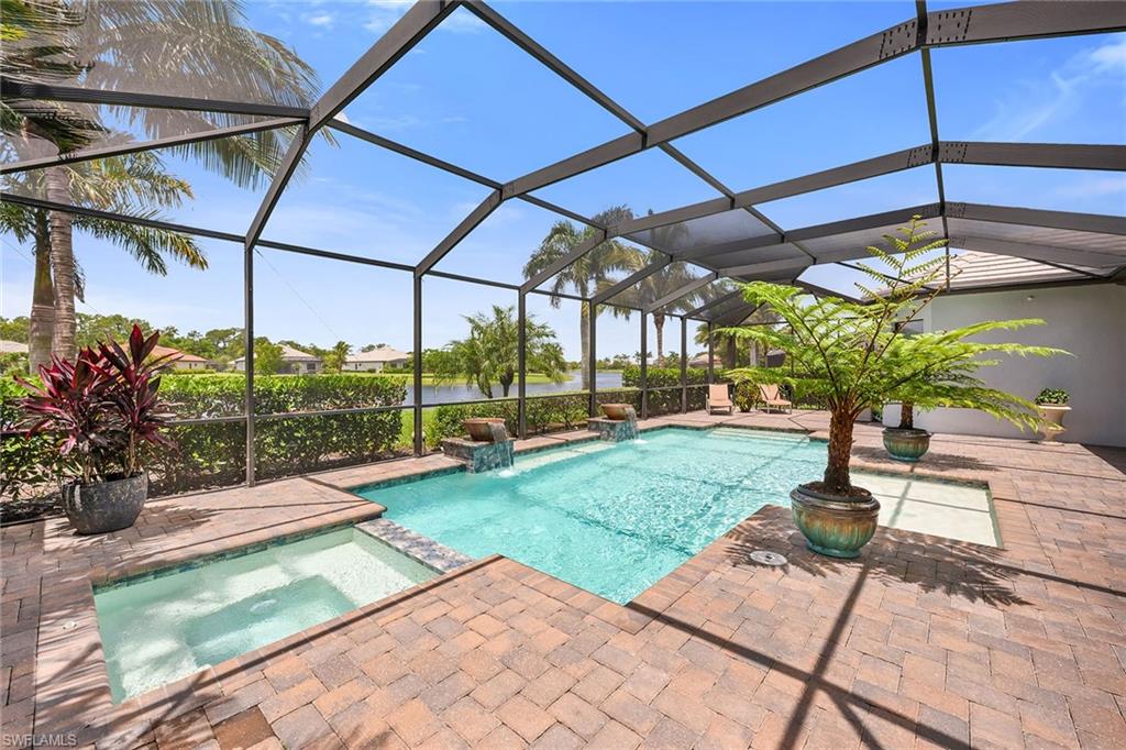 This lovely 3 bedroom 3 bath home, with a den easily converted to a 4th bedroom, is situated on a cul de sac in a pretty residential neighborhood in North Naples. The house is well protected from any weather concerns with a stand-by generator, impact glass doors and windows, and a lanai Storm Smart hurricane screen which offer peace of mind to the full-time or seasonal resident. Equipped with Smart Home Technology, upgraded lighting and fans, natural gas available for heating the pool as well as the kitchen cooktop, outdoor grill, clothes dryer, and tankless hot water system, the homeowners have an ease of living that is appreciated by the whole family. Extra shelving in the closets. and custom built-in storage in the garage provide a convenient solution to the many extras a family accumulates. The beautiful lanai, pool, and spa are enclosed by lush landscaping and invite family and friends to enjoy warm sunny days and spectacular sunsets in true Florida style. A small adjacent pond attracts abundant bird life to the area adding to the ambiance. An outdoor kitchen with gas grill and bar fridge complete the picture of a personal oasis of relaxation. LaMorada is a small residential community located near top rated schools, and Founder's Square with its numerous dining, shopping, medical, and service opportunities. The residents enjoy many club activities including tennis, pickleball, bocce ball, swimming, and their own pool bar and restaurant.