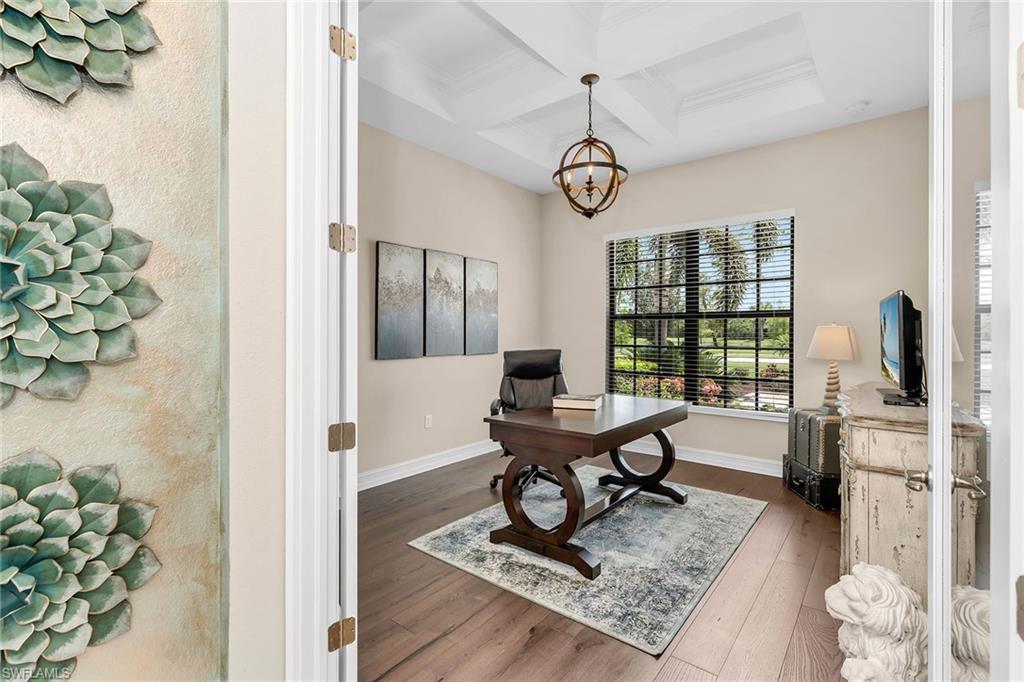 Beautiful lake views and over half an acre of professionally landscaped grounds frame 2308 Somerset Place, one of the most desirable properties in LaMorada. Being sold by the original owner, this is an uncommon opportunity to make a comfortable estate home your own. This light and bright, quiet and private residence epitomizes the Florida lifestyle: an ideal southern rear exposure; large pool with integrated spa, sun deck, and water features; huge, screen enclosed, paver patio around the pool; large wood ceiling lanai; outdoor kitchen; expansive outdoor space to enjoy both in back and in front of the home; a well-appointed chef’s kitchen; high ceilings; an oversize 3 car garage; and on Somerset, LaMorada’s preferred street, low density, open, and noise-free. Relax in the spa, lounge around the pool, cook indoors and out, and entertain on the large lanai and in the spacious and inviting great room. Open the hurricane rated impact glass sliding doors and windows and bring the outside into the large family room, gather comfortably around the large island and kitchen table, or entertain in the semi-formal dining area. Retreat to the substantial owners’ suite, which features beautiful views out to the lake, walk-in closets, dual sinks, full size tub, and walk-in shower with dual showerheads. The popular Bougainvillea model’s split floor plan’s three bedrooms all integrate baths ensuite and the office/den flex room with coffered ceiling has its own closet, door, and window, converting easily into a fourth bedroom. The extensive feature list includes quartz countertops, travertine, wood, and tile flooring; tray, coffered, and tongue and groove wood ceilings; tankless water heating; tasteful chandeliers and ceiling fans; natural gas-powered cook top, grill, and pool heater; dual-zone climate control with Google Nest and Honeywell WiFi thermostats; walk-in pantry; tons of Closet Factory cabinetry added to the oversized three car garage; energy efficient LED lights throughout the home; WiFi/Alexa/Google controllable lighting control systems in the home, garage, and pool area; easily accessed pool bath; central vacuum system; and more. Rest easily knowing that you have a whole house 20kw Kohler standby generator (that even powers the pool) as well as surge protection, the windows and doors are impact rated, the house sits high and dry in Flood Zone X, and the alarm system (with battery backup) is monitored and augmented with a hard-wired exterior camera surveillance system. LaMorada features a 14,000 sq ft clubhouse and resort-style amenities that include a poolside bar, food & beverage service, large pool & hot tub, large fitness center, and tennis, pickle ball, and bocce courts, a culinary arts studio for cooking and wine tasting demonstrations, social room, movie theater, and card and craft rooms; and all conveniently located near Publix, North Collier Hospital (NCH), banks, restaurants, and commercial centers in one of Naples’ fastest growing corridors.