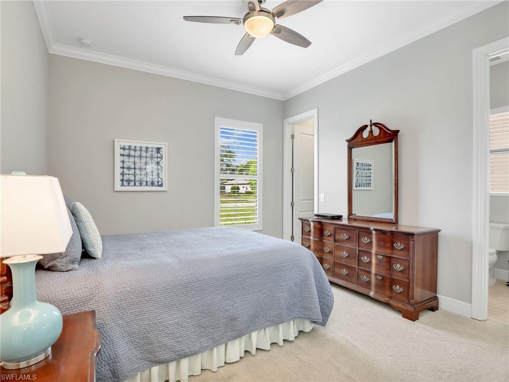 Located in the sought-after community of LaMorada, this four-bedroom, two-bath residence offers 2,229 square feet of refined living space. Positioned on a quiet cul-de-sac with peaceful lake views, the home features a highly desirable three-car garage. Designed in a Florida-inspired architectural style, the home showcases light, bright interiors and custom plantation shutters throughout. The open-concept layout flows seamlessly into the outdoor living area, complete with a sparkling pool and outdoor kitchen—perfect for entertaining or enjoying the Naples sunshine. LaMorada residents enjoy access to a suite of elevated amenities, including a resort-style pool, tennis and pickleball courts, fitness center, movie theater, and an on-site restaurant. Conveniently located near Logan Landings, Founders Square, Mercato, and area beaches such as Vanderbilt Beach and Wiggins Pass State Park, this home offers a blend of gated privacy and vibrant, resort-style living.