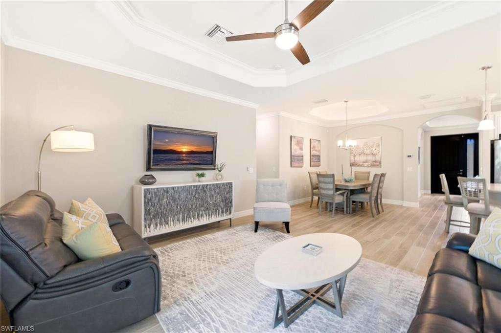 Step into elegance with this stunning three-bedroom plus den, three-bath home with a spacious three-car garage nestled within the prestigious gated community of LaMorada in North Naples. Built in 2018, this exceptional residence sits on one of the most coveted lots in the neighborhood—an expansive 1/3-acre lakeside haven at the end of a private cul-de-sac. From the moment you enter, you'll be captivated. With soaring ceilings and impact-resistant sliders, the grand great room seamlessly extends to an oversized lanai—your sanctuary. Here, a custom-designed pool and spa overlook the lake's tranquil waters, offering breathtaking views and a serene ambiance. Whether you enjoy a morning coffee, an afternoon swim, or an evening under the stars, this outdoor oasis is the perfect setting to embrace Florida's beautiful weather. Sophisticated details abound, including wood-look tile flooring, designer cabinetry, and luxurious countertops. And the best part? This home is being offered fully furnished and turnkey—bring your toothbrush, and you're ready to settle into paradise. LaMorada is more than just a community—it's a lifestyle. Residents enjoy many amenities, including a resort-style lap pool, poolside bar and restaurant, fitness center, pickleball, tennis, bocce, a movie theater, and even a culinary arts studio. With a dedicated activities director curating an exciting social calendar, there's always something to do. The vibrant Founders Square is just moments away, offering premier dining and entertainment options. This home isn't just a place to live—it's a destination. Experience the elegance, tranquility, and luxury of LaMorada.