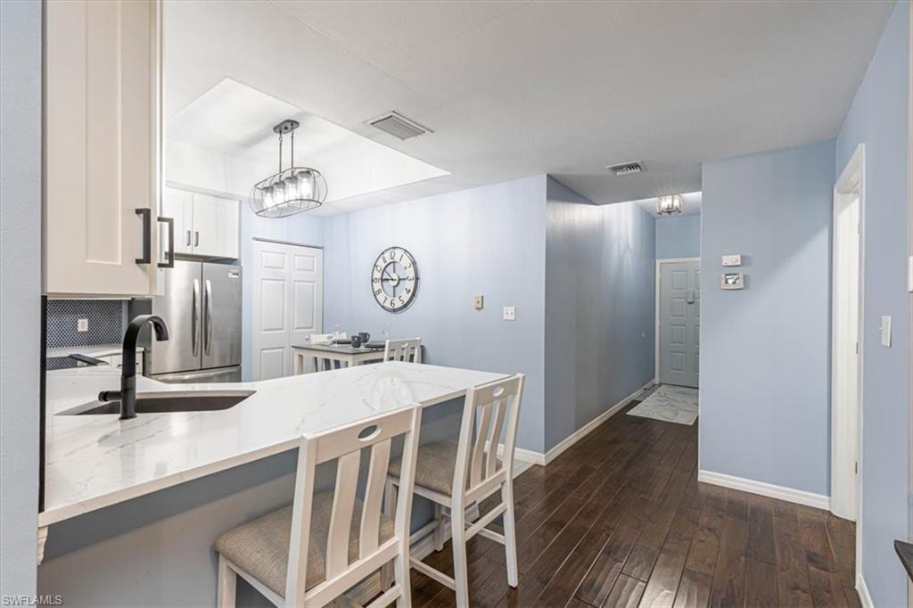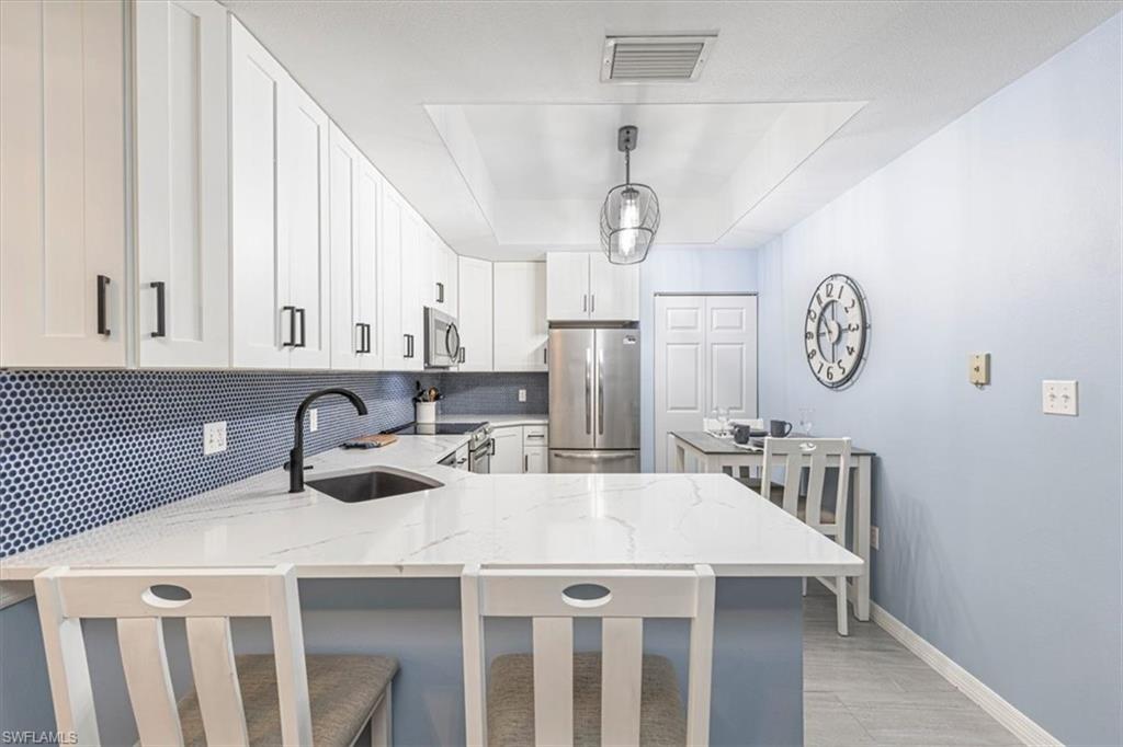 Bright & Airy Top-Floor Corner Condo in Prime Location! Welcome to this stunning 2-bedroom, 2-bathroom condo. Nestled in a highly desirable location, this home offers easy access to shopping, dining, medical facilities, and endless recreational activities Modern kitchen features sleek quartz countertops, stainless steel appliances, and soft-close cabinetry. The open-concept dining and living areas are accentuated by a high tray ceiling. Both bathrooms have been updated with granite countertops and soft-close cabinetry. One of the standout features of this home is the private screened lanai, where you can unwind and take in the breathtaking sunset The community recently renovated (2023) pool, spa, and beautiful new pavers, Outdoor enthusiasts will love the safe sidewalk walking paths and dedicated bike lanes, while golf lovers will appreciate the short drive to renowned golf courses. Pickleball enthusiasts will be thrilled to be near the US National Pickleball Center, featuring an impressive 65 courts. And let’s not forget the beaches! This condo is just a short drive (<7 miles) to some of Florida’s most beautiful white sandy shores, as well as the vibrant energy of downtown’s theatres, fine dining, and shopping districts along 5th Avenue and 3rd Street Location, location, location! Whether you're seeking a primary residence, vacation getaway, or investment property, this contemporary condo delivers the best of Florida living—style, convenience, and an unbeatable setting.