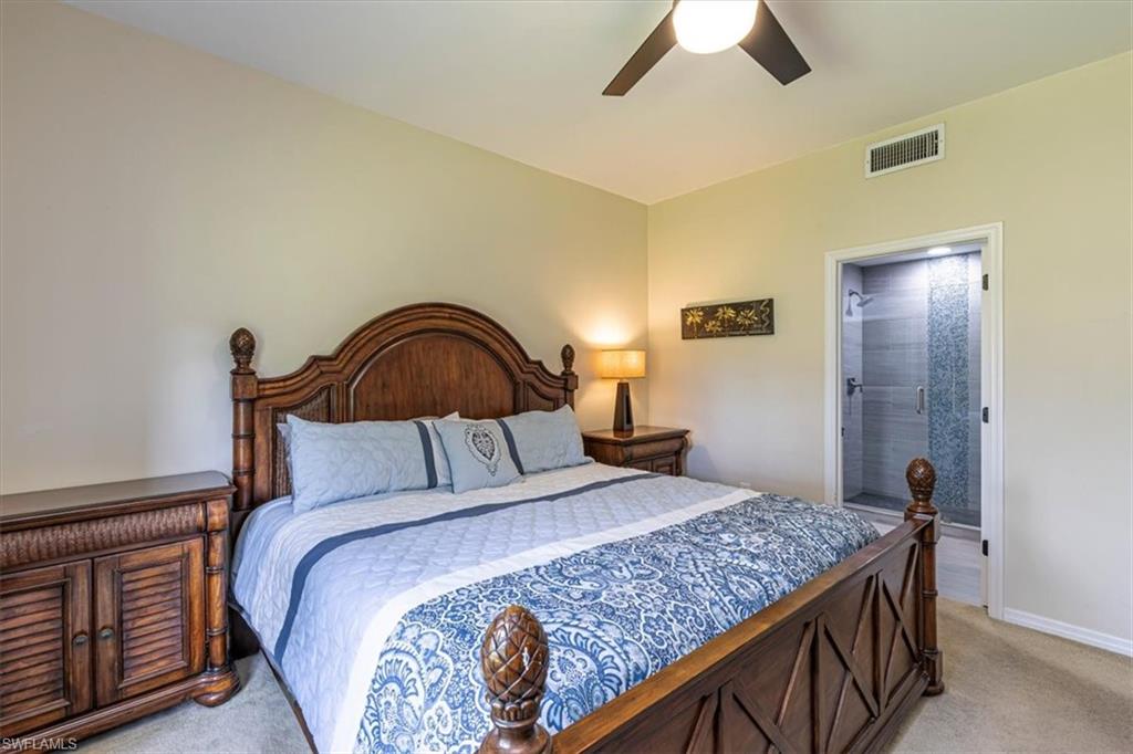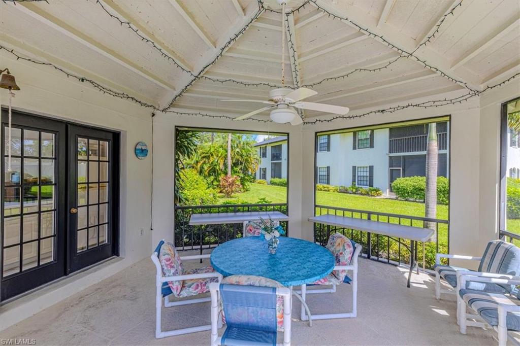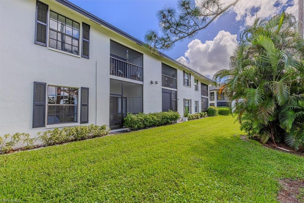 Welcome to this first-floor, pet-friendly THREE bedroom, 2 bath END UNIT featuring impact windows with Hunter Douglas window treatments throughout plus TWO PARKING SPACES one of which is covered! The screened lanai, equipped with an electric hurricane shutter, provides a relaxing retreat and the ideal spot for enjoying morning coffee or evening sunsets. The renovated kitchen boasts a convection oven/microwave oven, ample cabinet space, new lighting, and tile flooring that extends throughout the entire condo. Entertain with ease at the modernized wet bar, complete with a wine cooler, while enjoying the open flow of the living space. The primary suite is a private oasis with an updated bathroom featuring contemporary fixtures. The HOA quarterly fees include flood insurance (this policy satisfies the required coverage for a mortgage) as well as water, sewer, cable and WiFi! Rentals are allowed 2x a year, 30 day minimum. Whether you’re seeking a year-round residence or a seasonal retreat, this condo is move-in ready. Don’t miss this opportunity to own a THREE BEDROOM condo centrally located, only MINUTES TO DOWNTOWN NAPLES with fabulous shopping, restaurants and beaches close-by.