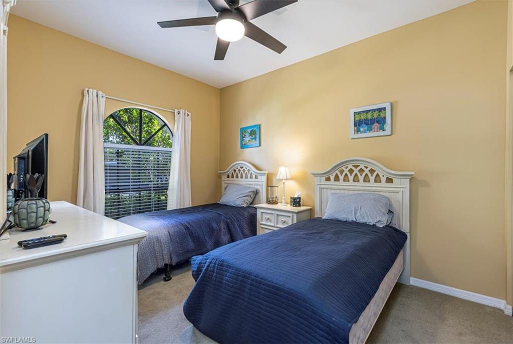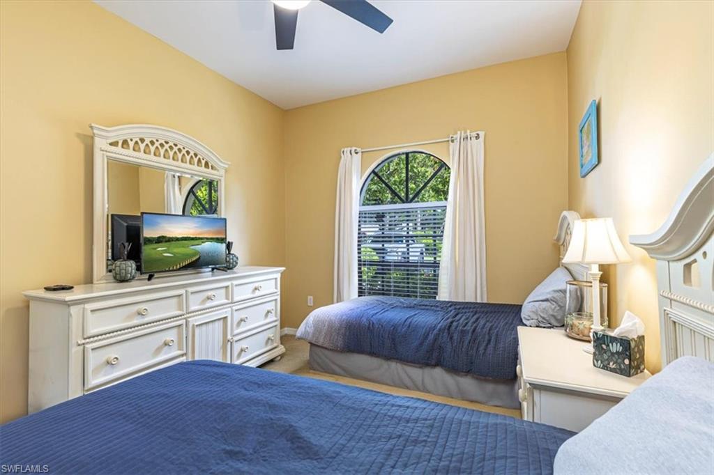 Stunning Lake & Golf Course Views – Spacious 2+Den Condo with Garage Enjoy serene lake and golf course views from this beautifully updated 2-bedroom, plus den and office, condo with an attached garage. Step inside and be welcomed by soaring 20-foot ceilings in the main living area, creating an open and airy ambiance filled with natural light. The remodeled kitchen features gleaming granite countertops and opens to a versatile space perfect for a breakfast nook or cozy den. The open-concept design includes a flexible dining area currently used as a second seating area—showcasing the layout’s incredible adaptability. A convenient half bath and a spacious, covered lanai complete the first floor—ideal for relaxing with a sunset drink while taking in the tranquil views. Upstairs, the generously sized primary suite offers a private retreat with an en-suite bath featuring dual sinks, an enclosed water closet, and a walk-in shower. The guest bedroom is perfect for visitors, complete with its own full bathroom. Additionally, a loft-style office area is currently being used as an extra bedroom and offers plenty of room for two twin beds. Additional highlights include a welcoming front lanai, attached garage, and access to community amenities such as a heated pool and a charming clubhouse. Located just minutes from downtown Naples and the beautiful Gulf beaches—this is Southwest Florida living at its finest!