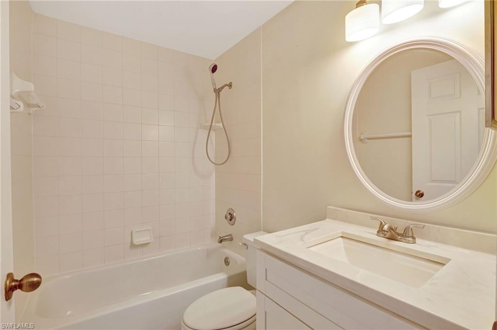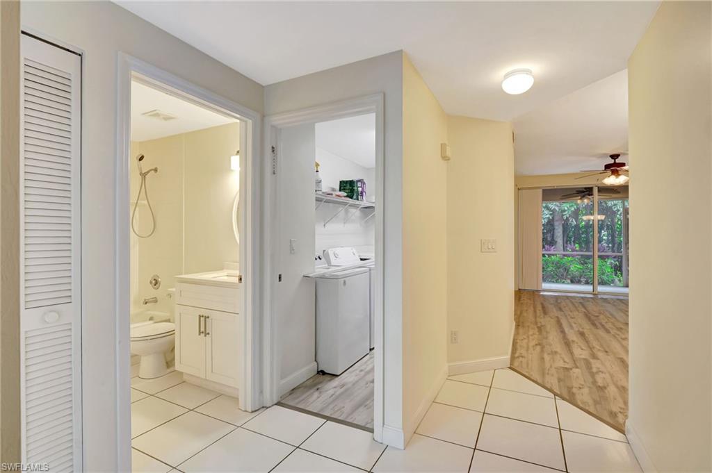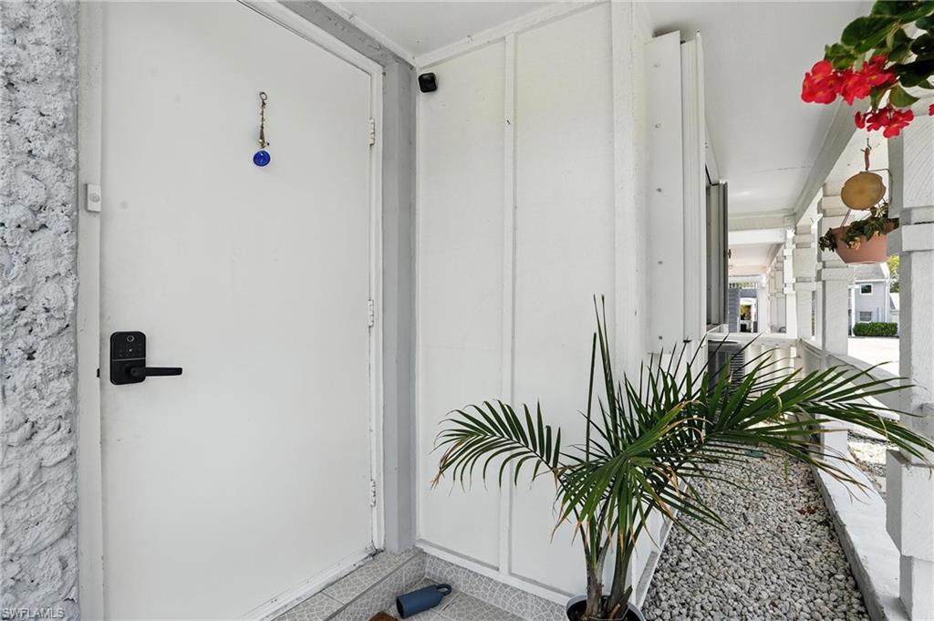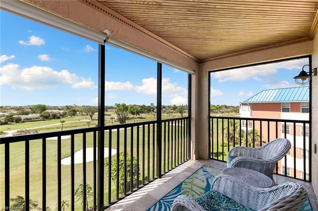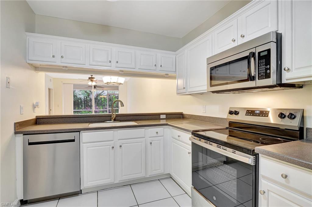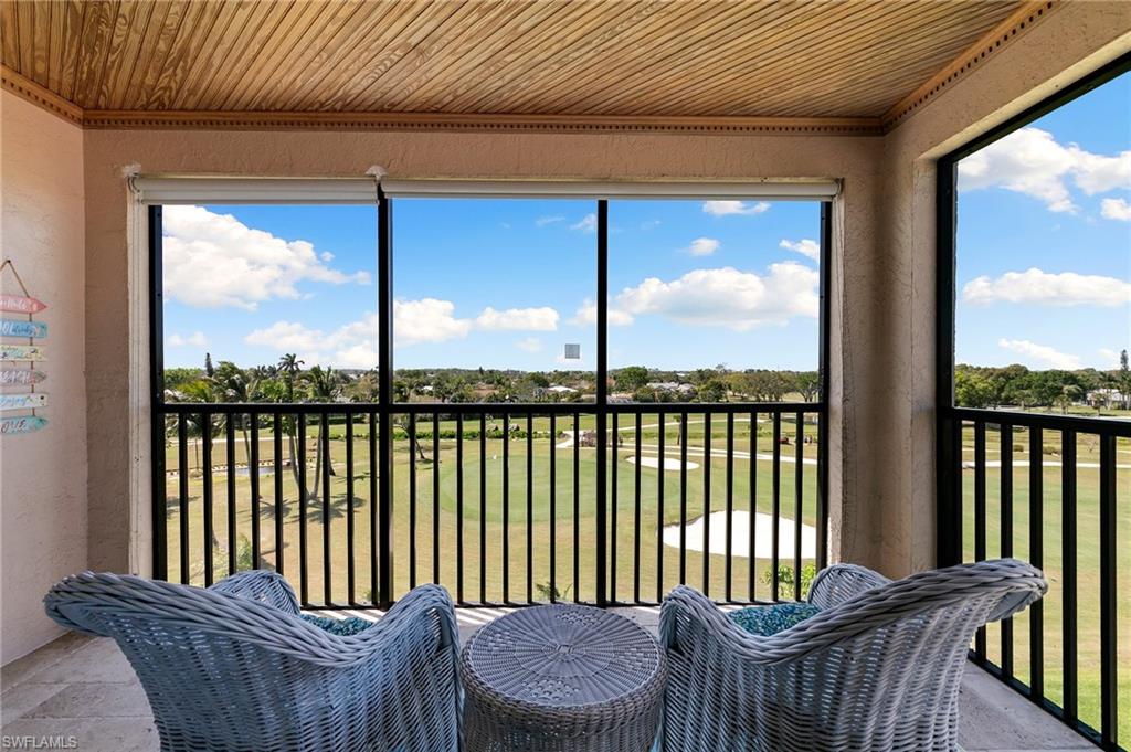 This tastefully updated 2-bedroom, 2-bath condo is located in the desirable Community of Lely and is being offered "Turnkey". The spacious layout features cathedral ceilings, creating an open and airy ambiance filled with natural light. The kitchen has been beautifully updated with modern touches such as quartz and shaker style cabinetry providing both style and functionality. Flooring in main living area has been renovated w/warm neutral tones in low maintenance type material. Step out into the screened lanai offering an expansive and magnificent view of Royal Palm Golf Course and pool area! For added protection and peace of mind, the lanai has a newly installed STORM SMART SCREEN and the windows are all IMPACT GLASS. The laundry area is spacious enough for extra storage and in-unit full size washer and dryer allowing for everyday convenience. Condo is situated in a prime Naples location, offering easy access to everything the area has to offer. You’re just minutes from I-75, the US Open Pickleball Center, downtown 5th Avenue, and Naples magnificent beaches. Enjoy the vibrant downtown scene with its rich culture, diverse restaurants, nightlife, and lots of shopping. Residents can enjoy the beautifully maintained grounds and the community pool and spa that was updated in 2024. Whether you're looking for a full-time residence, vacation getaway, or investment property, this is an exceptional opportunity to experience the Naples lifestyle.