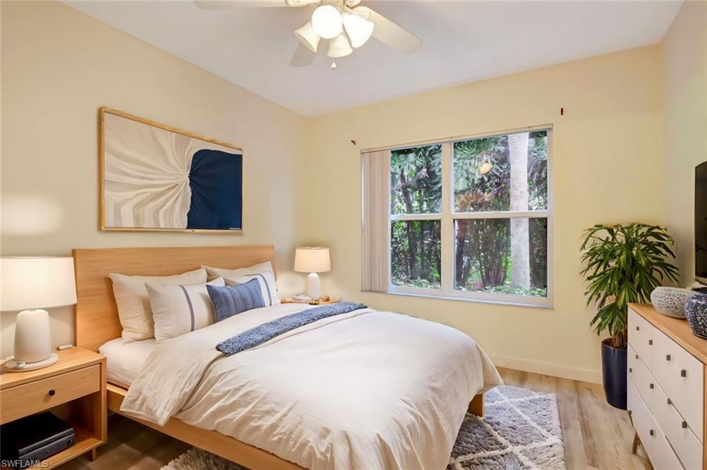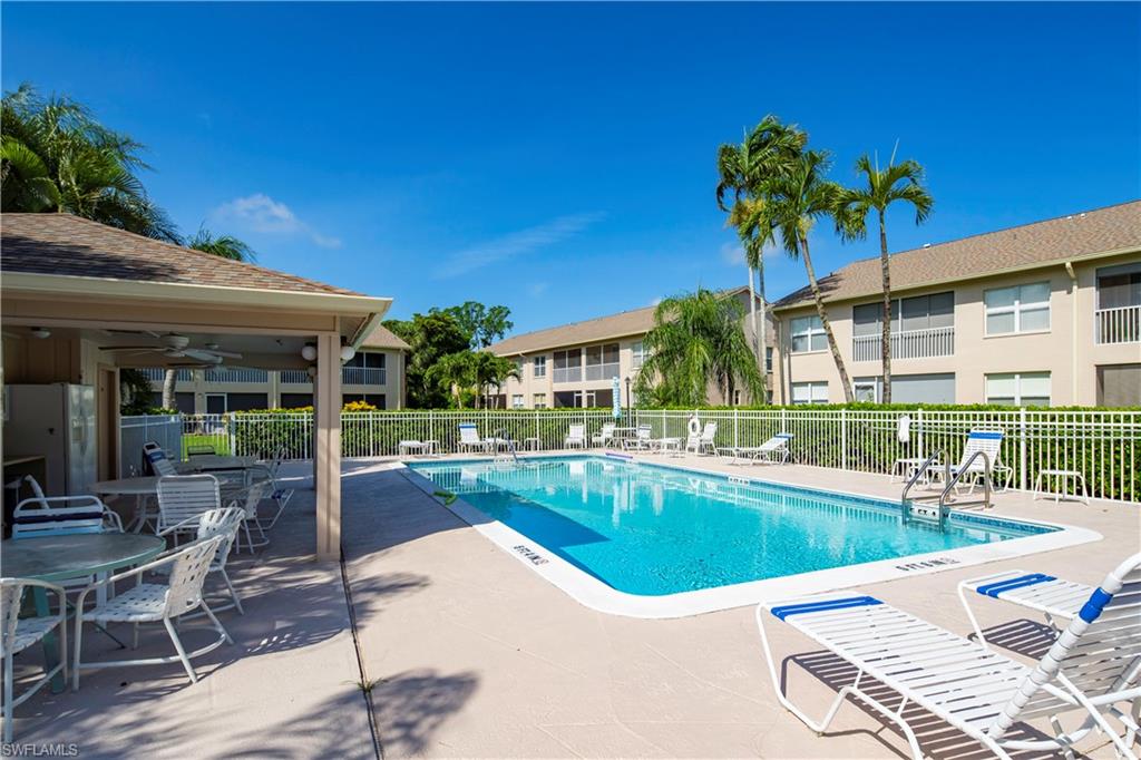 JUST REDUCED!! Main level living at it's finest! Gorgeous updated two bedroom, two bath condominium featuring an open plan and split bedrooms. Some of the fine upgrades include tile and laminate flooring through out, new vanities, custom lighting & fans, eat-in kitchen with stainless appliances, Corian counters and under cabinet lighting. Owners suite with large walk-in closet, new cabinetry, new counters, dual sinks and brand new tile shower. Large screened lanai overlooking private landscaped area and only steps to community pool. Spacious laundry with washer & dryer and storage area. Undercover parking close by the entrance. Bradstrom Village is well maintained by the association including new roofs in 2022, buildings freshly painted, new gutters and the pool resurfaced and sealed recently, Pets & Kids welcome. Set in the LELY resort neighborhood minutes from the Beaches, Golf, Iconic 5th Avenue, Botanical Gardens, Pickleball, Restaurants and Marco Island. Enjoy the carefree Florida lifestyle at it's best! Hurry!