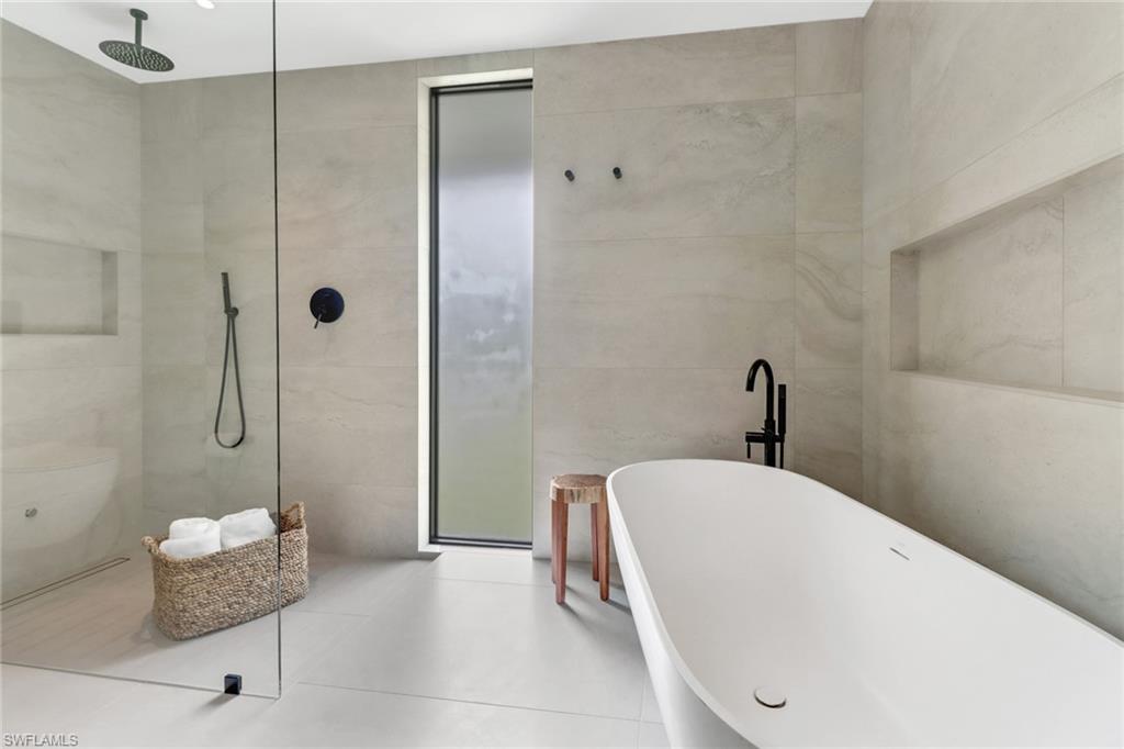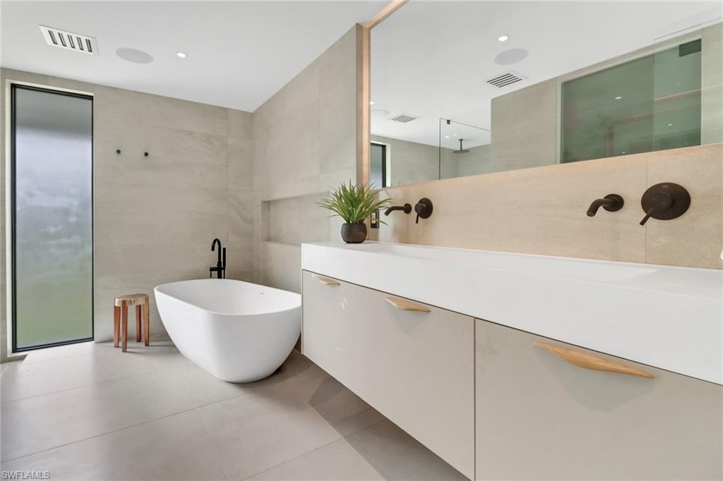 2025 LUXURY NEW CONSTRUCTION ESTATE ON 2.27 ACRES IN NAPLES’ COVETED LIVINGSTON WOODS! A rare opportunity to enjoy the privacy of acreage with no HOA—offering endless possibilities to add additional amenities or living space! Enjoy peaceful, South-facing wooded views surrounded by natural beauty. This contemporary masterpiece features 4,960 sq ft under air, 5 bedrooms + separate den/flex room, 5.5 baths, a 3-car garage, a whole-house reverse osmosis water system, hurricane-impact windows and doors, and a metal roof. Every detail was thoughtfully curated—from the wood-look tile flooring and soaring ceilings with rich custom wood beams to the modern chef’s kitchen featuring quartz waterfall countertops, dual-toned white and walnut cabinetry, stunning wood paneling accents, high-end appliances, and a hidden butler’s pantry. The formal dining area is ideal for entertaining, complete with two beverage coolers and custom built-in counters and shelving, while dual living areas each feature electric fireplaces. Step outside to your private outdoor oasis with an expansive entertainment deck, resort-style pool with tanning shelf and bubbler features, spa, summer kitchen, and covered lounge area with fireplace—perfect for gatherings or relaxed al fresco dining. The luxurious primary suite offers direct access to the pool deck and a spa-like bathroom adorned in marbled tile, complete with dual vanities, an oversized shower, and a freestanding soaking tub. Additional highlights include a private gated entry and electric vehicle charger. Livingston Woods is the perfect setting to enjoy peaceful acreage and convenience—located in an “A-rated” Collier County school district and minutes from Vanderbilt Beach, Waterside Shops, Mercato, and the world-class shopping and dining of 5th Ave and 3rd Street South.