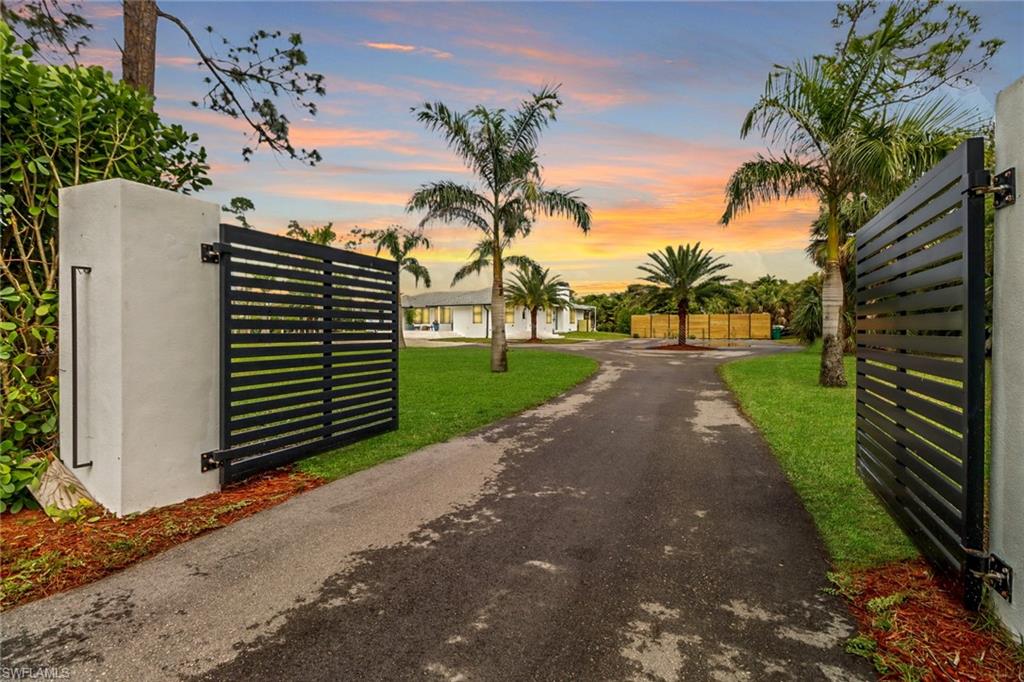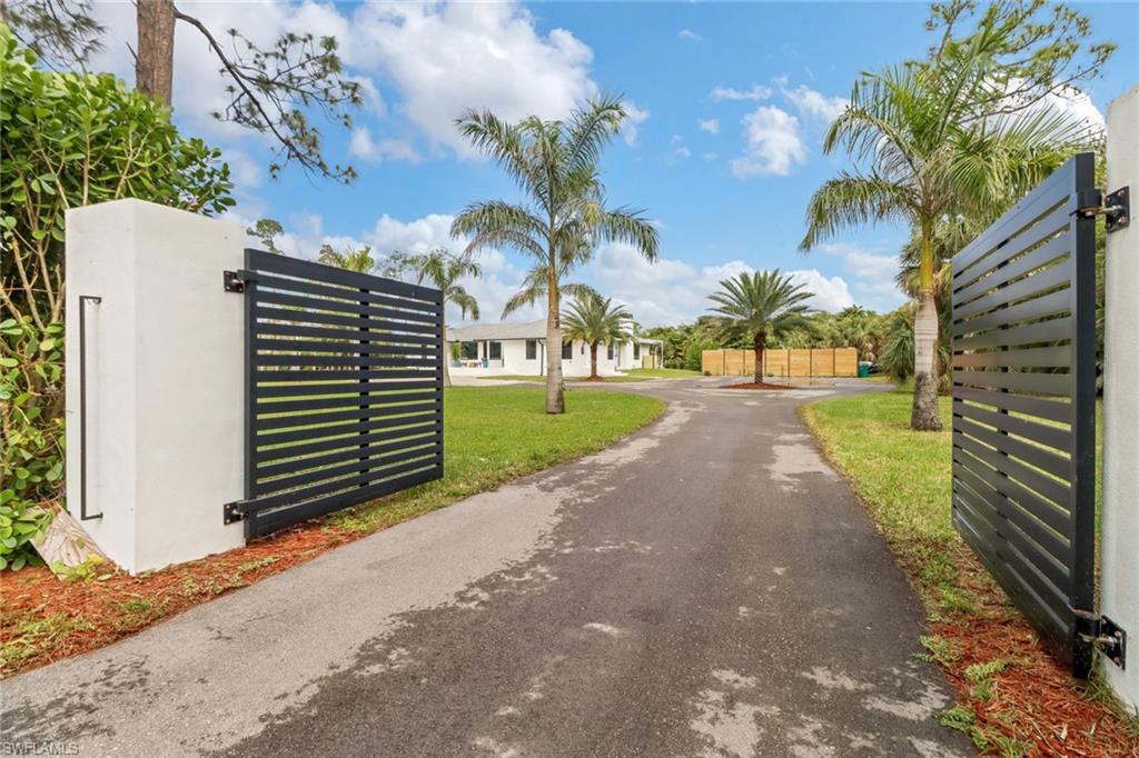 Prime location in Livingston woods with this amazing 2.56 acres high and dry corner lot, which is completely hedged in for privacy. Home was fully renovated in 2023 with modern, high-end finishes. Ditch the HOA fees and enjoy living in your own private gated estate home with 3 bedrooms, 2.5 bathrooms with pool. Stunning finishes await you when entering the white travertine stone steps leading into the home. Large oversized tile floor throughout 24X48 give it a very luxurious and modern touch and serve for easy maintenance. Gourmet kitchen offers an oversized island with waterfall quartz counters with custom lighting throughout the kitchen, one of a kind cabinets with top of the line integrated appliances with a custom paneling and shelving and a hidden wet bar. Enjoy a spa like feel in your spacious main en-suite bathroom with free standing tub, walk-in shower offering a frameless shower glass with multi-heads and double vanity with custom mirrors. For the fashion lovers you can enjoy a fully loaded walk-in closet with custom cabinets with all the bells and whistles. Custom lighting and automation throughout. Major upgrades include hurricane impact windows, foam insulation, doors and heavy duty sliders, 1000 Gallon propane tank with Generac generator, new pool equipment, home is tied in to central water supply for main house and well for the irrigation, newer roof and much much more. The ultimate Florida entertainment space with great overhang space, pool, outdoor kitchen with built in grill and special lighting, sink and ceramic smoker grill. Possibilities are endless with this enormous estate property in the heart of Naples in Livingston woods neighborhood close to shops, restaurants and a short distance to all the beautiful sandy beaches of Naples.