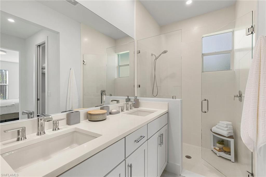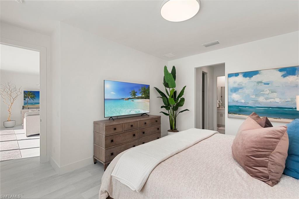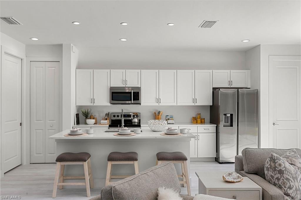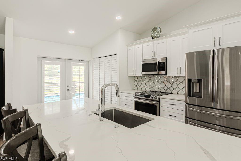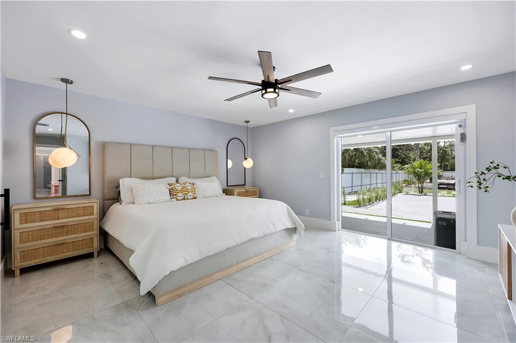 Stunning, TURNKEY, 3 bed/2 bath/2 car garage Logan Woods home has the Country feel, with a touch of elegance. This home was built in 2022 and beautifully detailed with neutral gray vinyl plank flooring and elegantly furnished - ready for you to move right in and start enjoying. Enter the great room, with open concept floor plan and bathe in the Florida sunshine streaming through the wall of sliding glass doors with a view of your patio area and large private back yard with room for a pool, guest house or workshop. Sleek kitchen with white cabinetry, white quartz countertops, S/S appliances and an island with seating, plus pantry closet for additional storage. The living/dining area has plenty of room to spread out and entertain or relax and enjoy! Split bedrooms for privacy, owner's suite has 2 large closets, ensuite bath has tiled walk-in shower with glass door, dual sink vanity with quartz countertops. Two additional large bedrooms with ample closet space share a full bath with tiled tub/shower combo, vanity and large linen closet. Laundry room off of the kitchen for convenience, leads out to the 2-car garage with epoxy flooring. A unique point of the home is the private entry to the rear of the property via the access road which adds convenience, or you can simply drive on the side of the home to access the rear portion of the property to store larger vehicles. This home has it all - peace of mind of newer construction, turnkey furnished, no HOA, plus an amazing location just a short drive to Mercato, Waterside Shops, Vanderbilt Beach, Ritz Carlton Tiburon, easy access to I-75 - don't miss out!