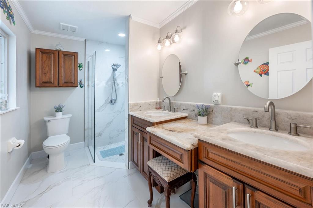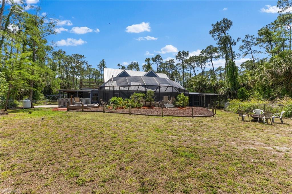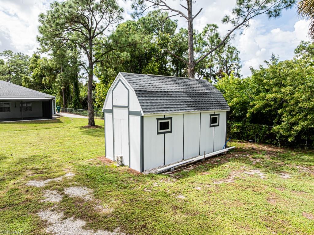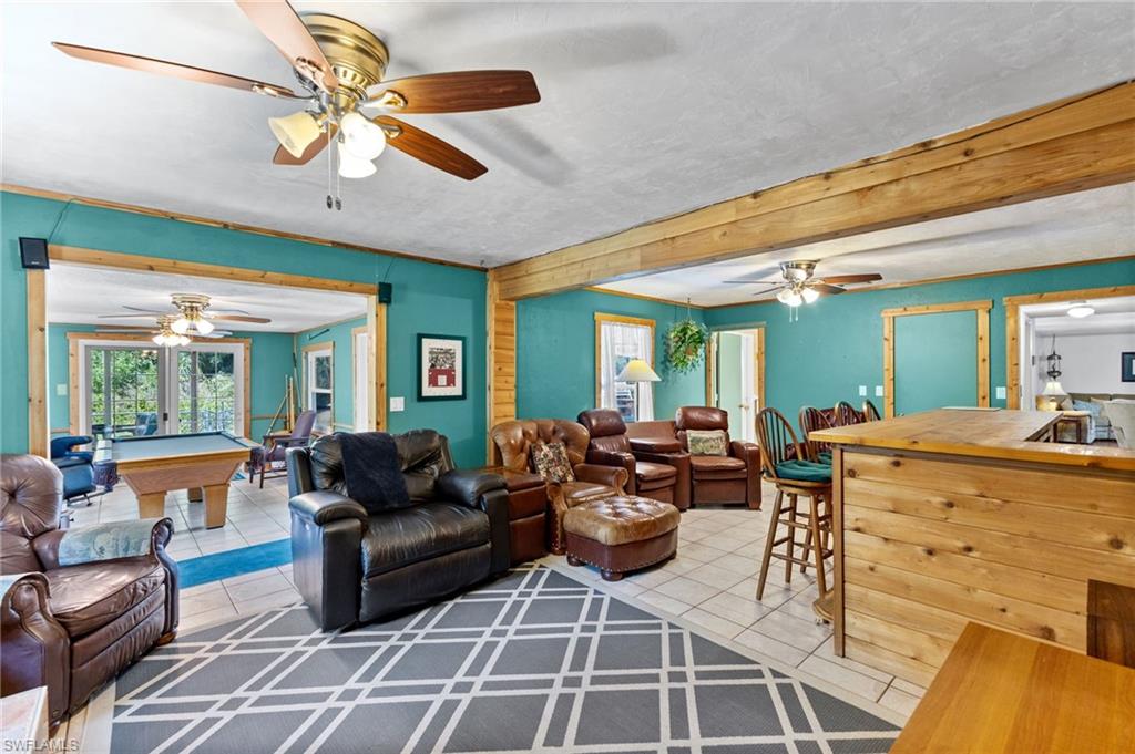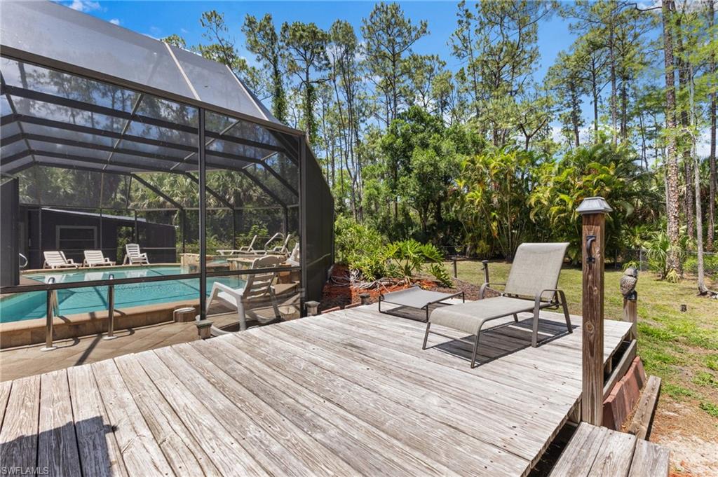 An unbeatable value! Lowest priced 2+ acre pool home in Logan Woods. Experience the timeless charm of this Cape Cod-style pool home, situated on an expansive 2.72-acre lot. Boasting nearly 3,000SF of living space, this home offers 3 bedrooms plus den, 3.5 bathrooms, a large bonus room and a 2-car attached garage. X-FLOOD ZONE does not require flood insurance! The property also features two carports with covered parking space for an additional 3 cars. As you approach the home, a serene driveway lined with mature natural foliage sets the stage for the peaceful lifestyle that awaits. IMPACT WINDOWS AND DOORS AND METAL ROOF for complete peace of mind and storm protection. The oversized bonus room provides plenty of space for entertaining at the cedar wood-planked bar and billiards area or unwind in front of the wood burning fireplace. Soak up the sun around the expansive screened-in outdoor space featuring a large, heated pool and spa, stone fountain feature, brick pavers and ample seating areas. The spacious primary bedroom features an ensuite bath with seating area and office while also offering its own private walk-out balcony. Brazilian cherry wood floors plank the upstairs areas, while tile and wood can be found throughout the remaining parts of the home. Other notable upgrades include a tankless hot water heater, 80-gallon propane tank that heats the spa, 2008 septic tank and drainfield, resilient cedar wood siding, laundry room in the residence, partial fencing around property, multi-zone irrigation system and whole-home water softener system. Enjoy the serene privacy and freedom of your own private land all while still being in the center of town and minutes away from all that Naples has to offer. Located just 10 minutes from Naples' pristine beaches and 15 minutes from downtown, this property is a rare find for those seeking both convenience and tranquility.