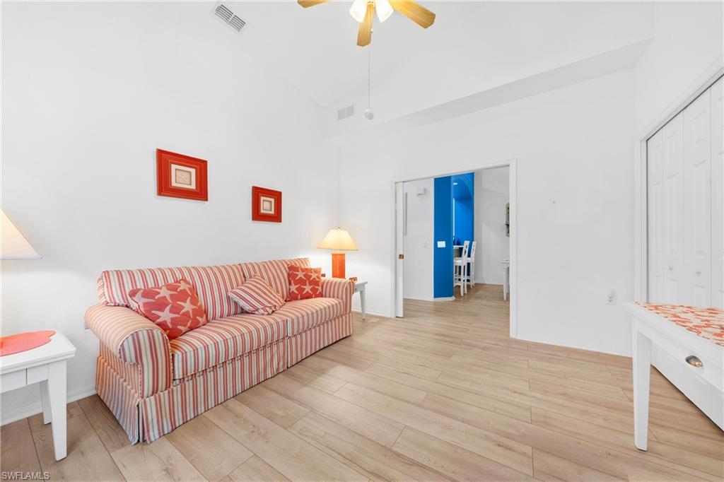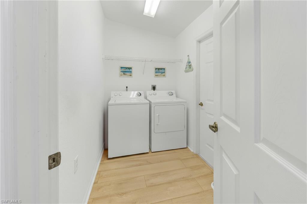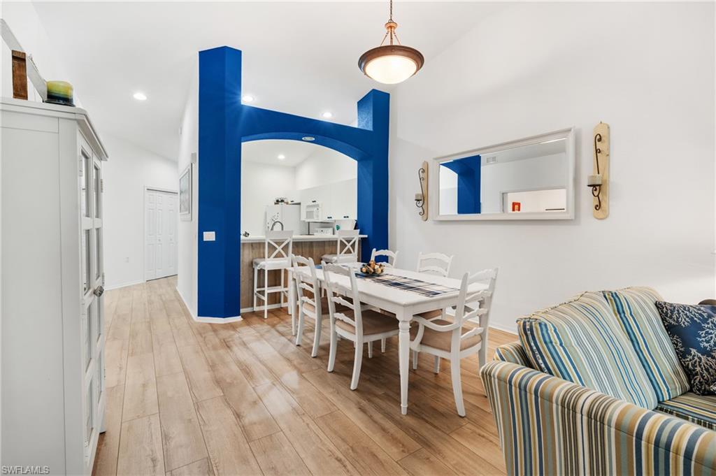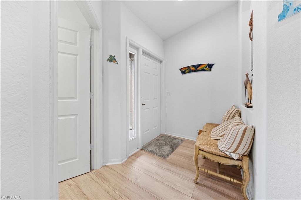 Beautifully updated 3/2 great room Villa home in intimate gated community of only 71 homes. Recent upgrades include all new appliances – sinks and fixtures, all new lighting, switches, electrical outlets, and plates, blinds, freshly painted including garage & garage floor, with new laminate flooring throughout. Bathroom improvements include all new fixtures – bathtub, shower door, wall tile, high gloss, contemporary vanities with quartz countertops, medicine cabinet, and toilet. The extended lanai with Southern exposure on the lake makes this the perfect place to relax and enjoy maintenance, free affordable living. No flood insurance needed and roofs are only 4 years old. Low quarterly HOA fees, only 71 Villas, gated and pet friendly. 6 miles to downtown Naples & close to East Naples pickleball.