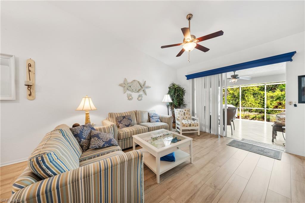 Discover a rare opportunity TURNKEY Updated Villa with 3 Beds, 2 Full Baths, 2 Car-Garage, nearly 1,500 Sq Ft of Living Space, Preserve View, in the highly sought-after gated community of Mandalay at Naples, where LOW HOA fees and an unbeatable Naples location come together. Nestled just off Rattlesnake Hammock Road, this meticulously kept and FULLY FURNISHED attached villa places you moments from Santa Barbara Blvd, US-41, top-rated schools, endless dining and shopping options, and only 8 miles to the iconic Naples Pier. Step inside to an inviting and stylish living space featuring high ceilings, large windows, and elegant luxury plank vinyl flooring. The open-concept layout allows for effortless living and entertaining, with a seamless flow from the kitchen complete with modern appliances, plentiful countertop space, and breakfast bar — into the dining and living areas. Enjoy tranquil wooded views from the enclosed lanai, offering oversized covered space to relax and unwind year-round, plus direct backyard access for added convenience and privacy. The spacious primary suite serves as a private retreat, featuring large walk-in closets, dual vanities, and a luxurious walk-in shower. Two additional generously sized bedrooms offer flexibility for guests, a home office, or hobbies, and share a well-appointed full bathroom with tub/shower combo and ample storage. Rest easy with major updates already completed, including a roof install in 2020, AC from 2017, and hot water heater from 2020. Additional highlights include an attached two-car garage, in-residence laundry, and abundant storage throughout for peace of mind. Mandalay residents enjoy a sparkling community pool, spa, and cabana all within a private, gated setting and close to Naples’ best beaches, dining, entertainment, and recreation. This special villa offers comfort, convenience, and peace of mind in one of the area’s most desirable locations, an exceptional opportunity that won’t last.