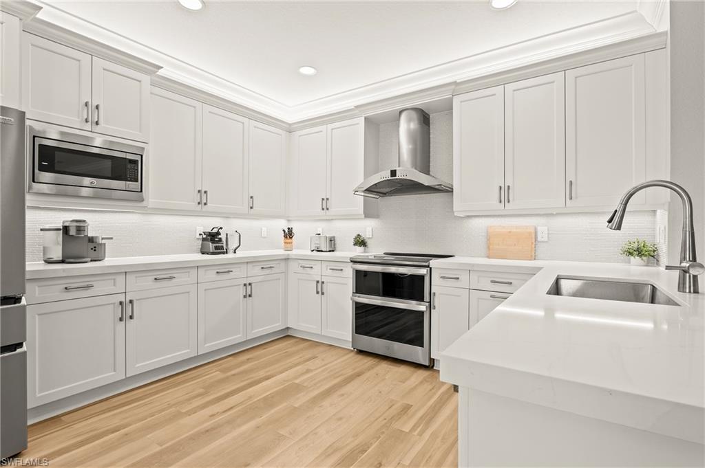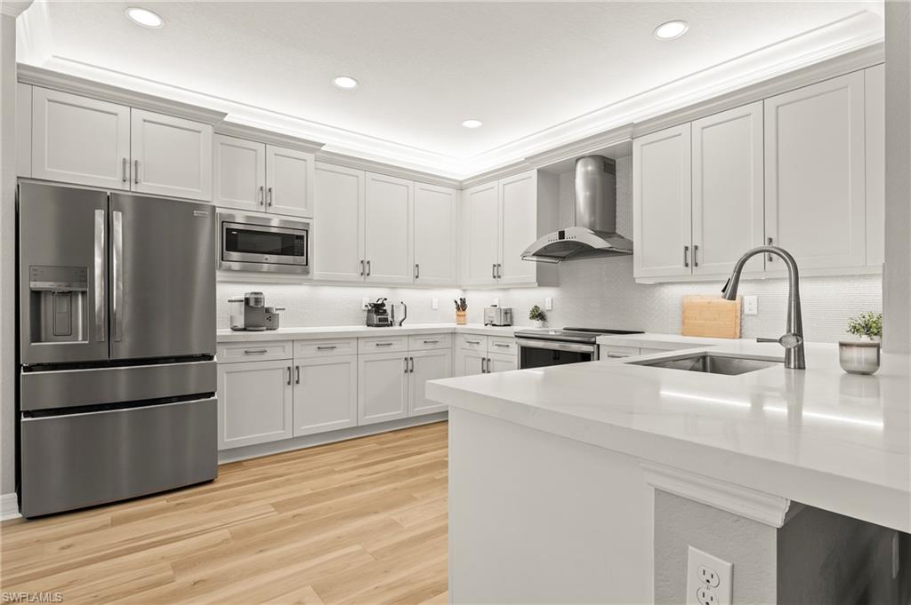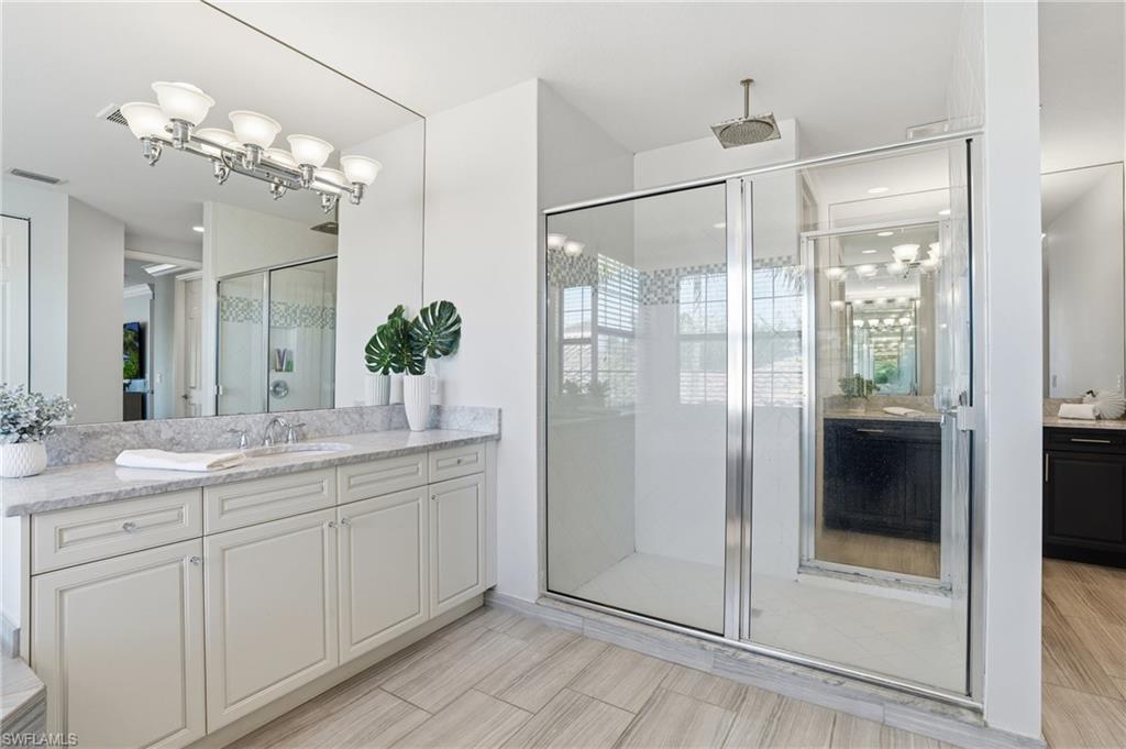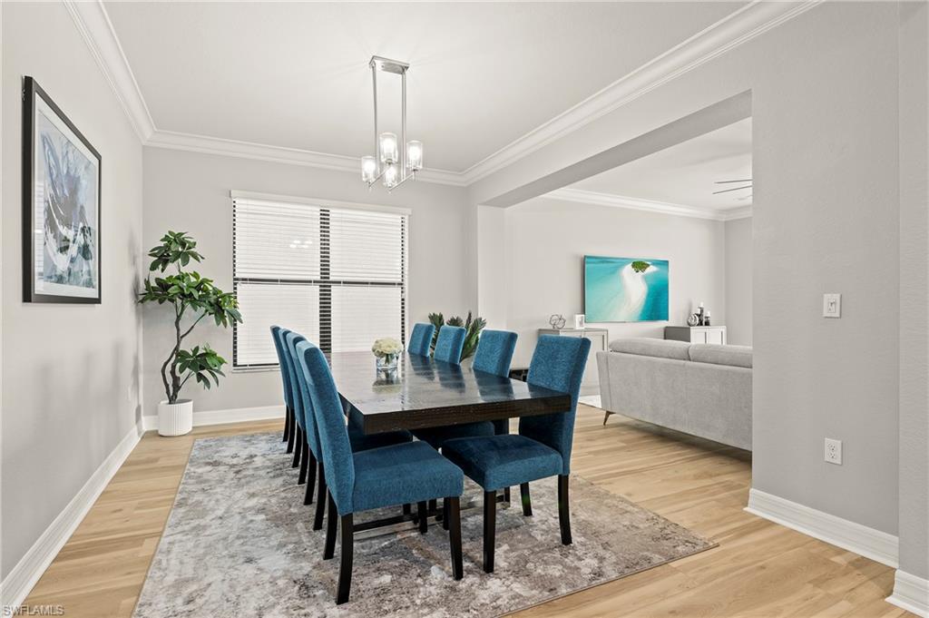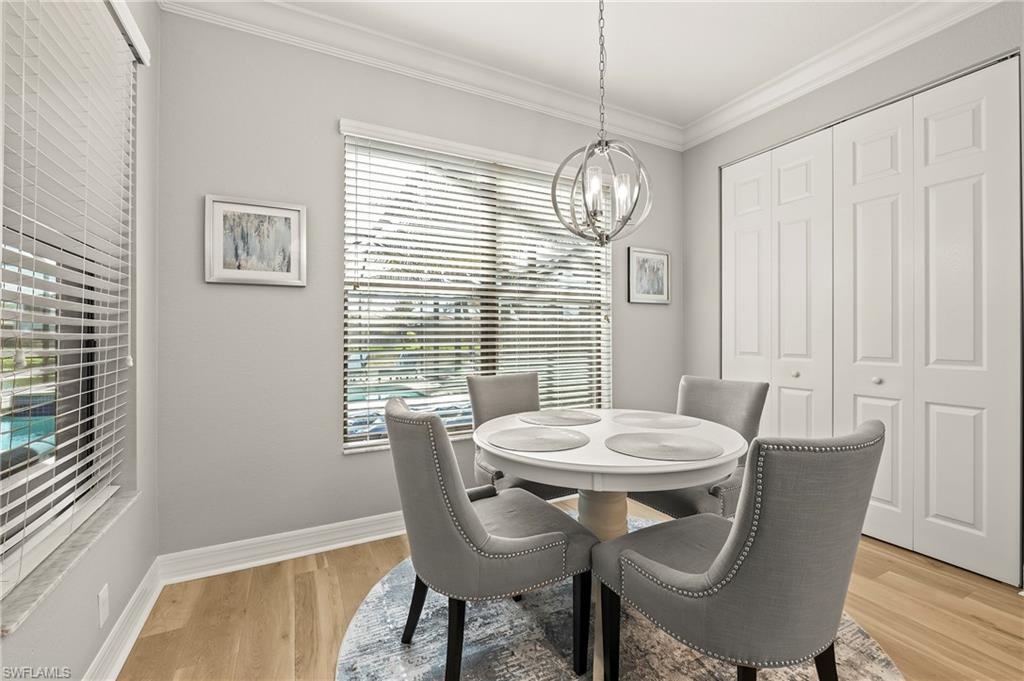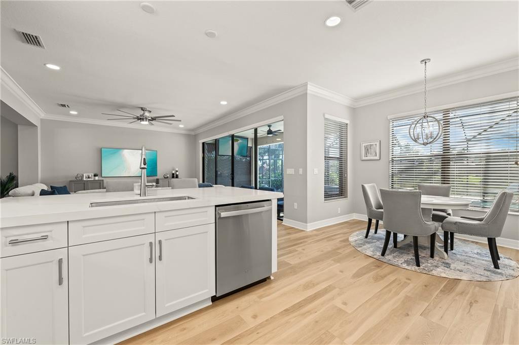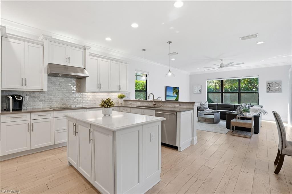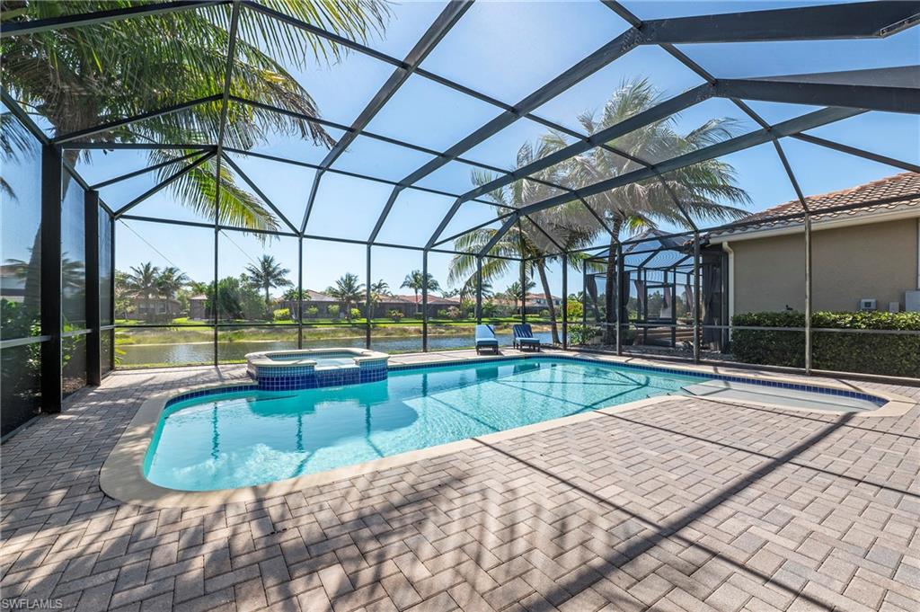 Welcome to this stunning 2,200+ sq. ft. waterfront residence in Marbella Isles, one of North Naples' most coveted gated communities. This one story residence features a beautiful saltwater pool and picturesque water views, creating the perfect setting for outdoor relaxation and entertaining. Inside, the gourmet kitchen is a chef’s dream with quartz countertops, newer stainless steel appliances, and custom lighting, ideal for both everyday meals and hosting guests. The open-concept living and dining room areas are thoughtfully designed with elegant woodwork and designer finishes, creating a space that is both sophisticated and inviting. The home offers four spacious bedrooms with numerous updates including new tile in all the bedrooms, a luxurious primary suite with custom walk-in closets and en-suite bath with dual vanities, a soaking tub, and elegant lighting. The new irrigation system and custom extended driveway and walkway add convenience and curb appeal. Located just minutes from upscale restaurants, shopping, and the stunning beaches of Naples, this home provides easy access to all the best the area has to offer. Marbella Isles itself is a resort-style community with amenities like a clubhouse, resort-style pool & spa, children’s waterpark & playground, tennis, pickleball, an indoor basketball court, fitness center, and game room. With two gated entrances, this community offers the perfect balance of privacy, convenience, and luxury living.