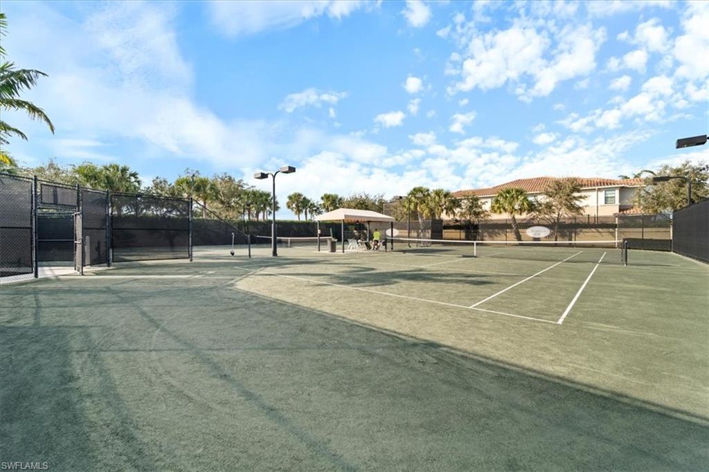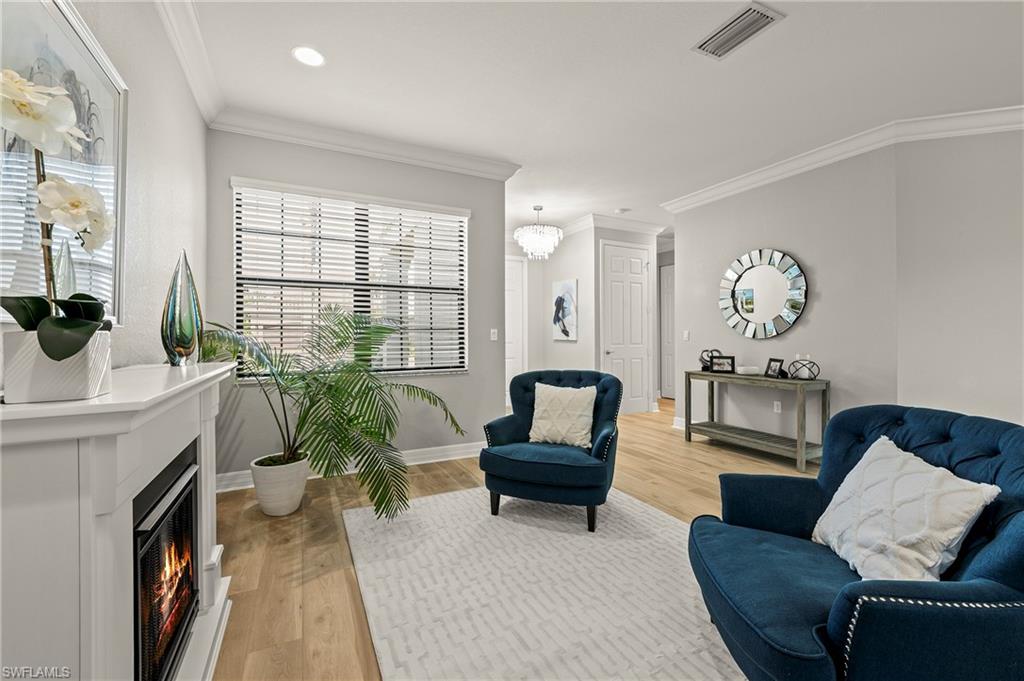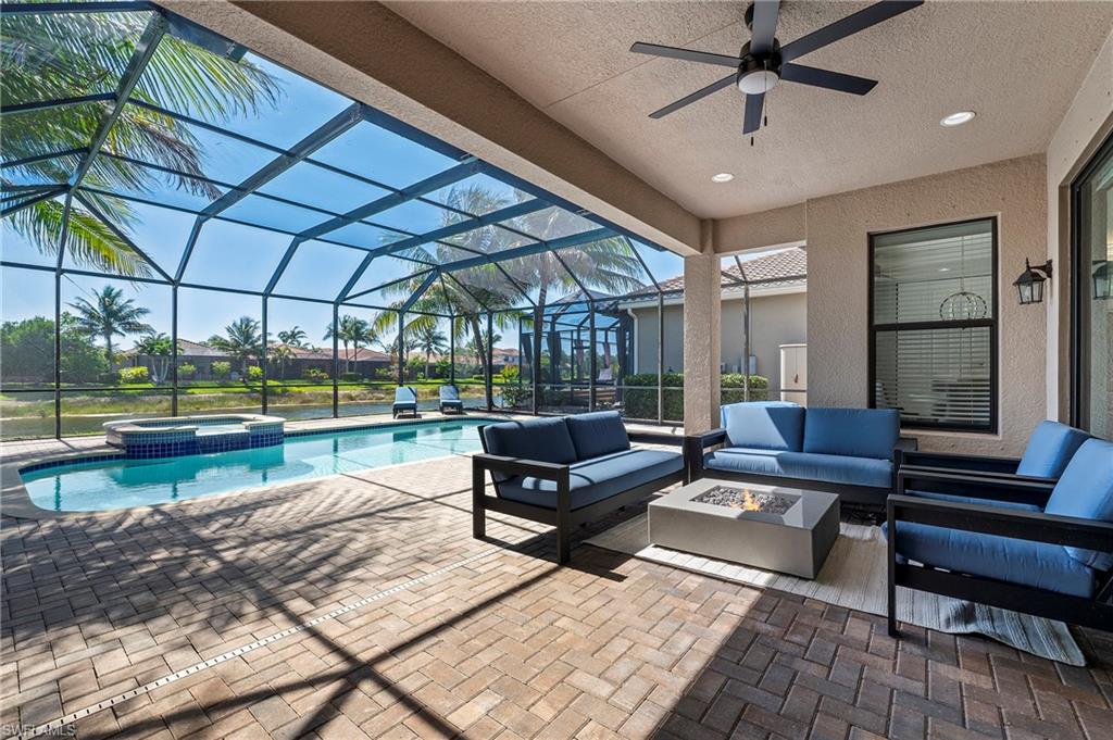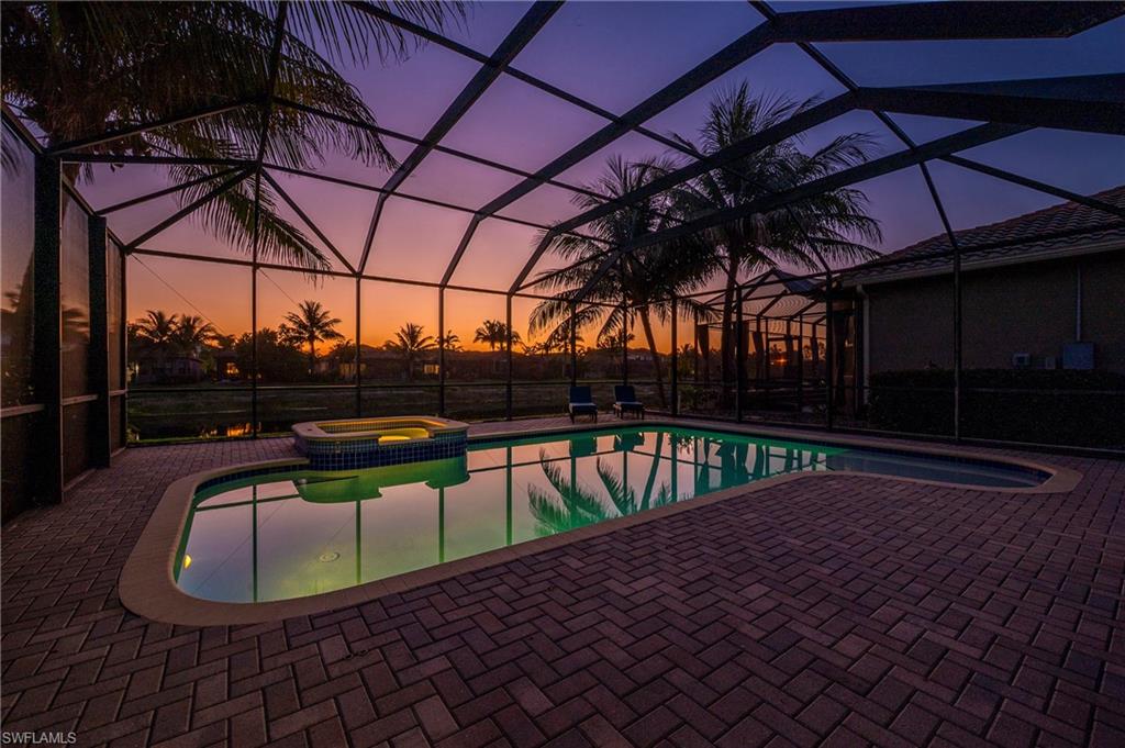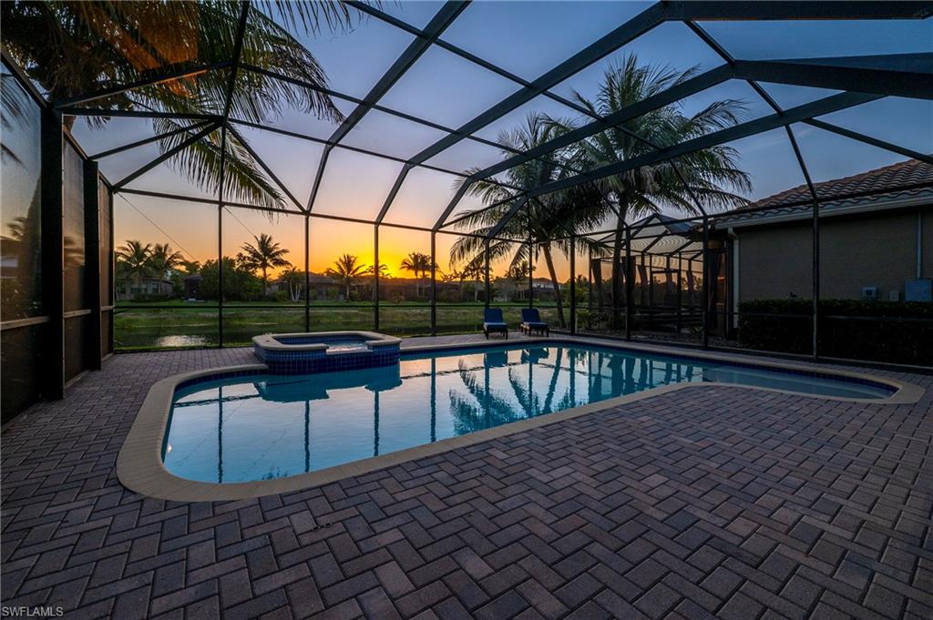 Nestled in the heart of Naples, this enchanting 3 bedroom's plus den, 2.5 bathrooms lakefront property offers a symphony of luxurious features and community amenities that promise an unparalleled lifestyle experience. As you step inside, the home reveals a harmonious blend of custom upgrades, including a cozy fireplace, bespoke bookcase in the den, and custom designed closets, with elegant wood and tile floors beneath coffered ceilings adorned with crown molding. The light dances through hurricane windows, showcasing breathtaking lake views and beckoning you to the extended screened enclosure, perfect for evenings of serene reflection. Culinary enthusiasts will revel in the large open kitchen with granite counter tops, new state-of-the-art Bosch appliances that grace the kitchen, and brand new washer and dryer, and Air conditioner 1 year new. While the community provides endless opportunities for recreation and relaxation. Whether it's enjoying a game of tennis, pickle ball, or bocce, indulging in the community pool, spa, or hot tub, or engaging in a spirited match on the volleyball court, there's something for everyone. The vibrant community ceaselessly buzzes with life, offering a clubhouse, business center, and access to scenic bike and jog paths. Families and social butterflies alike will appreciate the proximity to shopping, restaurants, schools, a nearby hospital, and a county park, all just a leisurely stroll away. Enjoy peace and tranquility, making this residence not just a house, but a dream home awaiting its next chapter.