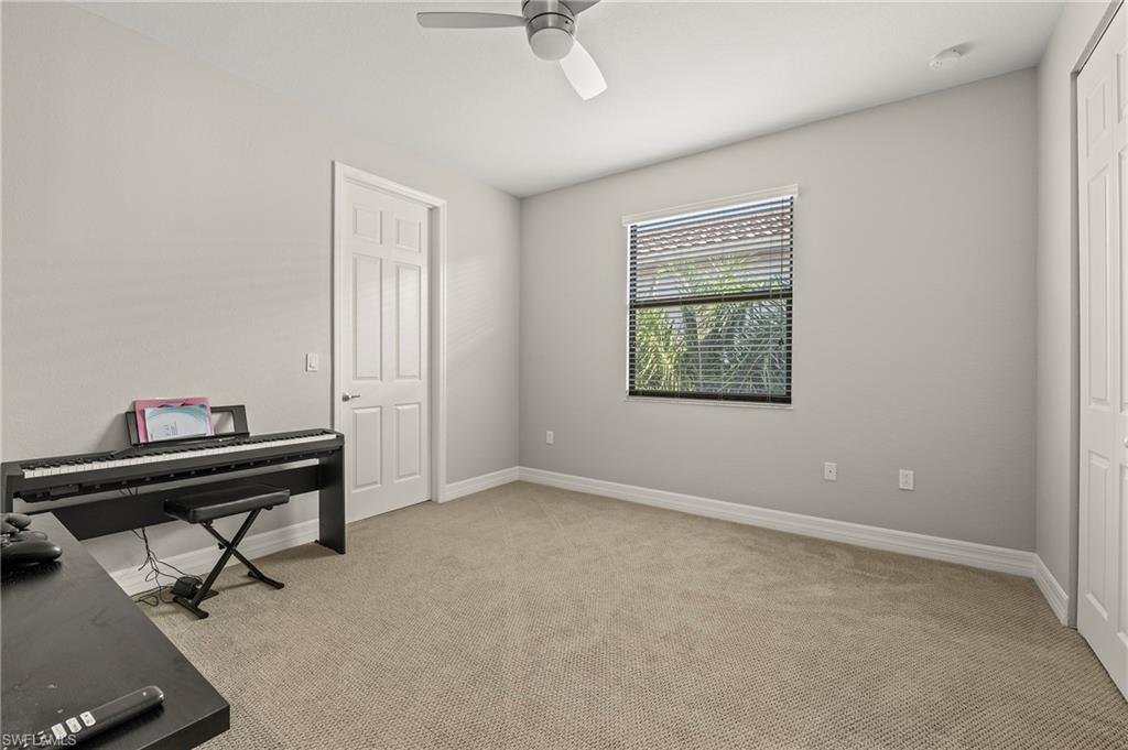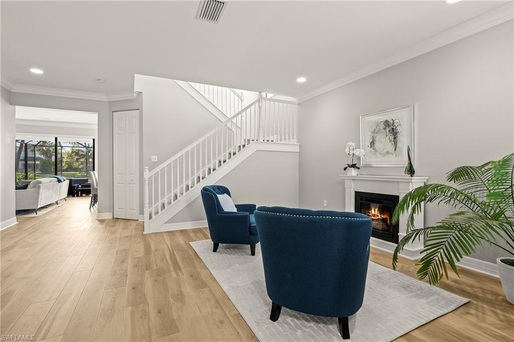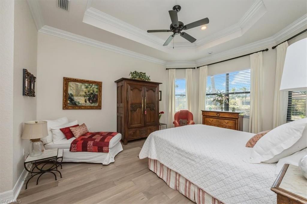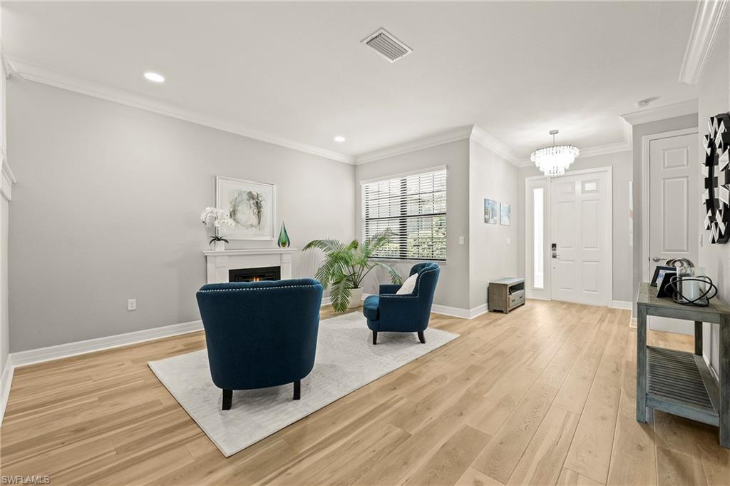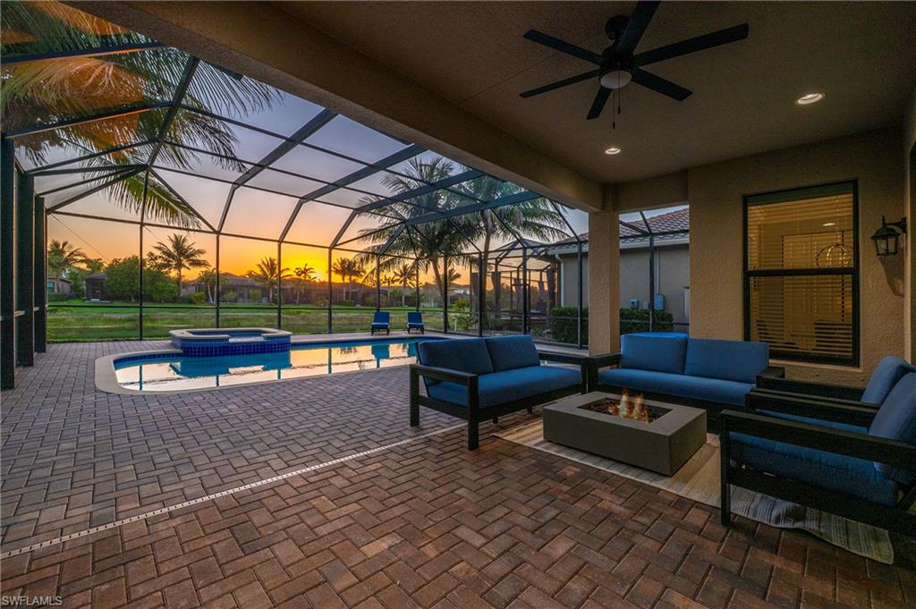 Nestled in the heart of Naples, this enchanting 3 bedroom's plus den, 2.5 bathrooms lakefront property offers a symphony of luxurious features and community amenities that promise an unparalleled lifestyle experience. As you step inside, the home reveals a harmonious blend of custom upgrades, including a cozy fireplace, bespoke bookcase in the den, and custom designed closets, with elegant wood and tile floors beneath coffered ceilings adorned with crown molding. The light dances through hurricane windows, showcasing breathtaking lake views and beckoning you to the extended screened enclosure, perfect for evenings of serene reflection. Culinary enthusiasts will revel in the large open kitchen with granite counter tops, new state-of-the-art Bosch appliances that grace the kitchen, and brand new washer and dryer, and Air conditioner 1 year new. While the community provides endless opportunities for recreation and relaxation. Whether it's enjoying a game of tennis, pickle ball, or bocce, indulging in the community pool, spa, or hot tub, or engaging in a spirited match on the volleyball court, there's something for everyone. The vibrant community ceaselessly buzzes with life, offering a clubhouse, business center, and access to scenic bike and jog paths. Families and social butterflies alike will appreciate the proximity to shopping, restaurants, schools, a nearby hospital, and a county park, all just a leisurely stroll away. Enjoy peace and tranquility, making this residence not just a house, but a dream home awaiting its next chapter.