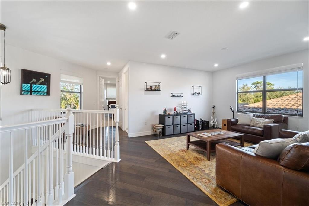 Welcome to this beautifully updated 5 bedroom + den, 4 bathroom home in the heart of Naples! This home has been meticulously maintained and just updated with new COREtec flooring, quartz countertops, new kitchen appliances, washer & dryer, and garage floor epoxy. The open layout is perfect for everyday and entertaining with the beautifully upgraded kitchen, featuring custom white cabinetry, quartz countertops, stainless steel appliances, and ample storage. Upstairs is a huge master bedroom & bathroom with his and hers walk-in closets, 3 more spacious bedrooms, and an open loft/game room area with endless possibilities. The extended lanai and oversized pool are a perfect place to relax and enjoy beautiful sunsets year-round with open, west-facing lake views. Impact windows & doors provide added storm protection, energy efficiency, and security for peace of mind. Marbella Isles is an active, resort-style community offering the ultimate in luxury and lifestyle. Designed for comfort and entertainment, the community’s expansive clubhouse features top-tier amenities including a resort-style pool, private cabanas, a kids’ splash park, and a playground. Stay active with a state-of-the-art fitness center, game room, indoor basketball court, 3 tennis courts, and 4 pickleball courts. For more relaxed fun, enjoy a friendly game of bocce with neighbors in this lively, social setting. Ideally situated with two convenient entrances, Marbella Isles is only 10 minutes from Naples’ beautiful beaches, Mercato, & Waterside Shops, 15 minutes to downtown, and 25 minutes to the airport. Families will value the location within a top-rated school district, along with nearby prestigious private schools like the Community School of Naples and First Baptist Academy.