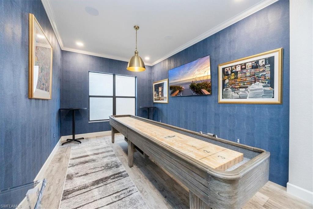 Professionally curated by Design West with over $300,000 in upgrades, this home showcases quality and style with custom coffered ceilings, elegant lighting, and premium finishes throughout. The open-concept layout blends everyday comfort with an entertainer’s flair featuring a custom media wall, and a built-in bar with wine cooler. There is meticulous attention to detail in the wall coverings, blinds and draperies which highlight the natural light and space. The kitchen offers quartz countertops, high-end appliances, and custom cabinetry with built-in pantry, and roll out drawers for smart, stylish storage. Every detail speaks to high end craftsmanship, from extensive woodwork around windows, doors, and mirrors, deep baseboards, crown molding, and intricate custom ceiling woodwork that elevate the entire space. All closets have been custom built as well. The owner’s suite is a true retreat with its custom ceiling and wall treatments. There are two fully built-out closets and a spacious spa-inspired bathroom that invites relaxation. Each guest suite enjoys its own private bath and wing for privacy. Throughout the home, custom window treatments—including silhouette shades and elegant drapery add warmth and privacy. All the bedrooms have remote powered blackout blinds. Step outside to a serene oasis with lush landscaping, a saltwater pool with a tranquil fountain, and a spacious covered lanai—perfect for year-round dining and entertaining. A whole house generator with 500 gallon propane tank, impact-rated windows and StormSmart hurricane screens provide peace of mind, while the epoxy-coated garage floor with built-in storage completes this one-of-a-kind offering. Marbella Isles offers world-class amenities and is conveniently located in the heart of Naples, in a great school district, just minutes from beaches, shopping, and downtown. Amenities include active pickleball & tennis programs, bocce courts, a resort-style pool, separate pool & play area for kids, world-class clubhouse with a fitness center, half-court basketball, & kitchen and games rooms. The community is meticulously maintained, has a solid HOA board and strong cash reserves.