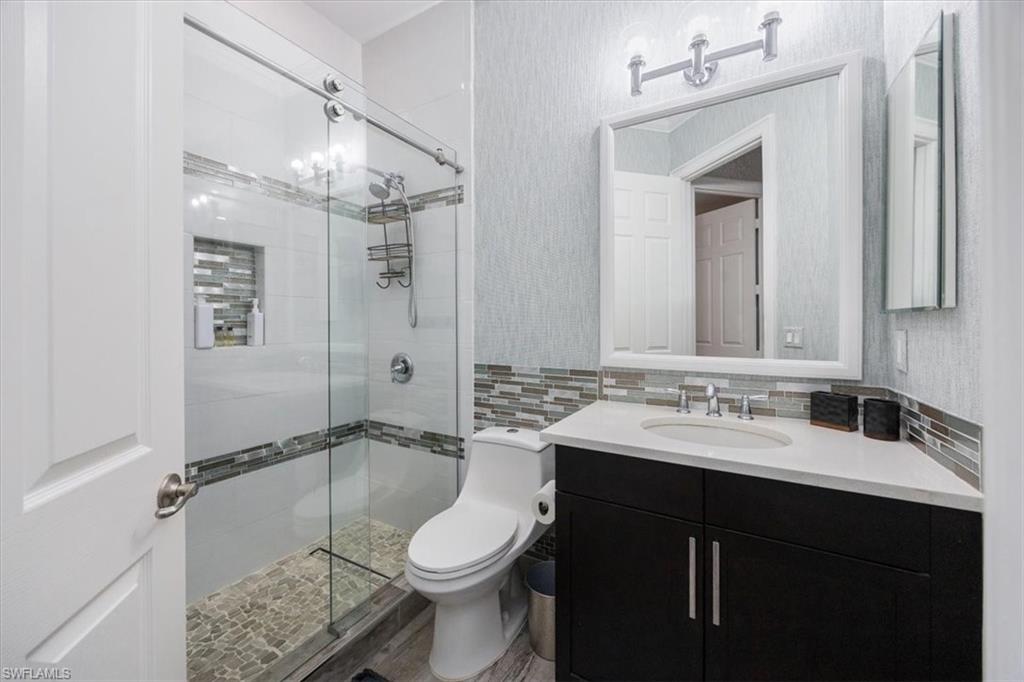 Welcome to this beautifully updated 5 bedroom + den, 4 bathroom home in the heart of Naples! This home has been meticulously maintained and just updated with new COREtec flooring, quartz countertops, new kitchen appliances, washer & dryer, and garage floor epoxy. The open layout is perfect for everyday and entertaining with the beautifully upgraded kitchen, featuring custom white cabinetry, quartz countertops, stainless steel appliances, and ample storage. Upstairs is a huge master bedroom & bathroom with his and hers walk-in closets, 3 more spacious bedrooms, and an open loft/game room area with endless possibilities. The extended lanai and oversized pool are a perfect place to relax and enjoy beautiful sunsets year-round with open, west-facing lake views. Impact windows & doors provide added storm protection, energy efficiency, and security for peace of mind. Marbella Isles is an active, resort-style community offering the ultimate in luxury and lifestyle. Designed for comfort and entertainment, the community’s expansive clubhouse features top-tier amenities including a resort-style pool, private cabanas, a kids’ splash park, and a playground. Stay active with a state-of-the-art fitness center, game room, indoor basketball court, 3 tennis courts, and 4 pickleball courts. For more relaxed fun, enjoy a friendly game of bocce with neighbors in this lively, social setting. Ideally situated with two convenient entrances, Marbella Isles is only 10 minutes from Naples’ beautiful beaches, Mercato, & Waterside Shops, 15 minutes to downtown, and 25 minutes to the airport. Families will value the location within a top-rated school district, along with nearby prestigious private schools like the Community School of Naples and First Baptist Academy.