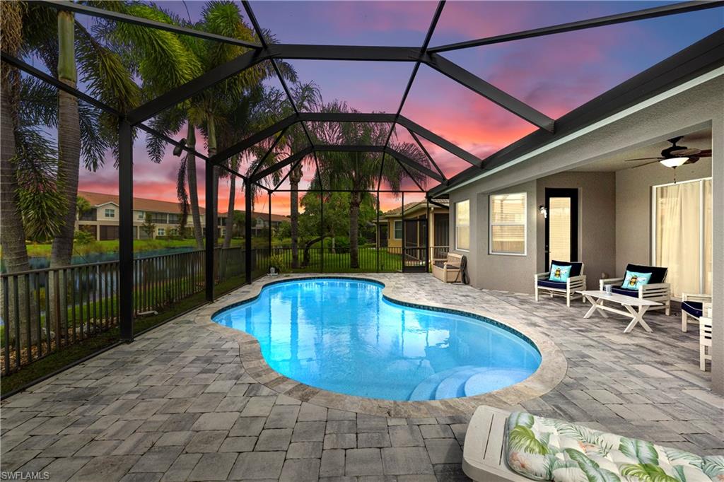 Stunning Lakefront Pool Home in Marbella Lakes – Fully Renovated with Over $250K in Designer Finishes and Upgrades! This 4bed + loft/den, 4-bath home offers Luxury living with Wide-Plank LVP flooring, 14’ tray ceilings, and Crown molding throughout. The open-concept Chef’s kitchen features White Shaker High End Wood cabinets, level 5 Quartz countertops, Monogram appliances, walk-in pantry, and a massive 8’ Island. The spacious Primary suite boasts Lake views, a coffered ceiling, Dual Quartz vanities, a soaking tub, and a Glass barn-door shower. Enjoy the Newly resurfaced heated Saltwater Pool, new paver deck, and screened lanai—ideal for entertaining. Garage features custom SwissTrax flooring. Whole-home Water Filtration System included. Marbella Lakes offers low HOA fees with access to world-class amenities including a resort-style pool, modern fitness center, tennis and pickleball courts, basketball, billiards, a children’s play area, and an active social calendar. Don't miss this rare opportunity to own a meticulously renovated lakefront pool home in central Naples—minutes from beautiful beaches, shopping, dining, and top-rated schools.