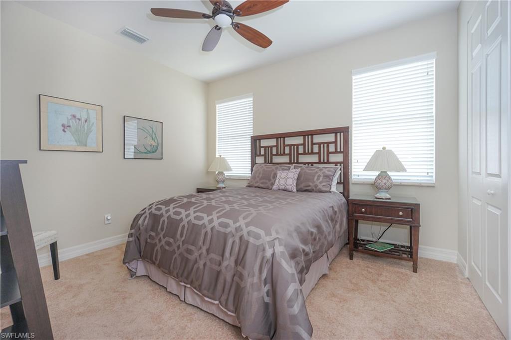 Welcome to the pinnacle of resort-style living in the prestigious Marbella Lakes community, just minutes from the heart of Naples. This exquisite end-unit Napoli model offers 3 bedrooms plus a den, 2 ½ baths, 2,288 square feet, and a 2-car garage. Thoughtfully updated, every surface has been refreshed, including painted walls, trim, ceilings, doors, and garage. The ceramic floors, including the lanai, have been professionally cleaned and sealed, and the lanai itself pressure-washed for a fresh start. Closets have been upgraded with custom California Closet Systems, while new lighting fixtures elevate the foyer, dining area, bathrooms, and stairway, complemented by energy-efficient LED recessed lighting throughout. The kitchen and baths have been beautifully transformed with freshly painted white cabinetry, new quartz countertops, marble backsplash, sinks, and faucets. The primary bath features an updated shower (2024), resurfaced bathtubs, and three new toilets (2023). New Hunter Douglas soft shades replace blinds in every room, and all bedrooms and the den feature new ceiling fans. New High-quality carpet graces the stairs, bedrooms, and den, while the laundry room has been enhanced with cabinets in place of wire shelving. Major updates include a new AC system with humidity control, a full suite of new appliances (2023–2024), and accordion hurricane shutters for nearly every window and lanai. Beyond the home, Marbella Lakes offers an unparalleled lifestyle. The 8,000 sq. ft. lifestyle center includes an indoor sports complex, fitness center, billiards and game room, social hall, and resort-style pool and spa with an oversized sundeck. Residents also enjoy tennis and pickleball courts, along with a full-time social director who organizes events and activities year-round. With onsite management, vibrant community life, and top-notch amenities, Marbella Lakes is the perfect place to call home—whether for families, couples, or singles seeking an active Naples lifestyle.