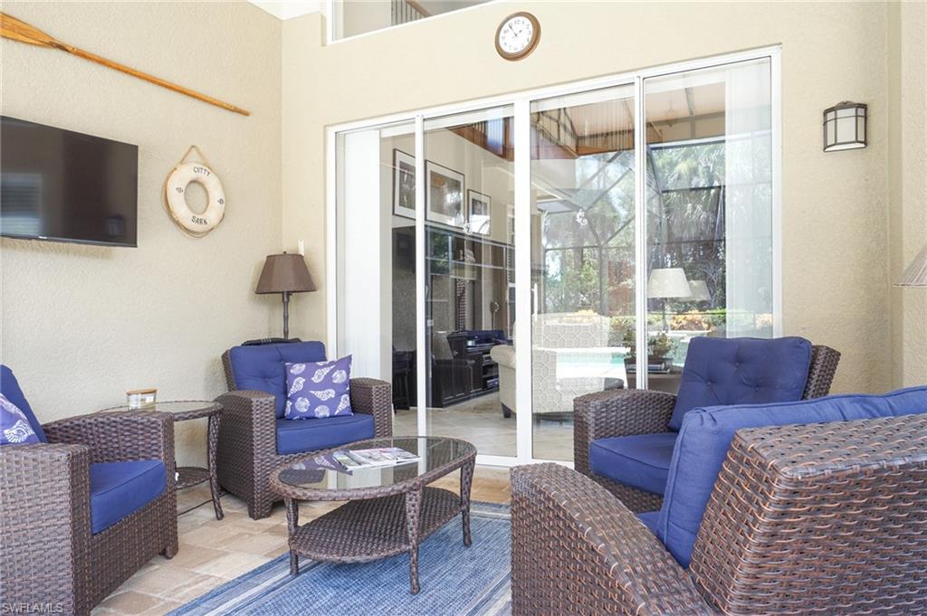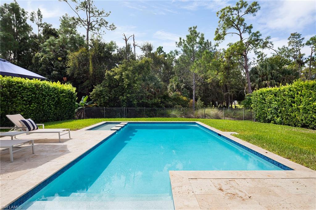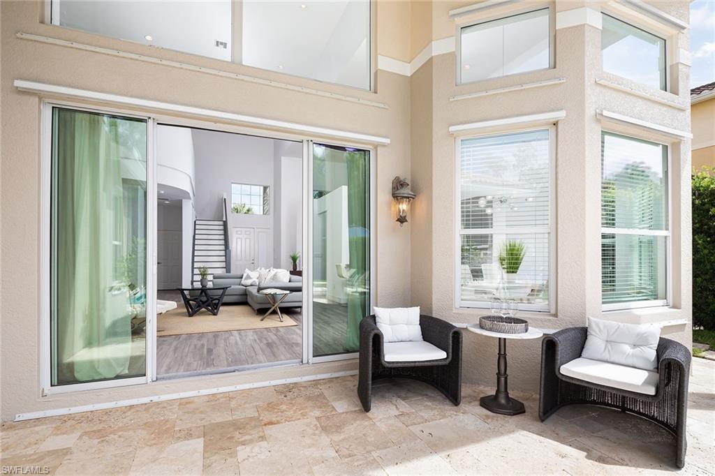 Beautifully renovated, newer construction home in a prime Naples location, nestled within the highly sought-after gated community of Marbella Lakes. Offering 3 bedrooms plus a den and 3 full bathrooms, this stunning residence is filled with natural light and features an open-concept layout with wide plank, wood-look tile flooring and plantation shutters. As you step through the front door, you’re greeted by a dramatic entryway featuring soaring volume ceilings, custom wood beams, and elegant pendant lighting. Beautifully furnished and decorated, this home exudes style and comfort (installed June 2025 — available separately and negotiable*). The beautiful, modernized kitchen features white quartz countertops, marble backsplash, white cabinetry, a wine fridge, and two adjacent dining areas — ideal for both casual meals and entertaining. The spacious split floor plan provides privacy, with the primary suite set apart from the guest bedrooms. The luxurious primary suite features private access to the pool deck, dual walk-in closets with custom built-ins, and a large ensuite bath with dual vanities, a glass-enclosed shower, and a separate soaking tub. Step outside into your private backyard oasis, complete with a resort-style pool with a waterfall feature, stone paver decking, a covered seating area with electric screens for either open air or screened relaxation, and a side yard that’s ideal for pets or outdoor activities. Marbella Lakes is a gated, guarded community offering low HOA fees and exceptional amenities, including a resort-style pool and spa, fitness center, tennis and pickleball courts, indoor and outdoor basketball, billiards, a children’s play area, and an active social calendar. All just minutes from Naples’ famous beaches, world-class dining and shopping on 5th Avenue, and located within an “A-rated” Collier County school district.