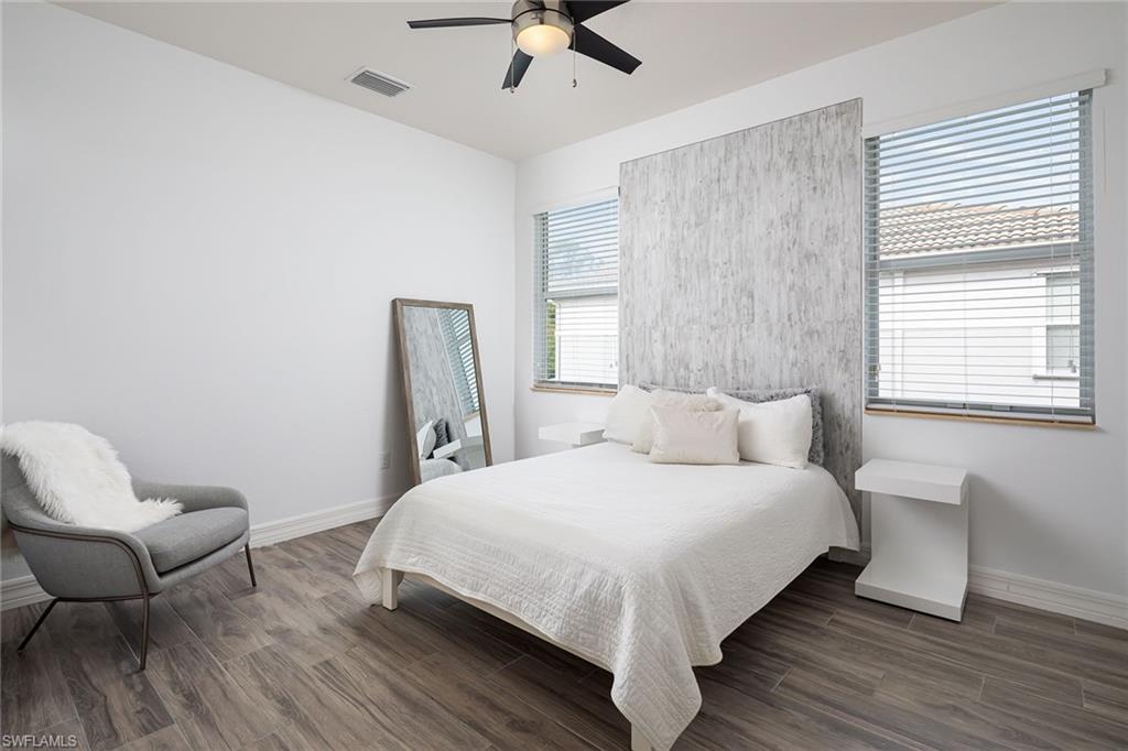 Welcome to this beautifully crafted 5-bedroom + den, 4-bath home in one of Naples’ most sought-after communities, Marbella Lakes. Built in 2010, this residence blends thoughtful design, modern updates, and everyday livability in an inviting, family-friendly layout. Step inside to a bright and open main level, refreshed with wide-plank wood-look Cortec flooring that carries throughout the living spaces with both style and durability in mind. The first floor offers exceptional flexibility, featuring a private guest bedroom, full bathroom, and a dedicated home office—perfect for visitors, remote work, or additional living space. At the heart of the home, the kitchen is a standout transformation fueling both form and function. Anchored by a stunning quartz waterfall island, elevated by sleek shaker cabinetry, and re-envisioned for effortless flow, this space is designed for gathering, entertaining, and day-to-day enjoyment. Upstairs, rich Brazilian walnut flooring leads to a thoughtfully designed second floor where the primary suite and additional bedrooms are all together—an ideal arrangement for keeping loved ones close. The oversized primary retreat offers a serene escape with generous proportions and a layout that inspires comfort and relaxation. Outside of the home, Marbella Lakes delivers a true lifestyle community, complete with resort-style amenities, social spaces, and access to top-rated schools, making it the perfect place to truly live, play, and thrive.