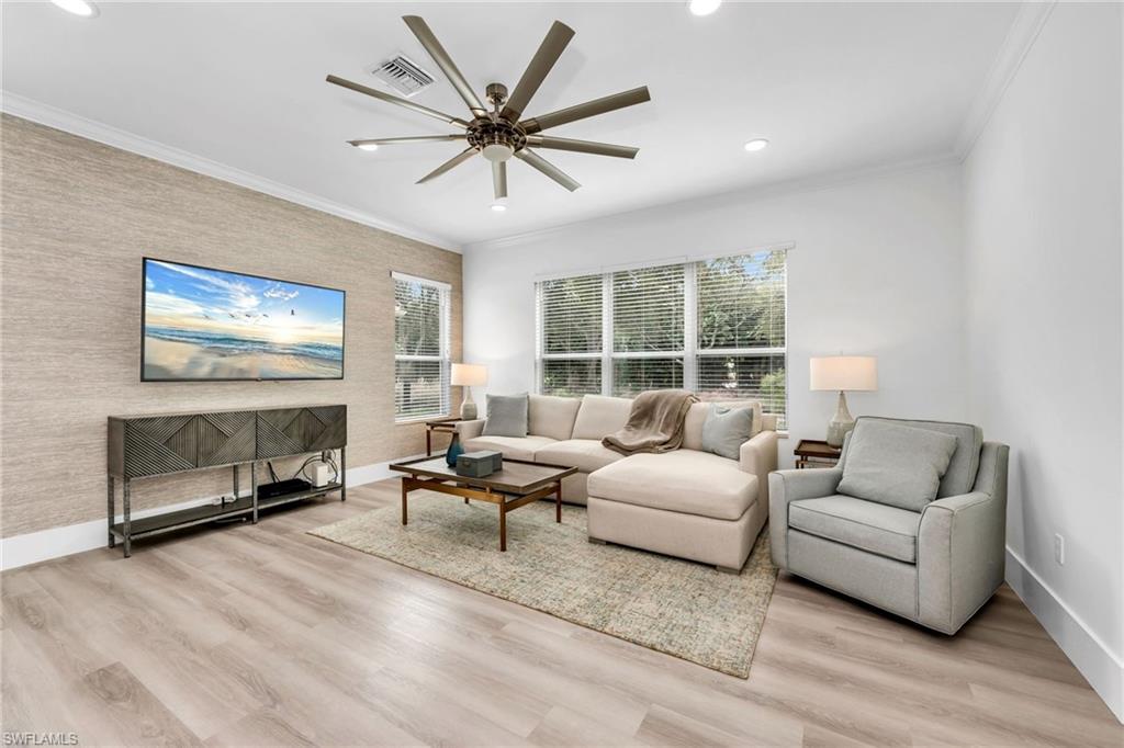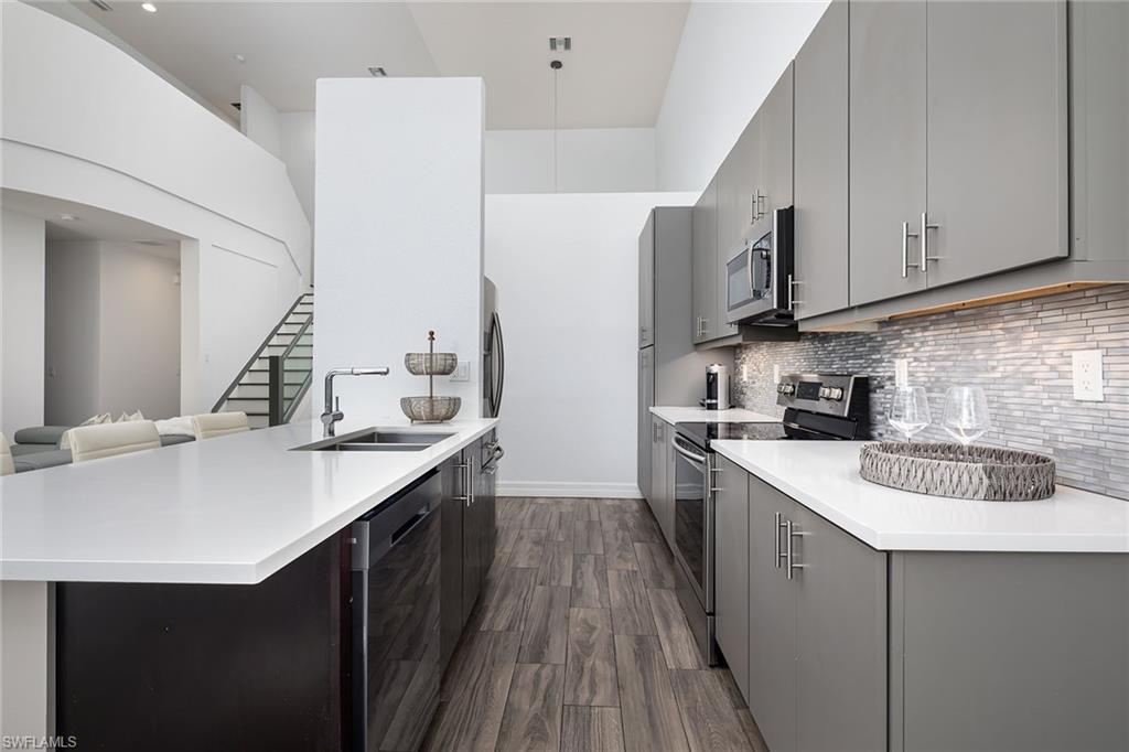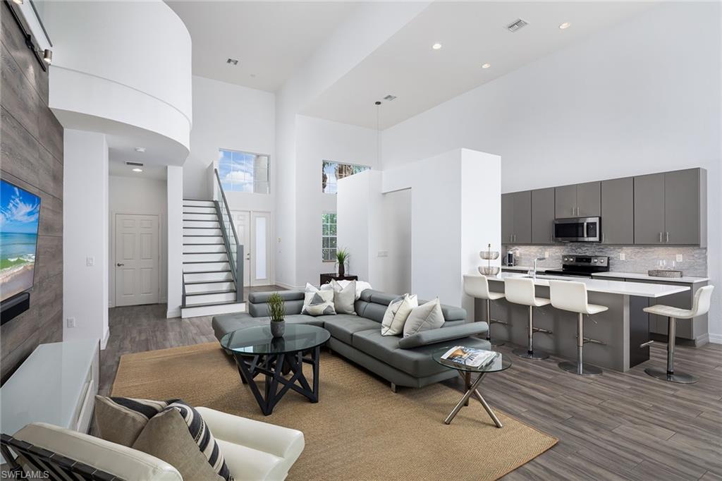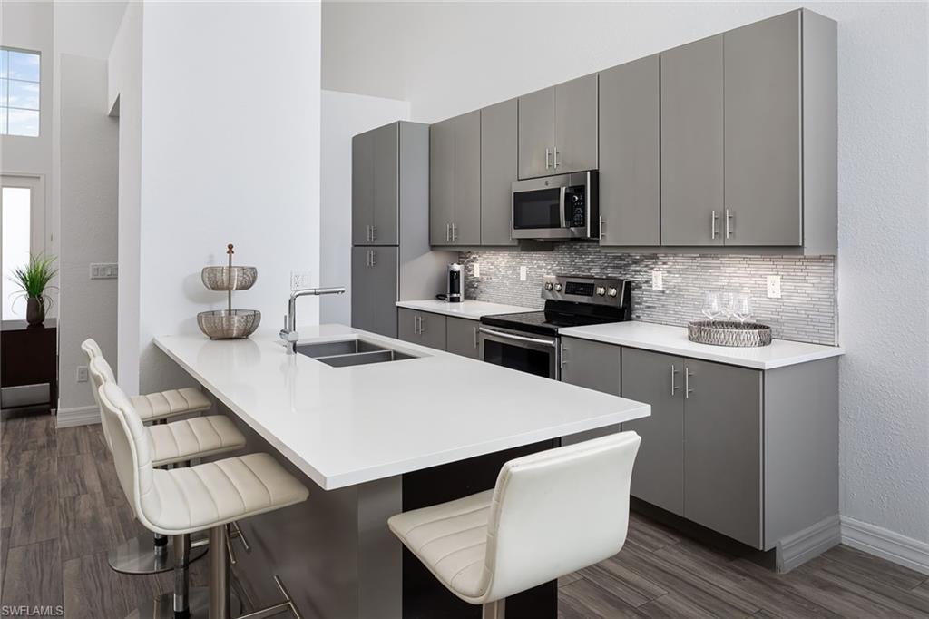 This beautifully updated second-floor condo features the spacious Fuller floor plan, offering 3 bedrooms and 2.5 bathrooms, with brand-new vinyl flooring, a modern kitchen with Café appliances—including a two-drawer dishwasher—and fully renovated second bathroom and half bathroom. Additional upgrades include a new AC system (2023) and washer/dryer for added convenience. Located in the highly desirable Marbella Lakes community, residents enjoy a family-friendly atmosphere and access to a stunning clubhouse (8,000 sq.ft.), resort-style pool, fitness center, indoor sports complex, billiards room, social hall, pickleball, tennis, basketball courts, (BOTH INDOOR AND OUTDOOR), playground and sun deck with a full-time social Directory curating, vibrant year-round lifestyle. The community offers 24 hour guarded gate security. With its prime location, only 10 minutes from beautiful white sand beaches of Naples, this property captures the essence of upscale Naples living perfect for both relaxing and entertaining.